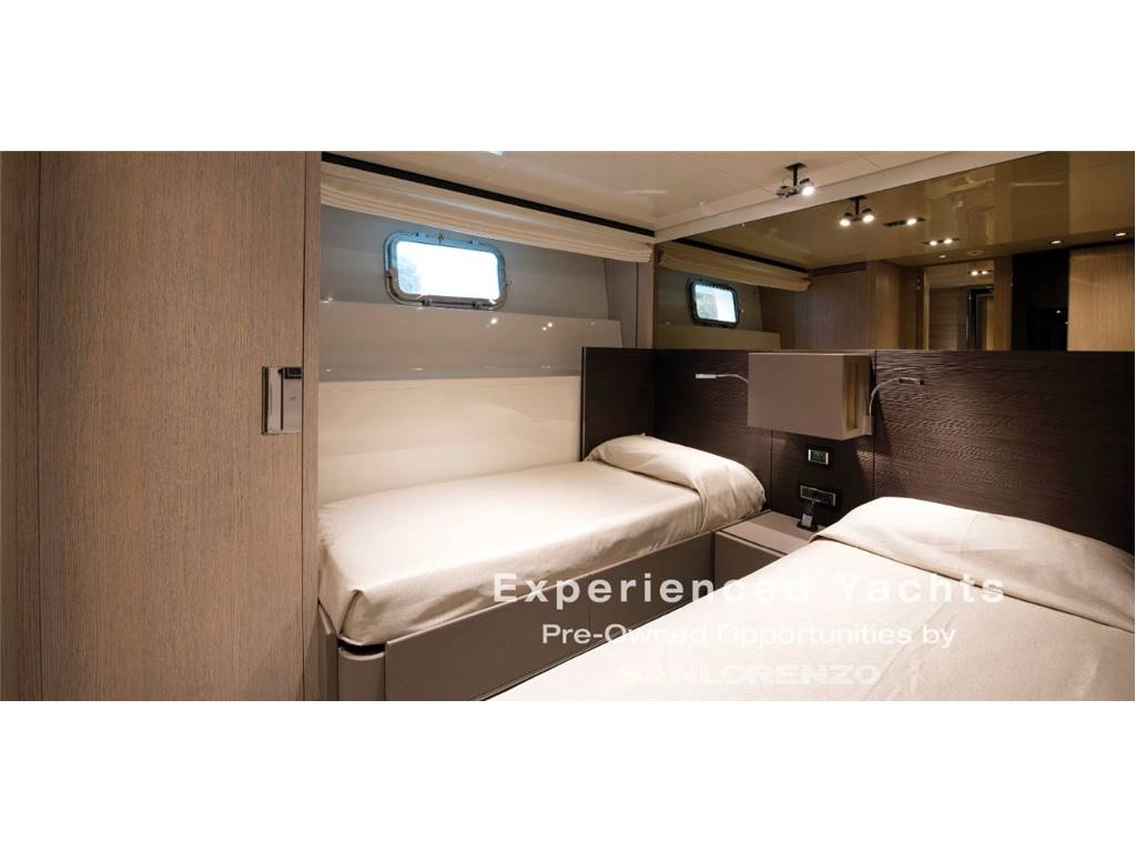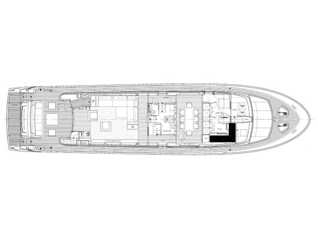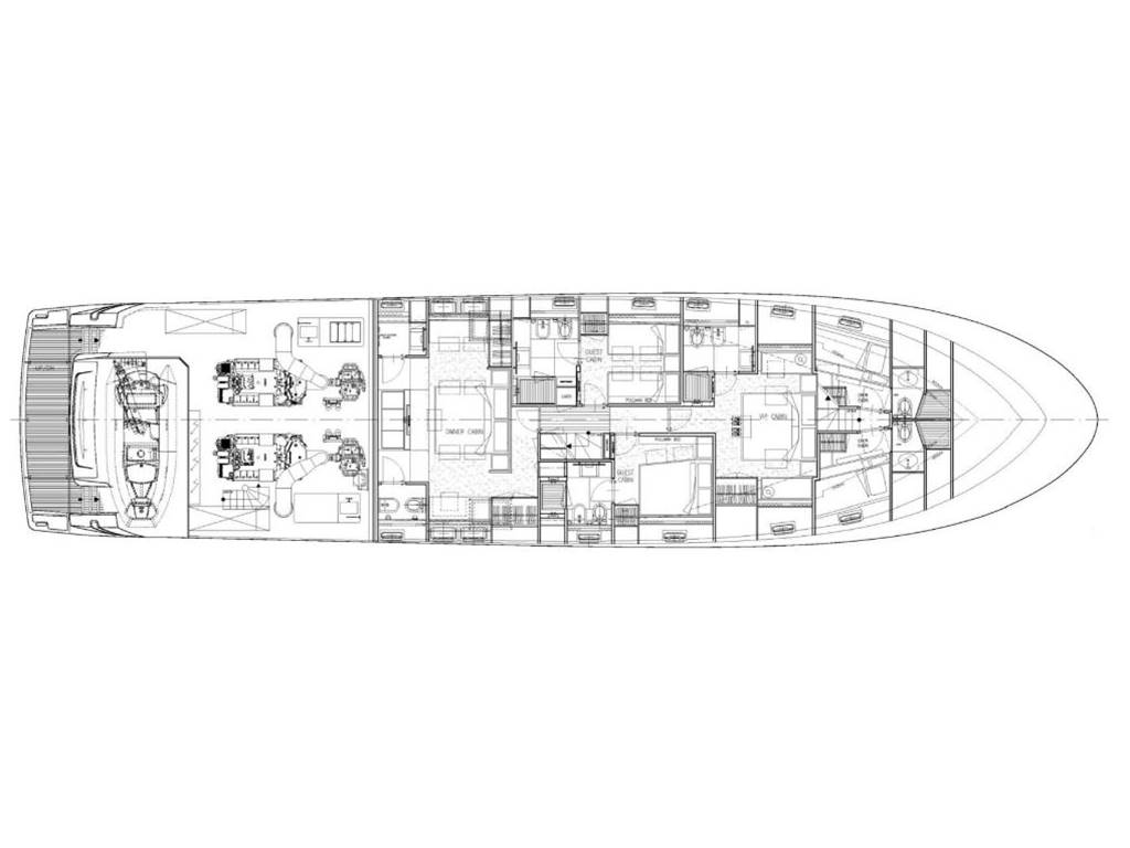 Notas internasPonte inferiore: cabina Armatore a centro nave con bagno e cabina armadio - cabina ospiti a letti in piano con bagno - cabina ospiti con letto matrimoniale a murata con bagno - cabina VIP a prua con bagno. Zona equipaggio: 2 cabine a letti a castello ognuna con bagno. Notas de la instrumentaciónELETTRONICIRadar 72 Mg - Plancia: 2 monitor multifunzione 15 (plotter GPS/radar/ECO) - autopilota - tridata - stazione vento - VHF. Fly: monitor multifunzione - rip. Pilota - tridata - VHF. Tutti gli elettronici sono Raymarine AUDIO VIDEO Salone TV con Hi-Fi - TV nella zona pranzo - TV nel mobile fly - TV Cabina armatore TV con Hi-Fi - cabina VIP TV Hi-Fi - cabine ospiti TV 20” con Hi-Fi - TV 20” nella dinette equipaggio. Sat TV antenna. ELETTRODOMESTICI In cucina: piano di cottura a vetroceramica - forno - microonde - frigo - freezer - lavastoviglie. Wine cooler - frigo bar e ice-maker in salone - Teppan yaky, frigo bar e Ice-maker nel mobile cucina del fly. Zona Equipaggio: Lavatrice ed asciugatrice. Notas de armamentoIMPIANTIElica di prua - pinne stabilizzatrici (zero speed e dinamiche) - Joystic ZF - aria condizionata - terza stazione di comando a poppa - dissalatore Idromar 230 l/h - impianto WI-FI con modem - impianto telefonico interno - impianto TVCC con monitor e 7 telecamere - Impianto purificazione acqua dolce - Glendening - Inverter per frigo - inverter Tv - caricabatterie - riscaldamento a pavimento nel bagno armatore, VIP e ospiti - pedana di poppa lift - 6 luci subaquee. ATTREZZATURE N° 2 verricelli con campane da tonneggio a prua - n° 2 tonneggio a poppa - passerella idraulica a scomparsa - hangar per tender a poppa - scala bagno idraulica - hard top |