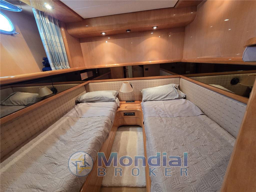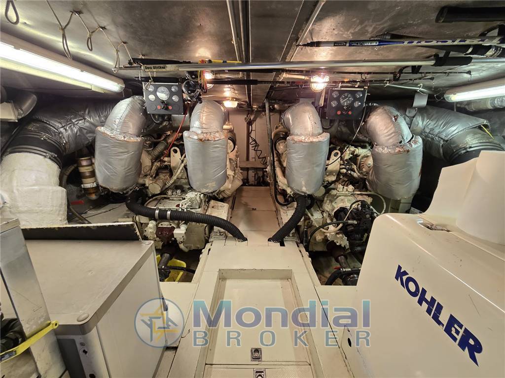 Notas internasNotas de la instrumentaciónRadar, GPS, ECO, VHF, TV , Antenna satellitare, Telecamera controllo motori in sala macchine, Radio stereo.Notas de armamentoGuida interna e sul fly bridge, Elica di prora, Passerella idraulica a scomparsa, Flaps idraulici, Doppia porta di uscita laterale, Porta scorrevole in inox a poppa, Lavastoviglie, Lavasciuga, Forno normale, Forno micronde, Fabbricatore ghiaccio, frigo a pozzetto in salone, Frigo esterno (Fly). |