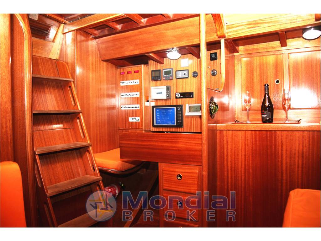 Notas internasdinette a dritta cucina a sinistra cabina armatoriale a poppa 2 bagni di cui uno con doccia Notas de la instrumentaciónVHFRadar GPS 922 Xs Garmin Pilota Autohelm ST6000 Wind GXN 20 Stereo Xplod Notas de armamentoAlbero in alluminio con due ordini di crocetteBompresso amovibile per Gennaker Avvolgifiocco Reckmann RS2000 14 winches ST Verricello salpancore elettrico Elica di prua 3 batterie servizi 1 batteria motore Cappottina Spray-Hood 2 tendalini parasole Tavolo in pozzetto CAGNARO INVERNALE vele: 1 Randa Dacron 1 Randa FB in spectra 2 Gennaker 2 Genoa in dacron 2 Yankee in dacron 1 Trinchetta in Spectra 1 Tormentina 1 MPS Boma con Lazy-Bag |