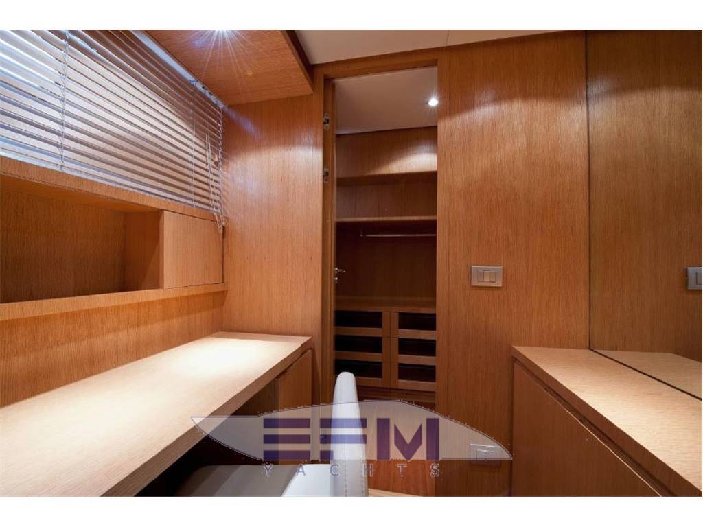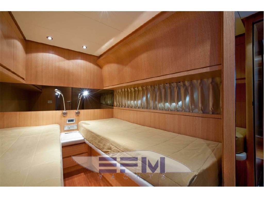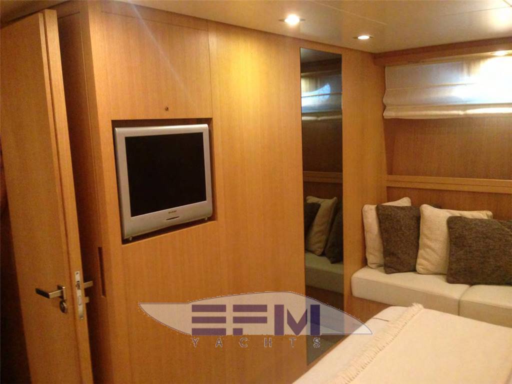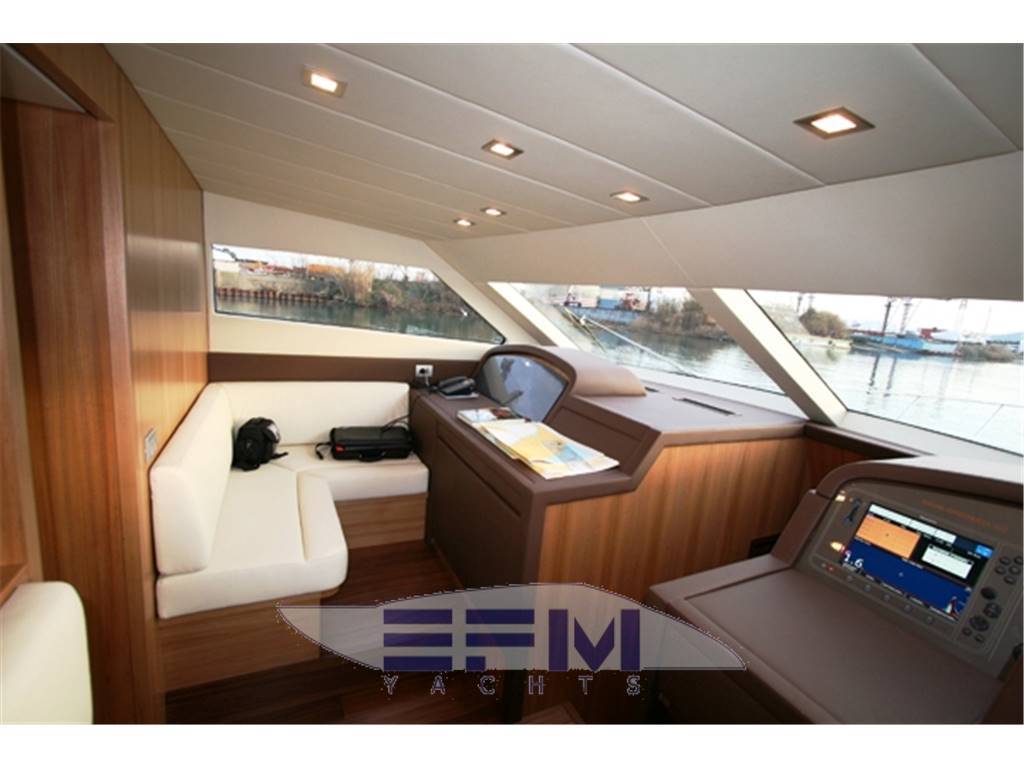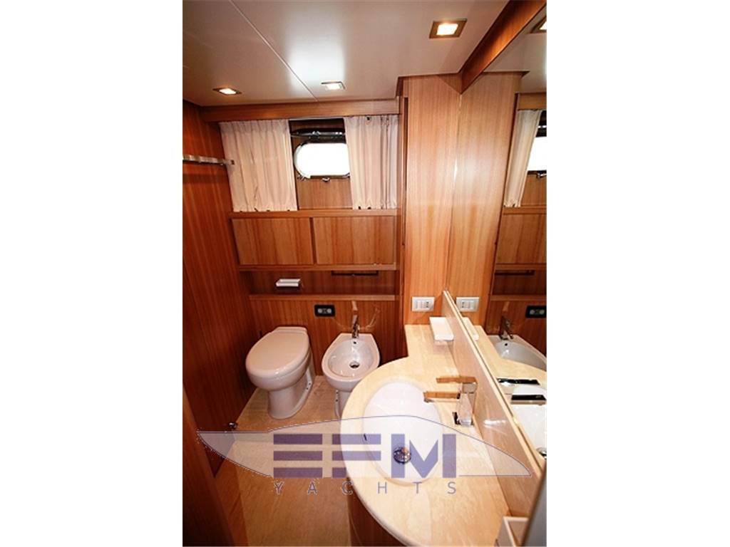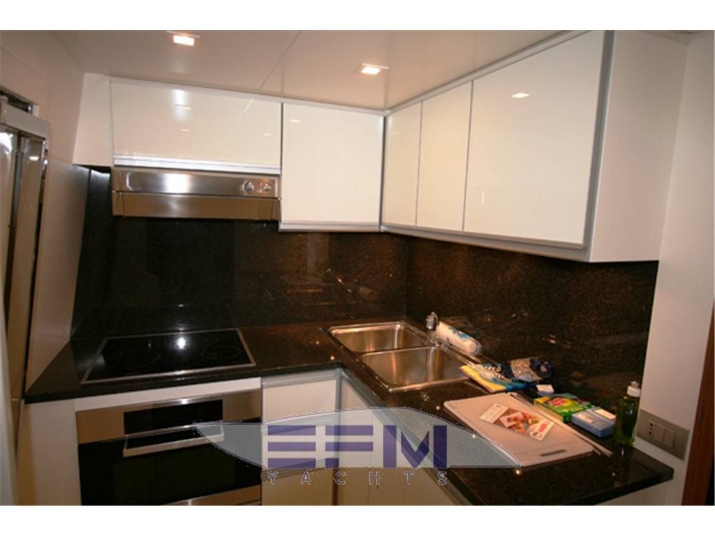 Notas internasMain deck: Salon with U-shaped sofa and storage - dining area - galley with door to exterior side corridor and stairs down to pantry - wheelhouse - dinette. Lower deck: Owner’s cabin at midship with bathroom and walk-in wardrobe - two twin guest cabins, each with private bathroom Two-bed and bathroom crew accommodation at bow. Interni In rovere satinato - Ponte di coperta: Salone con divano a U e mobile contenitore - zona pranzo - cucina con porta di uscita sul camminamento laterale e locale cambusa - timoneria- dinette. Ponte inferiore: cabina armatore a centro barca con bagno e dressing - due cabine ospiti a letti in piano ognuna con bagno privato. Alloggio equipaggio a prua con 2 letti e bagno. Notas de la instrumentaciónWheelhouse: multifunction display Raymarine C120 (Radar 48 mg./Plotter GPS/ECO) - autopilot Raymarine ST6001 - tridata ST60 Raymarine - rudder angle indicator Raymarine ST60 - VHF Raymarine RAY240Fly bridge: multifunction display Raymarine C 80 (Plotter GPS/ECO) - rip. autopilot ST6001 - tridata ST60 Raymarine - rudder angle indicator Raymarine ST60 - VHF Raymarine RAY240. Elettronici In plancia: monitor multifunzione Raymarine C120 (Radar 48 mg./Plotter GPS/ECO) - autopilota Raymarine ST6001 - tridata ST60 Raymarine - angolo di barra Raymarine ST60 - VHF Raymarine RAY240. Sul fly: monitor multifunzione raymarine C 80 (Plotter GPS/ECO) - rip. autopilota ST6001 - tridata ST60 Raymarine - angolo di barra Raymarine ST60 - VHF Raymarine RAY240. Notas de armamentoEntertainmentIn salon, TV LCD 27" , DVD, Hi-Fi, decoder - TV LCD 22” with DVD and Hi-FI in Owner’s cabin - car stereo in guests cabins Systems Bow thruster - stern - air conditioning (48.000 BTU) - CCTV system with two cameras and one display - flaps. Household Appl Galley: frigo/freezer - electric hob - oven - washdisher. Small fridge in salon - small fridge and BBQ on fly - washing machine and dryer in galley peak Deck equipment Winch - two capstans at stern - retractable hydraulic gangway -hydraulically operated stern platform- crane for tender on fly bridge - bimini top Audio video In salone TV LCD 27 “ - DVD - Hi-Fi - decoder - TV LCD 22” con DVD e Hi-FI in cabina armatore - car stereo nelle cabine ospiti. Antenna TV satellitare . Impianti Elica di prua - elica di poppa - aria condizionata (48.000 BTU) - Impianto TVCC con 2 camere ed un monitor - flaps. Elettrodomestici In cucina: frigo/freezer - piastra di cottura elettrica - forno - lavastoviglie. Frigo bar in salone - frigobar e BBQ sul fly - lavatrice ed asciugatrice nel gavone cucina. Attrezzature Verricello - due tonneggi poppieri - passerella idraulica a scomparsa - pedana di poppa ad apertura idraulica - gru per tender sul fly - bimini top. |