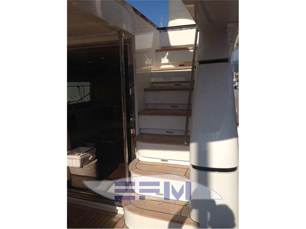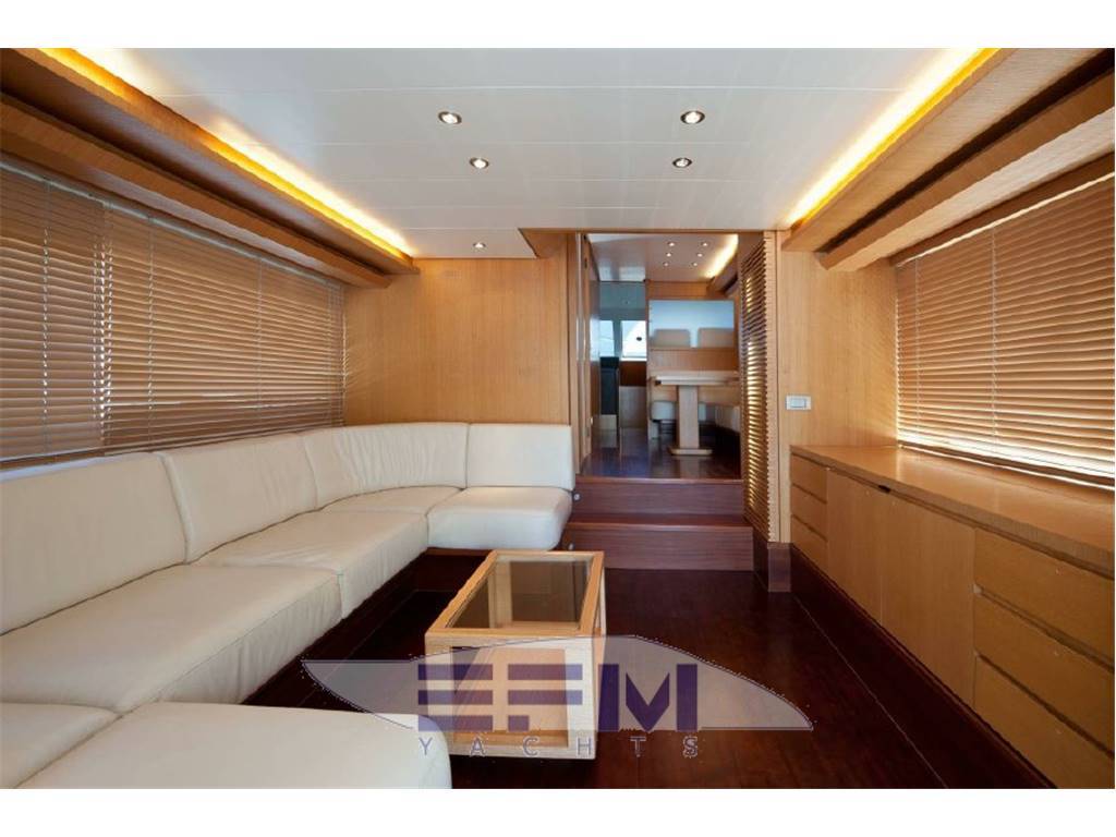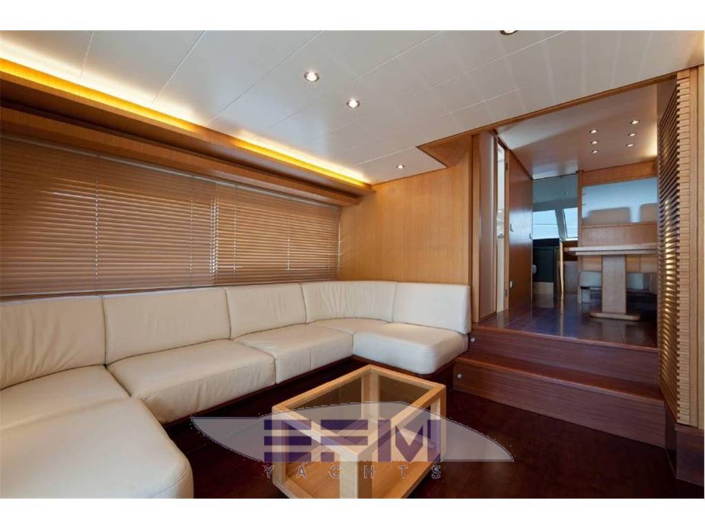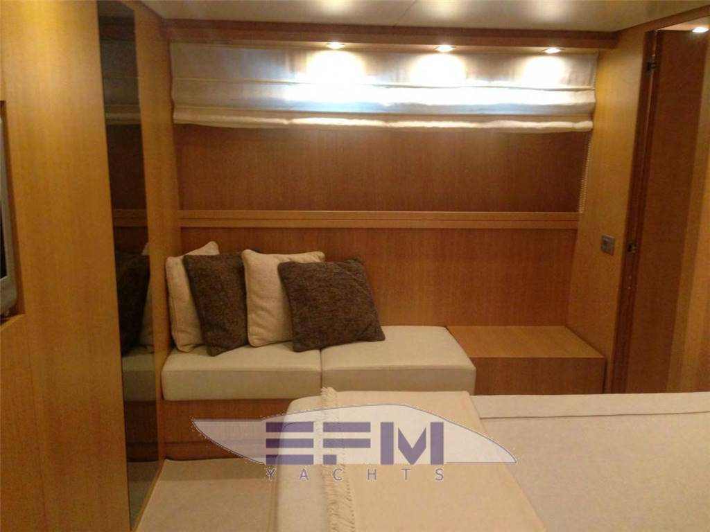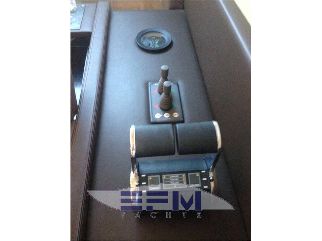 Notas internasMain deck: Salon with U-shaped sofa and storage - dining area - galley with door to exterior side corridor and stairs down to pantry - wheelhouse - dinette. Lower deck: Owner’s cabin at midship with bathroom and walk-in wardrobe - two twin guest cabins, each with private bathroom Two-bed and bathroom crew accommodation at bow. Interni In rovere satinato - Ponte di coperta: Salone con divano a U e mobile contenitore - zona pranzo - cucina con porta di uscita sul camminamento laterale e locale cambusa - timoneria- dinette. Ponte inferiore: cabina armatore a centro barca con bagno e dressing - due cabine ospiti a letti in piano ognuna con bagno privato. Alloggio equipaggio a prua con 2 letti e bagno. Notas de la instrumentaciónWheelhouse: multifunction display Raymarine C120 (Radar 48 mg./Plotter GPS/ECO) - autopilot Raymarine ST6001 - tridata ST60 Raymarine - rudder angle indicator Raymarine ST60 - VHF Raymarine RAY240Fly bridge: multifunction display Raymarine C 80 (Plotter GPS/ECO) - rip. autopilot ST6001 - tridata ST60 Raymarine - rudder angle indicator Raymarine ST60 - VHF Raymarine RAY240. Elettronici In plancia: monitor multifunzione Raymarine C120 (Radar 48 mg./Plotter GPS/ECO) - autopilota Raymarine ST6001 - tridata ST60 Raymarine - angolo di barra Raymarine ST60 - VHF Raymarine RAY240. Sul fly: monitor multifunzione raymarine C 80 (Plotter GPS/ECO) - rip. autopilota ST6001 - tridata ST60 Raymarine - angolo di barra Raymarine ST60 - VHF Raymarine RAY240. Notas de armamentoEntertainmentIn salon, TV LCD 27" , DVD, Hi-Fi, decoder - TV LCD 22” with DVD and Hi-FI in Owner’s cabin - car stereo in guests cabins Systems Bow thruster - stern - air conditioning (48.000 BTU) - CCTV system with two cameras and one display - flaps. Household Appl Galley: frigo/freezer - electric hob - oven - washdisher. Small fridge in salon - small fridge and BBQ on fly - washing machine and dryer in galley peak Deck equipment Winch - two capstans at stern - retractable hydraulic gangway -hydraulically operated stern platform- crane for tender on fly bridge - bimini top Audio video In salone TV LCD 27 “ - DVD - Hi-Fi - decoder - TV LCD 22” con DVD e Hi-FI in cabina armatore - car stereo nelle cabine ospiti. Antenna TV satellitare . Impianti Elica di prua - elica di poppa - aria condizionata (48.000 BTU) - Impianto TVCC con 2 camere ed un monitor - flaps. Elettrodomestici In cucina: frigo/freezer - piastra di cottura elettrica - forno - lavastoviglie. Frigo bar in salone - frigobar e BBQ sul fly - lavatrice ed asciugatrice nel gavone cucina. Attrezzature Verricello - due tonneggi poppieri - passerella idraulica a scomparsa - pedana di poppa ad apertura idraulica - gru per tender sul fly - bimini top. |
