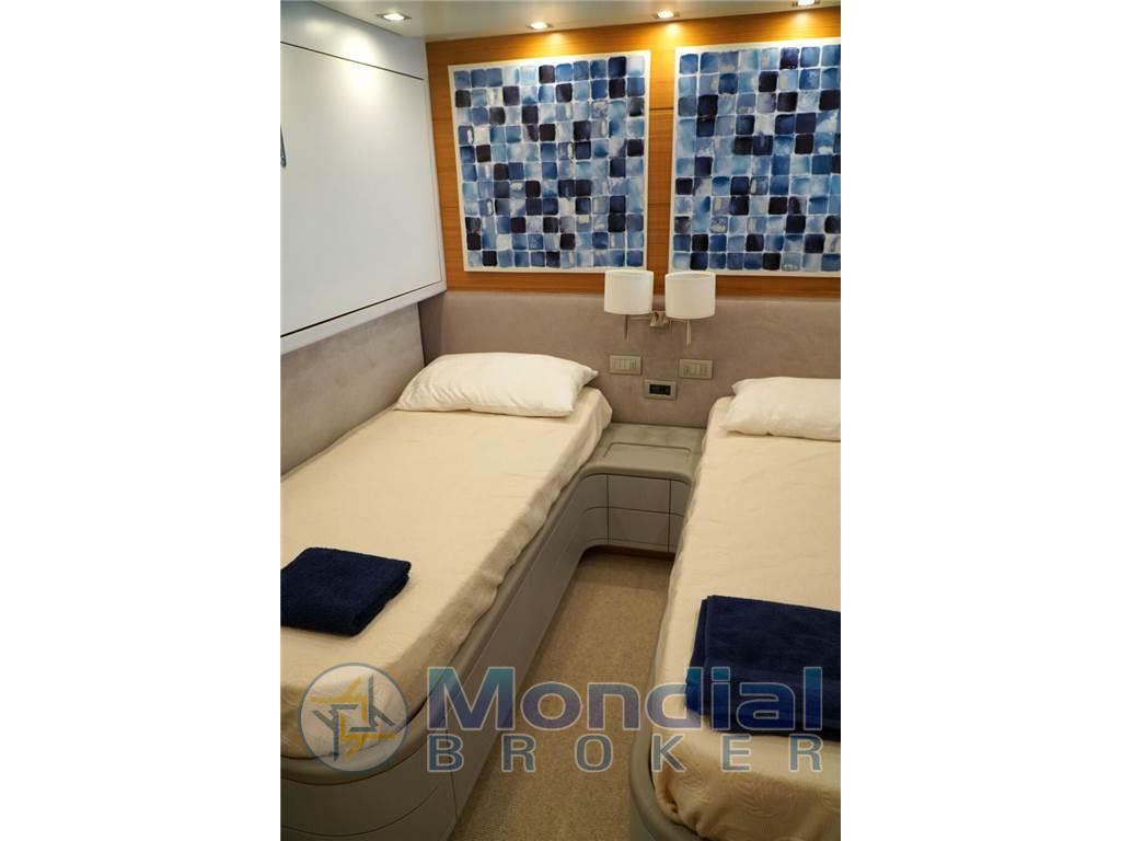 Notas internasAria condizionata: Climatizzazione in ogni amb. Stereo: In ogni ambiente Tv: Philips '40 a scomparsa + 2 Docce: 6: (n. 6 ( 4 box + 2)) Wc: 4: (4+ 1 marinai) Cabine doppie: 1: (n. 1 in piano + 3 letto pullmann) Cabine: 4: (n.4) Cabine matrimoniali: 2: (n.2 (armatoriale + Vip)) Cucina: n.5 fuochi vetroc. induz. Miele Forno a microonde Forno: Miele 90 cm. Congelatore: si Frigorifero: 0: (Side by side Samsung) Notas de la instrumentaciónBussola: n. 2 GPS: Raymarine Log: n. 2 Tridata Raymarine St 60+ Plotter: N.3 Raymarine (n.2 E120+E80) Radar: Raymarine Strumenti meteo: barometro Vhf: n. 2 Raymarine 240 E Notas de armamentoElica: 0: (asse V Drive) Elica di manovra a prua: + poppa Vetus Side power elett. Estintori: 0 Giubbotti di salvataggio: 0 Riscaldamento: Climatizzazione in ogni ambiente Sapla ancora: si con tonneggio Tavolo nel pozzetto: con sedie |