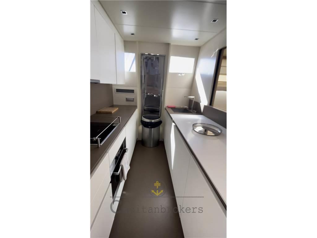 Notas internasSalone con divano ad L, poltrona e mobili contenitori Zona pranzo con tavolo e sedie Scala accesso al fly Cucina in locale separato con mobili bianchi; attrezzata con piano cottura in vetroceramica, frigorifero, Cabina armatoriale matrimoniale a tutto baglio con bagno Cabina VIP a prua con bagno N° 2 cabine ospiti con bagno di cui 1 cabina con un letto singolo adibita a studio Cabina equipaggio Notas de la instrumentaciónAngolo barra, Bussola, Computer di bordo, Contametri catena, Contamiglia, Display, Ecoscandaglio, GPS,Interfaccia, Plotter, Radar, Radio VHF, Stabilizzatori Zero Speed, Inverter, elica di prua, flaps elettrici. Notas de armamentoAllarme motore, Allarme sentina, Ancora, Gruette, Impianto antincendio, Passerella, Piattaforma, PozzettoTeak, Presa 220V banchina, Presa acqua banchina, Tender, pompa di sentina automatica, pompa di sentina elettrica, salpa ancora elettrico, scaletta bagno,tavolo pozzetto, winch di poppa,elica di prua. Aria condizionata, boiler, clima reversibile, prese interne 220v, cucina frigo interno ed esterno, lavatrice, microonde, piastra in vtrc, lavastoviglie e forno , Timoneria comunicante con la dinette, gruette tender Stabilizzatori Zero Speed |