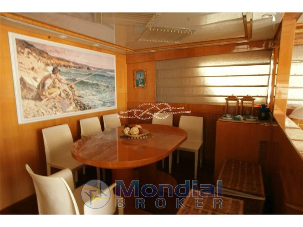 Notas internasNotas de la instrumentaciónGPS/Plotter Lorentz - pilota automatico Simrad - Radar Furuno - meteofax Furuno - VHF (strumentazione completa ripetuta sul fly).Notas de armamentoElica di prua e di poppa - luci subacquee - tender Capelli con fuoribordo Yamaha 40 hp 4t - doppia ancora, doppio verricello salpa ancora - piano cottura vetroceramica - forno - frigo / freezer - frigo doppio in salone - antenna TV - antenna SAT - TV LCD in salone - TV LCD in cabina armatoriale - mobile bar sul fly con grill, frigo e lavabo - bimini top - dissalatore - aria condizionata caldo/freddo. |