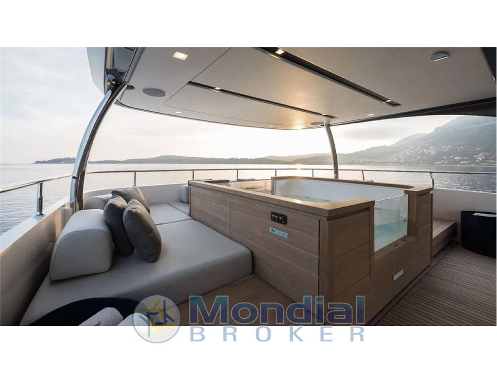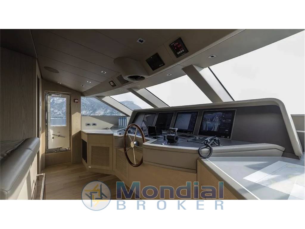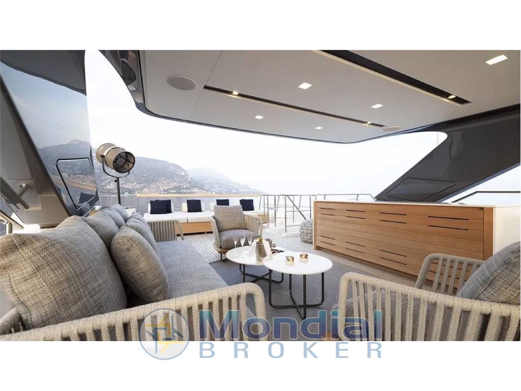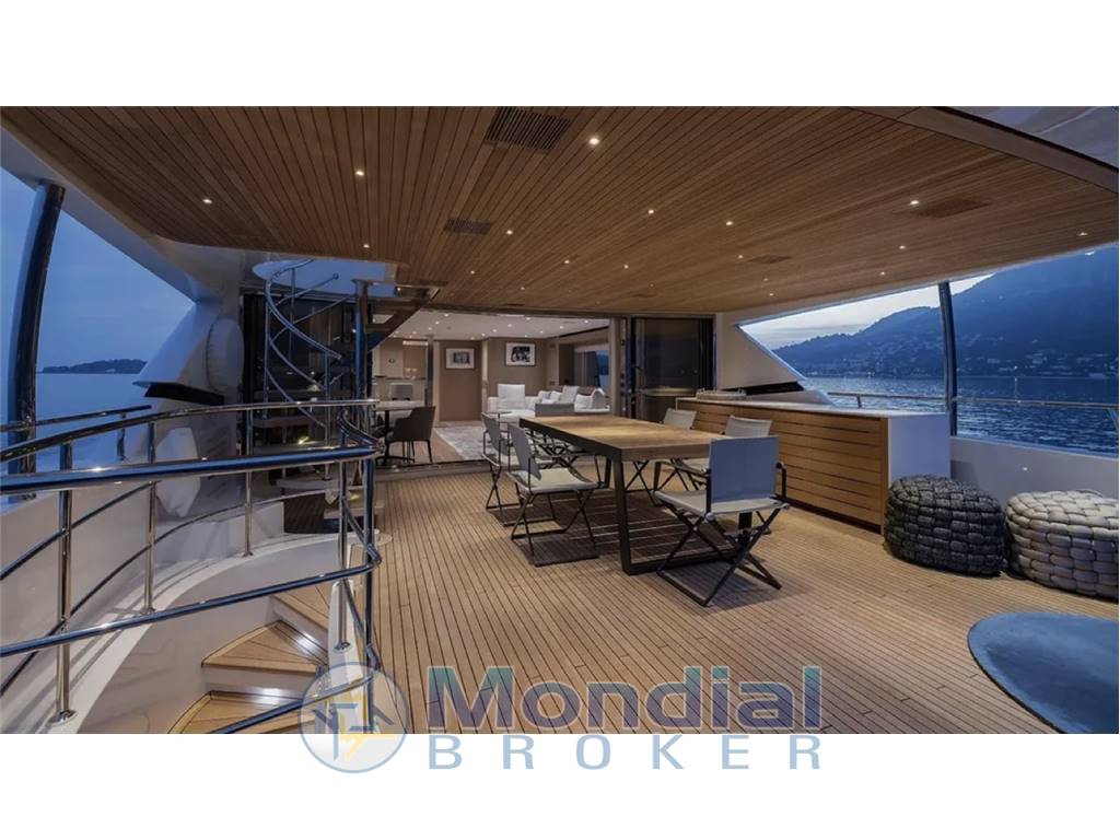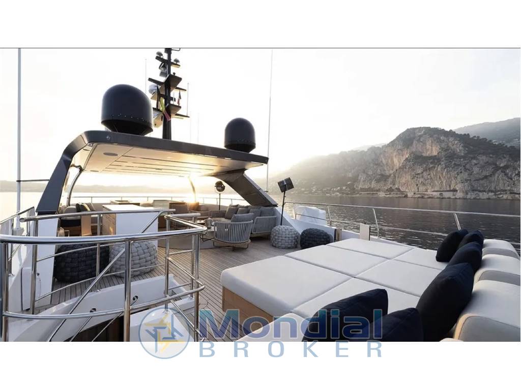 Notas internasThe Sanlorenzo SD126 was designed to optimize and maximize all spaces, while enriching the interior areas with natural light. The sheer line amid ship is cut to let the enlarged side windows catch as muchlight as possible, allowing guests enjoy the view even while sitting in the salon. The bow is a living space with sofas, sunbathing cushions. Up top, the flybridge is expanded into a generous sunbathing and entertaining area, to a tender garage at the transom and hydraulic lift swim platform. The overall space and livability of this 126’ triple deck motor-yacht must be seen to be appreciated. With an interior volume 314 gt she can comfortably accommodate 10 passengers in 5 cabins There is a generous on-deck, full beam Owner suite, with study, generous walk-in closet and the big head. The big upper skylounge, with a serving pantry and day head, leads to an exceptionally large upper aft deck, with a covered formal dining area seating 10 guests. These areas combined with a spacious covered aft deck and 2 sunpads plus a seating area on the foredeck give exceptional exterior spaces allowing even the largest groups to get away and relax.