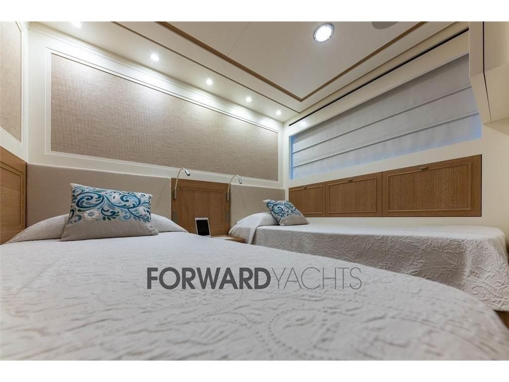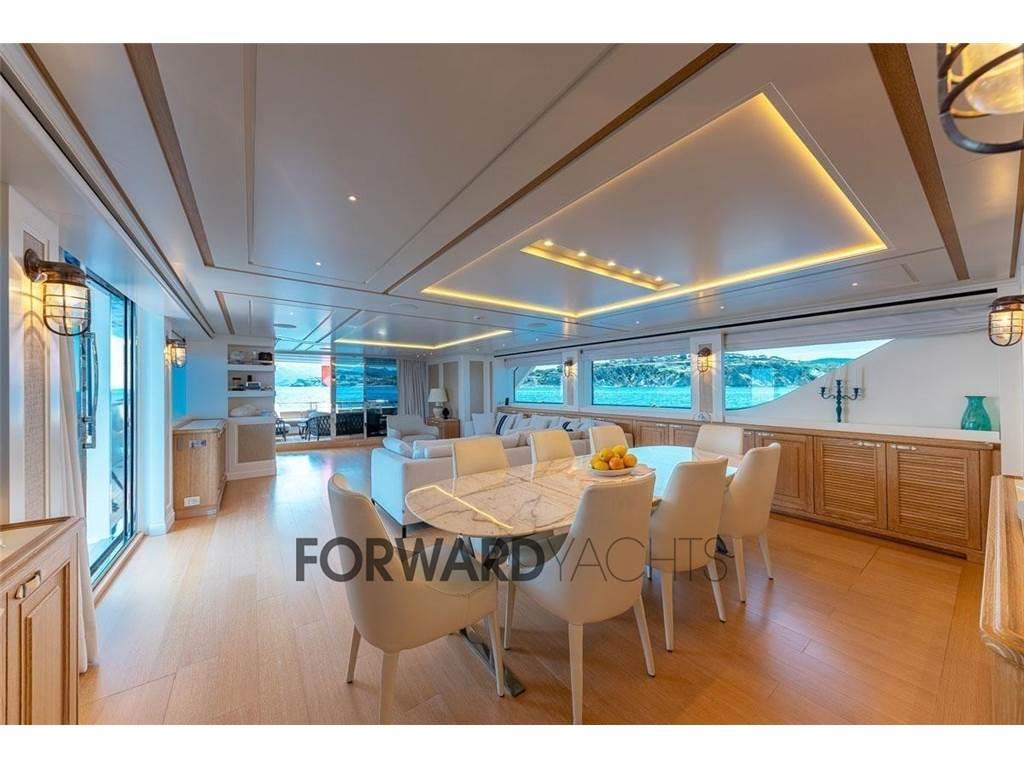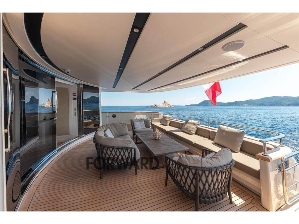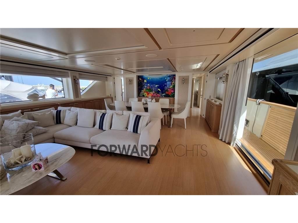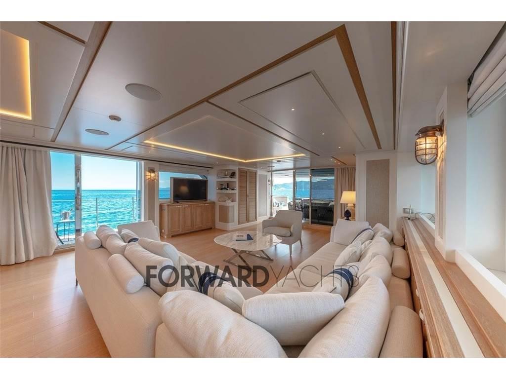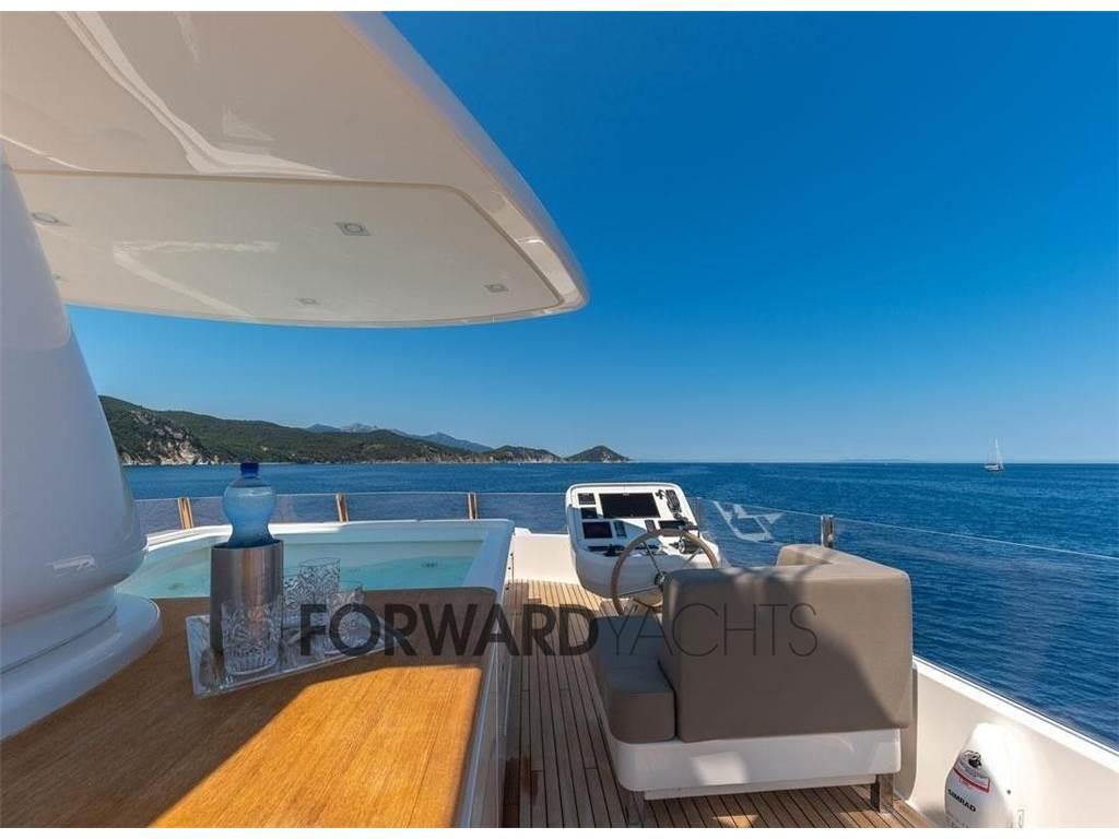 Notas internas- Sul ponte superiore, una spaziosa area all’aperto presenta un ampio tavolo da pranzo. Una scaletta conduce al bellissimo flybridge con sedie a sdraio lungo la poppa e un sundeck molto capiente che fa ombra ad un’ampia jacuzzi. - Sul ponte principale, in corrispondenza del salone, una terrazza apribile sul mare offre soluzioni innovative per vivere al meglio la crociera. Disposizione interni : - La con?gurazione del layout prevede cinque spaziose cabine con bagno privato per un massimo di 10 (+1) ospiti - Un’ampia suite armatoriale sul ponte principale, - N.2 cabine matrimoniali - N.2 cabine doppie di cui una con letti scorrevoli convertibili in letto matrimoniale con un terzo letto sovrapposto sul ponte inferiore. Notas de la instrumentaciónStrumentazione :- EPIRB - Radio VHF - GPS - Plotter - Ecoscandaglio - Radar - Controllo flas - Controllo elica di prua - Controllo stabilizzatori Notas de armamentoAccessori :- Stabilizzatori CMC - elica di prua; - Sistema di climatizzazione; - Sistema di videosorveglianza CCTV; - Jacuzzi sul fly - Sistema di altoparlanti installato nelle pareti - Salpa ancora elettrico - Tender |