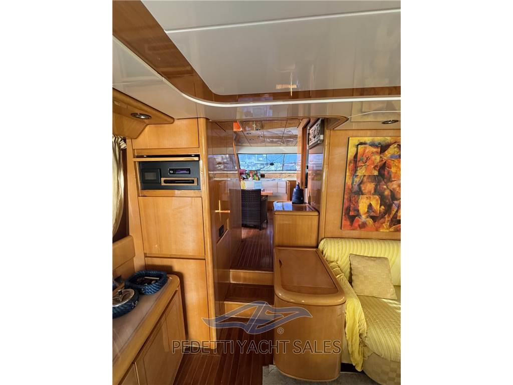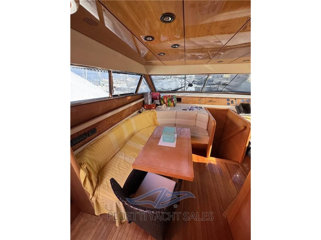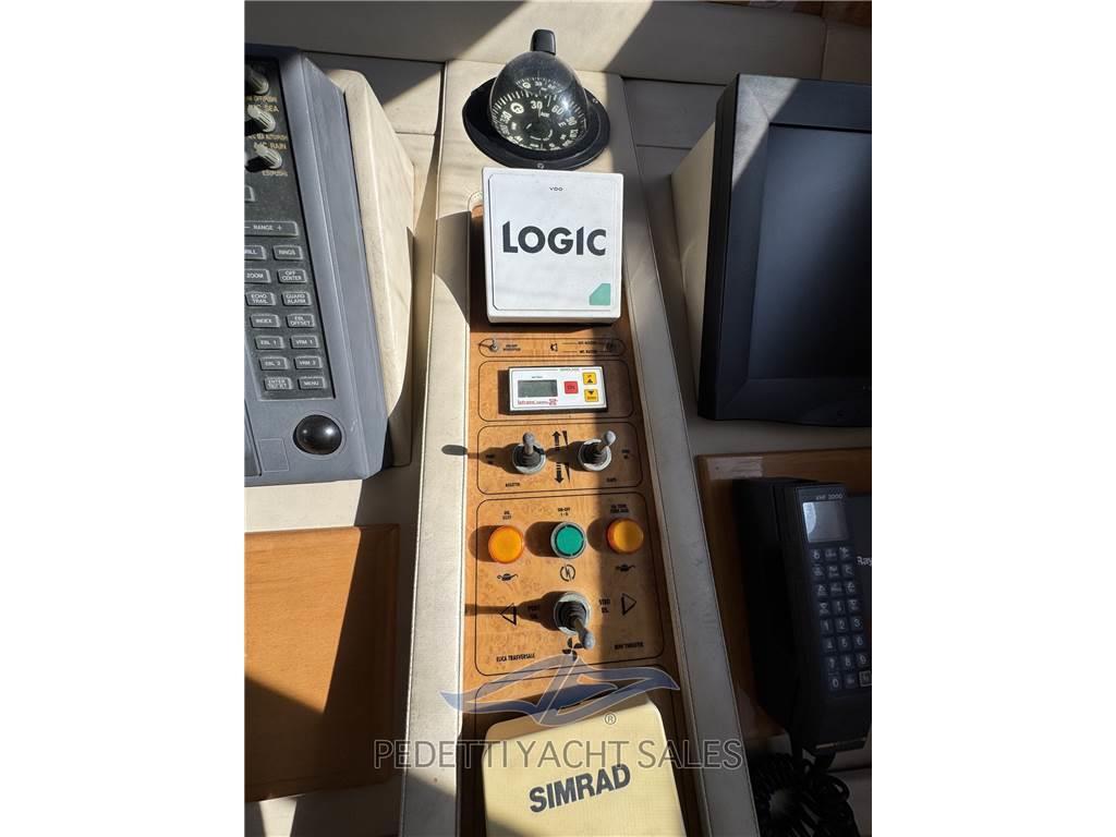 Notas internasNotas de la instrumentaciónAngolo barra, Bussola, Contamiglia, Ecoscandaglio, GPS, Interfono, Pilota automatico, Plotter, Radar, Radio VHF.Notas de armamentoAllestimento tecnico e di coperta:Allarme sentina, Autogonfiabile, Doccia esterna, Doppia timoneria, Flap idraulici, Luci subacquee, Passerella, Piattaforma, Pompa di sentina automatica, Pompa di sentina elettrica, Pompa di sentina manuale, Presa 220V banchina, Raddrizzatore, Salpa Ancore Elettrico, Scaletta da bagno, Tender, Tromba, Winch tonneggio di poppa, Winch tonneggio di prua. Dotazioni domestiche di bordo: Aria condizionata, Clima reversibile, Impianto acque nere, Prese interne 12v, Prese interne 220v, Riscaldamento, Serbatoio Acque Nere, WC marino elettrico. Dotazioni di sicurezza: Giubbetti di salvataggio. Intrattenimento: Antenna Satellitare TV, Impianto TV, Radio AM/FM, Stereo, TV, VHS. Cucina ed elettrodomestici: Congelatore, Forno, Frigorifero interno (N°2), Lavastoviglie, Microonde, Piastra in vetroceramica. Tappezzerie: Bimini, Cuscineria completa, Cuscineria fly, Teli copri finestra. |