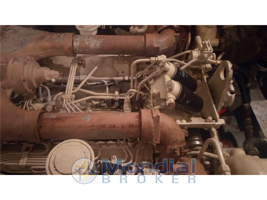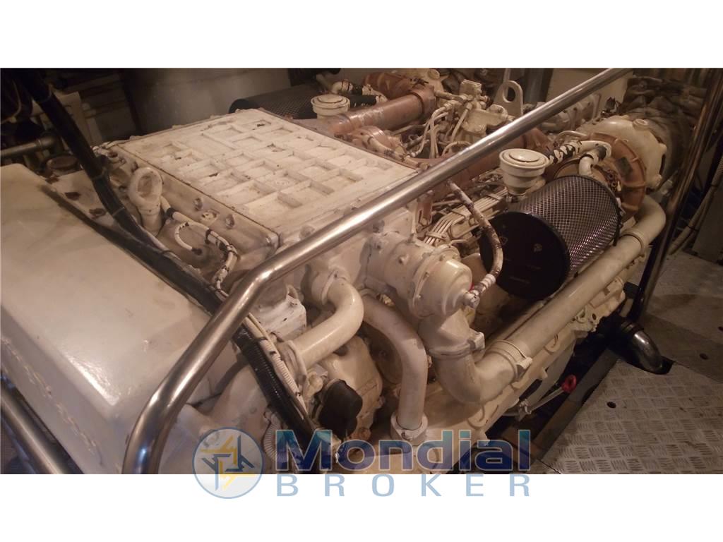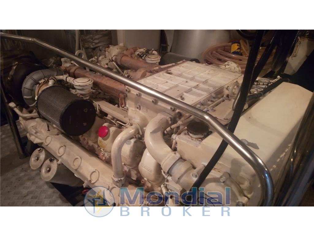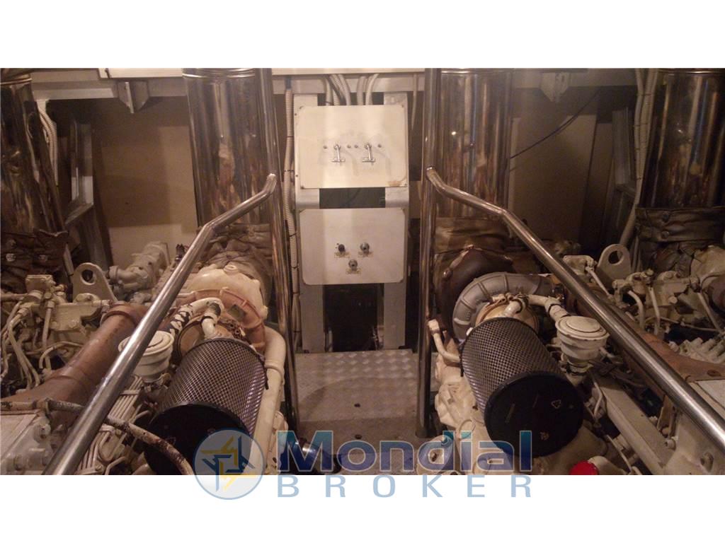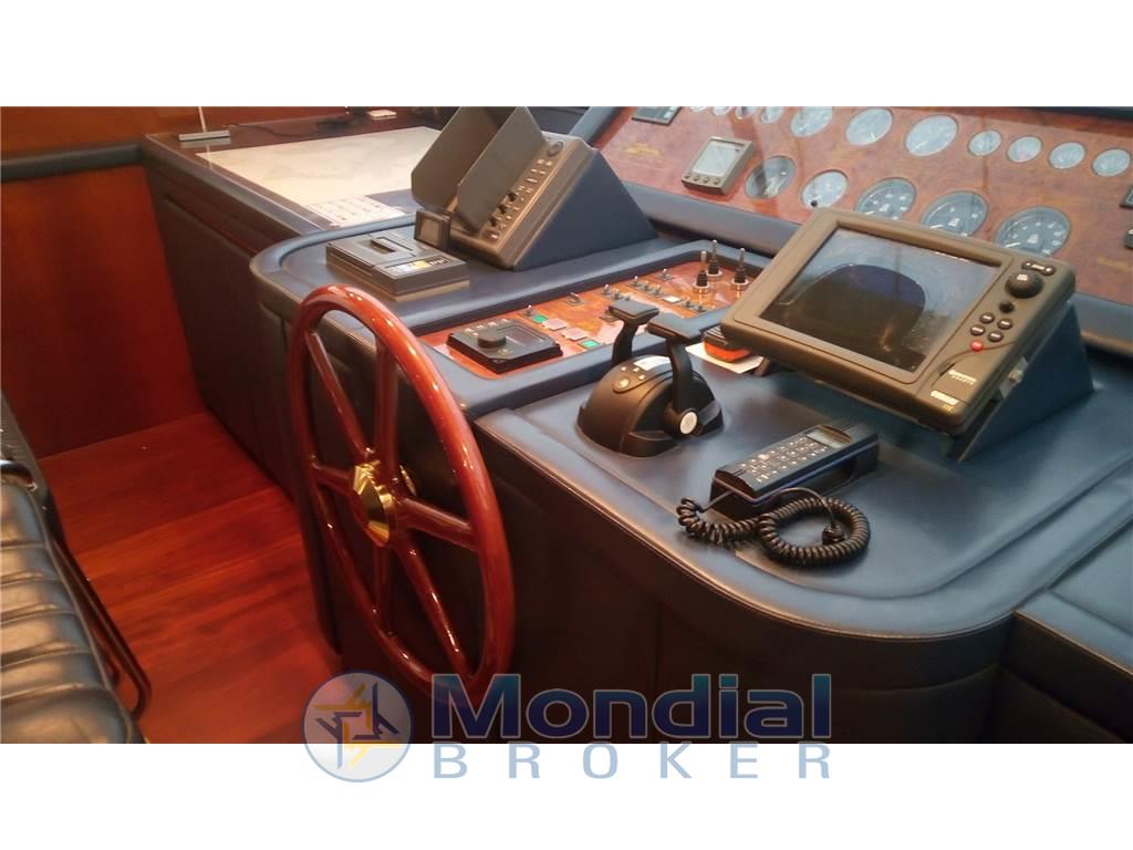 Notas internasNotas de la instrumentaciónAngolo barra, Antenna radar, Bussola, Comando motori elettronico, Computer di bordo, Contametri catena, Contamiglia, 2 Display, 2 Ecoscandaglio, Fax, 2 GPS, Interfono, 2 Pilota automatico, 2 Plotter, Plotter con antenna GPS, 2 Radar, 2 Radio VHF, SSB, Stazione vento.Notas de armamentoAllestimento tecnico e di coperta:Allarme motore, Allarme sentina, 2 Asse di rispetto, Autogonfiabile, Camminamenti laterali in teak, Doccia esterna, Doppia timoneria, Elica di poppa - stern thruster, Elica di prua - bow thruster, Fari fissi a poppa, Faro orientabile, Flap idraulici, Gruette per tender su fly, Impianto antincendio, Indicatori Flaps, Lavaggio catena, Luci di cortesia, Luci subacquee, Passerella (IDRAULICA), Piattaforma, Pompa di sentina automatica, Pompa di sentina manuale, Pozzetto Teak, Presa 220V banchina, Raddrizzatore, Rollbar, Salpa Ancore Elettrico, Scala reale, Scaletta da bagno, Sistema Depurazione acque nere, Tavolo pozzetto, Tender, Tromba, Winch, Winch Idraulico, Winch tonneggio di poppa, Winch tonneggio di prua. Dotazioni domestiche di bordo: Aria condizionata, BBQ/ Grill, Cassaforte, Clima reversibile, Impianto acque nere, Prese interne 12v, Prese interne 220v, Riscaldamento, Telefono Interno, 4 WC marino elettrico. Intrattenimento: Altoparlanti, Antenna Satellitare TV, Decoder satellite, Digitale Terrestre, Home Theater, Impianto TV, Radio AM/FM, Ricevitore satellitare, Stereo, 3 TV. Cucina ed elettrodomestici: Congelatore, Cucina, Fornello, Forno, Frigorifero esterno, Frigorifero interno, Ghiacciaia, Lavastoviglie, Lavatrice, Macchina caffè, Microonde, Piastra in vetroceramica. Tappezzerie: Bimini, Cappottina, Cuscineria completa, Cuscineria di poppa, Cuscineria di prua, Cuscineria fly, Cuscineria Pozzetto, Teli chiusura T-Top, Teli copri finestra, Telo Copertura Fly, Telo copriconsolle, Telo coprisedile, Tendalino. |