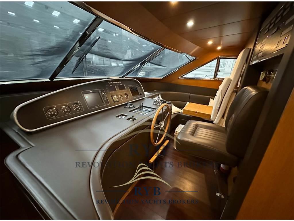 Notas internasNotas de la instrumentaciónAngolo barra, Antenna radar, Bussola, Comando motori elettronico, Computer di bordo, Contametri catena, Contamiglia, Display, Ecoscandaglio, Fax, GPS, Pilota automatico, Plotter, Radar, Radio VHF.Notas de armamentoAllestimento tecnico e di coperta:Allarme fumo/gas, Allarme motore, Allarme sentina, Ancora, Camminamenti laterali in teak, Doccia esterna, Doppia timoneria, Elica di poppa - stern thruster, Elica di prua - bow thruster, Flap idraulici, Gruette per tender su fly, Lavaggio catena, Luci subacquee, Passerella, Piattaforma, Pompa di sentina automatica, Pompa di sentina elettrica, Pompa di sentina manuale, Pozzetto Teak, Presa 220V banchina, Presa acqua banchina, Raddrizzatore, Salpa Ancore Elettrico, Scaletta da bagno, Tavolo pozzetto, Tuga in teak, Winch. Dotazioni domestiche di bordo: Aria condizionata, Clima reversibile, Impianto acque nere, Pavimento interno in legno, Prese interne 12v, Prese interne 220v, Serbatoio Acque Nere, WC marino elettrico. Intrattenimento: Altoparlanti, DVD, Impianto TV, Stereo, TV. Cucina ed elettrodomestici: Cucina, Forno, Lavatrice. Tappezzerie: Bimini, Cappottina, Cuscineria completa, Cuscineria fly, Tendalino. |