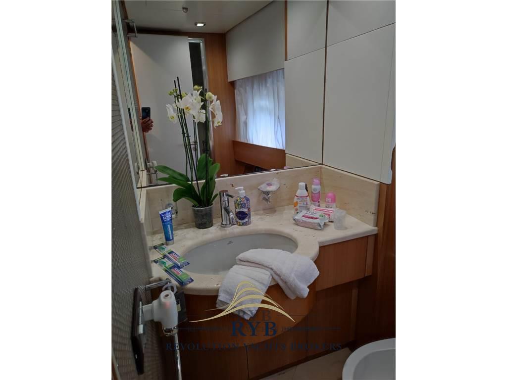 Notas internasNotas de la instrumentaciónAngolo barra, Antenna radar, Bussola, Comando motori elettronico, Contamiglia, Ecoscandaglio, GPS, Interfono, Pilota automatico, Plotter, Plotter con antenna GPS, Radar, Radio VHF.Notas de armamentoAllestimento tecnico e di coperta:Allarme motore, Allarme sentina, Ancora, Autogonfiabile, Bocche di Lupa, Camminamenti laterali in teak, Doccia esterna, Doppia timoneria, Elica di poppa - stern thruster, Elica di prua - bow thruster, Faro orientabile, Flap idraulici, Lavaggio catena, Lavandino nel Pozzetto, Luci di cortesia, Luci subacquee, Passerella, Piattaforma, Pompa di sentina automatica, Pompa di sentina manuale, Porta ingresso, Porta laterale, Pozzetto Teak, Presa 220V banchina, Presa acqua banchina, Raddrizzatore, Ripetitore strumentazione, Salpa Ancore Elettrico, Scaletta da bagno, Tavolo pozzetto, Tavolo Salone Abbattibile, Tromba, Winch, Winch tonneggio di poppa, Winch tonneggio di prua. Dotazioni domestiche di bordo: Aria condizionata, BBQ/ Grill, Cassaforte, Clima reversibile, Impianto acque nere, Pavimento interno in legno, Prese interne 12v, Prese interne 220v, Riscaldamento, Serbatoio Acque Nere, WC marino elettrico. Intrattenimento: Altoparlanti, Antenna Satellitare TV, Decoder satellite, Digitale Terrestre, Impianto TV, Radio AM/FM, Ricevitore satellitare, Stereo, TV. Cucina ed elettrodomestici: Congelatore, Forno, Frigorifero esterno, Frigorifero interno (nuovo), Lavastoviglie, Lavatrice, Microonde, Piastra in vetroceramica. Tappezzerie: Bimini, Cuscineria completa, Cuscineria di poppa, Cuscineria di prua, Cuscineria fly, Cuscineria Pozzetto, Tendalino. |