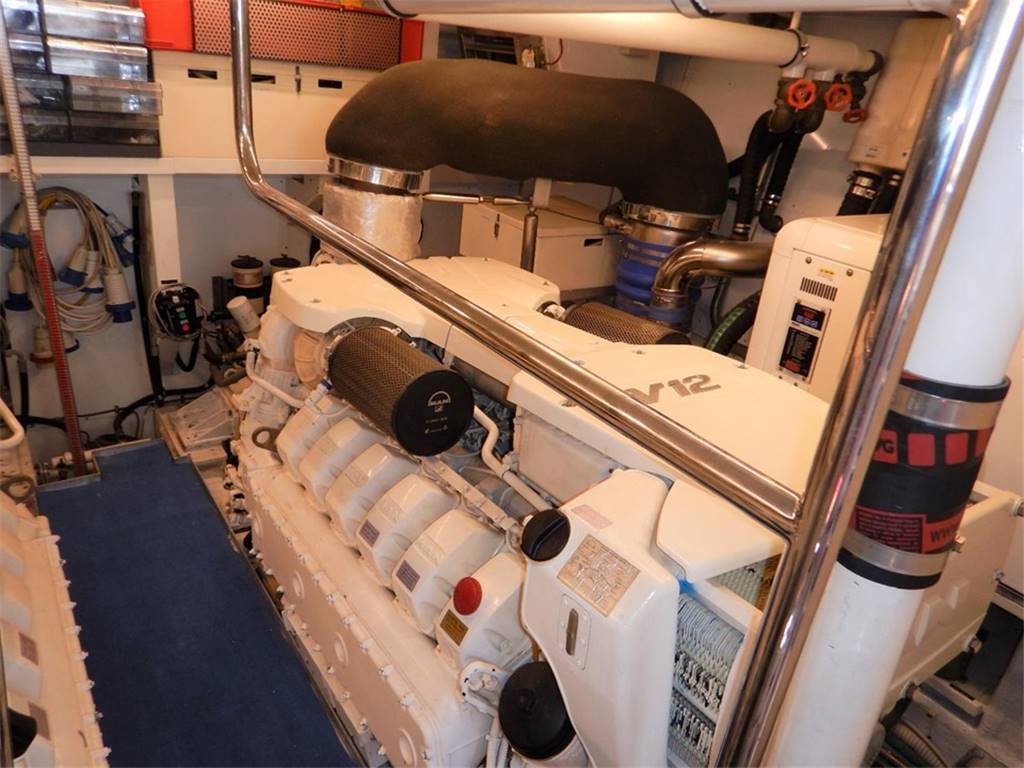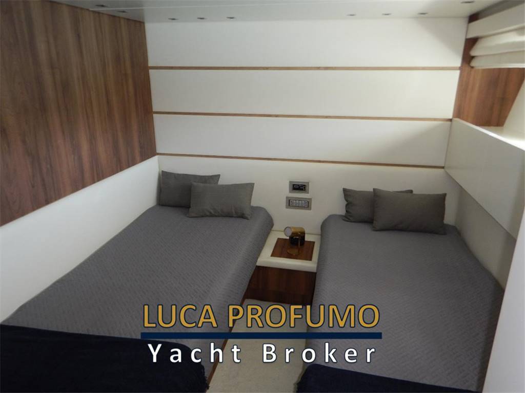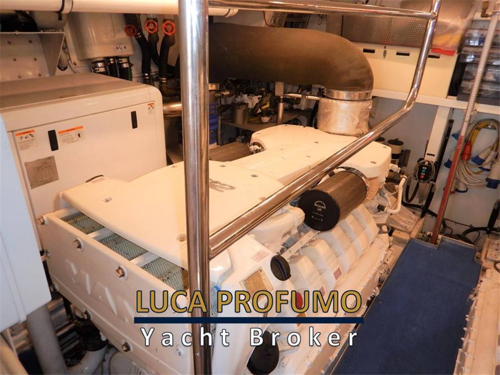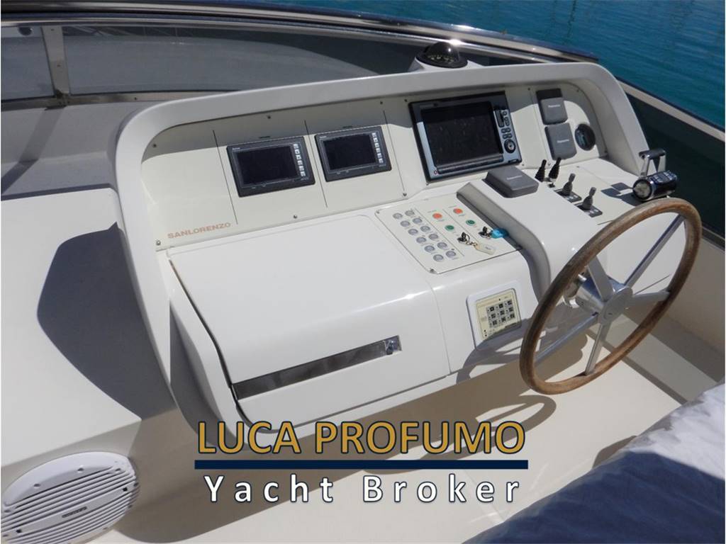 Notas internas– Cabina vip a prua – Cabina ospiti due letti in piano e bagno con doccia a dritta – Cabina ospiti con bagno a babordo – N.1 cabina equipaggio con due posti letto e toilette – Cucina attrezzata con frigorifero, congelatore, piano cottura, lavastoviglie – Notas de la instrumentación– Plotter cartografico Garmin (2013)– Radar – Scandaglio – Tridata Raymarine ST60+ – Pilota automatico Raymarine ST6002 Smart – 2° stazione sul fly – 3° stazione nel pozzetto a scomparsa Notas de armamentoElica di prua – n.2 Tonneggi a Poppa – Tavolo in pozzetto – Doccia esterna – Cuscineria pozzetto – Scaletta bagno – Plancetta Tender lift – Passerella elettro idraulica Besenzoni – Hard top con tendalino – Climatizzatore Condaria 90000 BTU/h – ice maker – pagliolo in legno massello – 2 gruppi da kw 20 – tv in tutte le cabine – tv salone. |