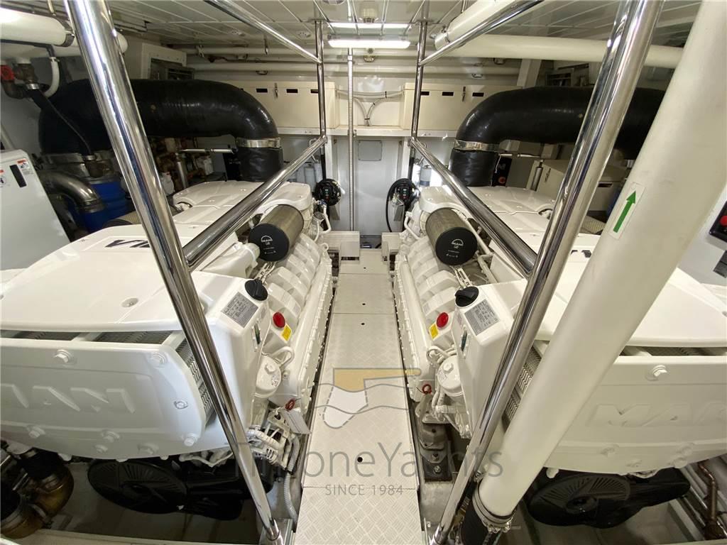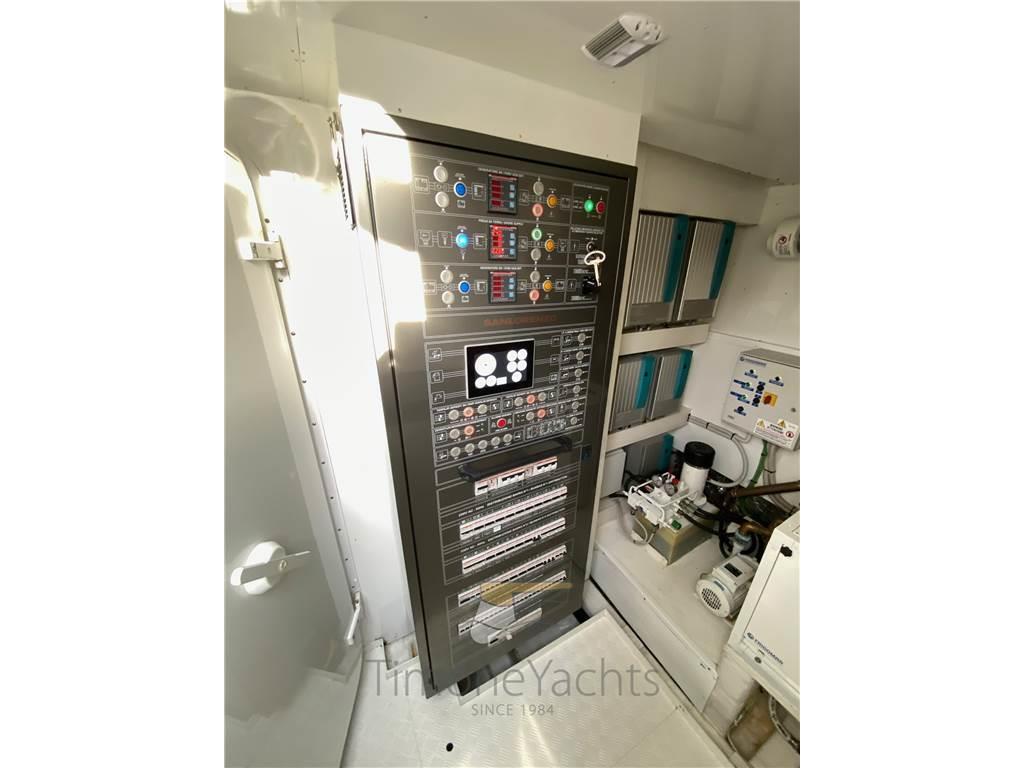 Notas internasNotas de la instrumentaciónAIS, Angolo barra, Bussola, 3 Comando motori elettronico, Contamiglia, Ecoscandaglio, Fax, GPS, Interfono, Pilota automatico, Plotter, Radar, Radio VHF, Sedile Copilota, SSB.Notas de armamentoAllestimento tecnico e di coperta:Autogonfiabile, Bitte Abbattibili, Camminamenti laterali in teak, Doccia esterna, Doppia timoneria, Elica di prua - bow thruster, Flap idraulici, Gruette per tender su fly, Impianto antincendio, Indicatori Flaps, Lavaggio catena, Passerella, Piattaforma, Pompa di sentina automatica, Pompa di sentina manuale, 2 Porta laterale, Pozzetto Teak, Presa 220V banchina, Presa acqua banchina, Raddrizzatore, Salpa Ancore Elettrico, Scaletta da bagno, Tavolo pozzetto, Tender, Tromba, 2 Winch tonneggio di poppa, Winch tonneggio di prua. Dotazioni domestiche di bordo: Clima reversibile, Dimmer per Luci, Impianto acque nere, Pavimento interno in legno, Prese interne 12v, Prese interne 220v, Serbatoio Acque Nere, 4 WC marino elettrico (+ crew). Dotazioni di sicurezza: Giubbetti di salvataggio. Intrattenimento: Altoparlanti, Antenna Satellitare TV, DVD, Home Theater, Impianto TV, Radio AM/FM, Ricevitore satellitare, Stereo, 4 TV. Cucina ed elettrodomestici: Forno, Frigorifero esterno, Frigorifero interno, Ghiacciaia, ICE Maker, Lavasciuga, Lavastoviglie, Lavatrice, Piastra in vetroceramica. Tappezzerie: Bimini, Cappottina, Cuscineria completa, Cuscineria di poppa, Cuscineria di prua, Cuscineria fly, Cuscineria Pozzetto, Oscuranti, Tendalino. |