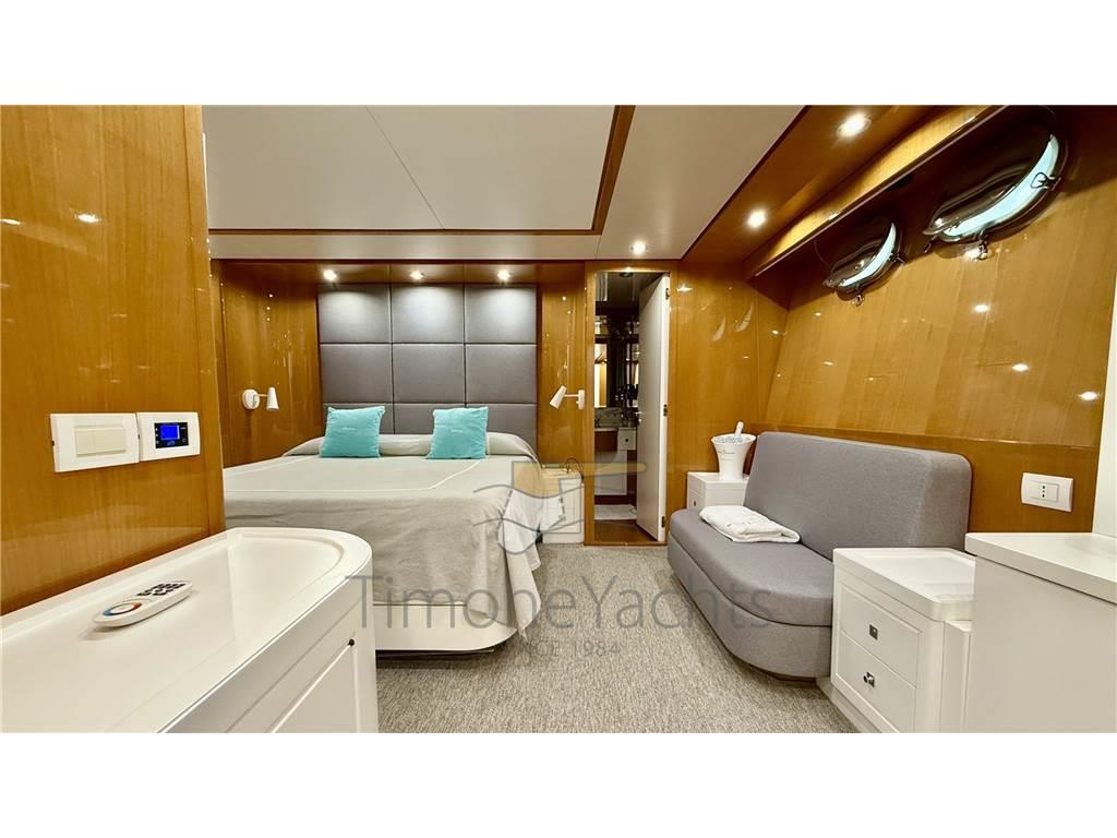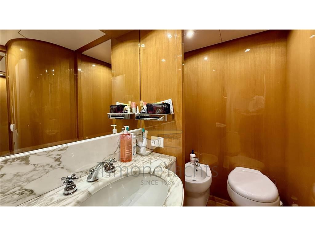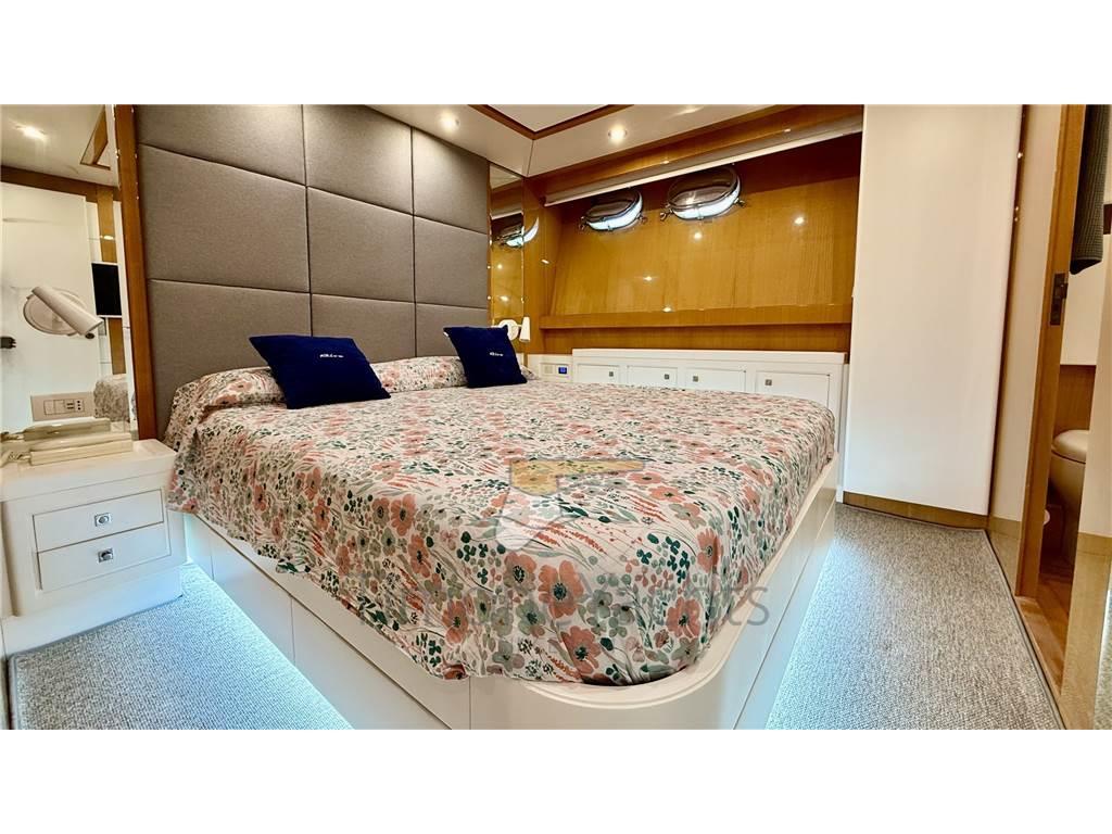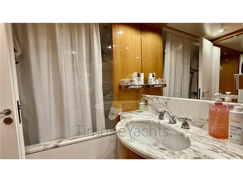 Notas internasOltre bagno giorno al ponte principale. Alloggi equipaggio a prua, con accesso dal ponte. Notas de la instrumentaciónAIS, Angolo barra, Antenna radar, Bussola, Comando motori elettronico, Computer di bordo, Contametri catena, Contamiglia, Ecoscandaglio, Fax, GPS, Interfono, Luci di navigazione, Pilota automatico, Plotter, Radar, Radio VHF, SSB.Notas de armamentoAllestimento tecnico e di coperta:Allarme sentina, Ancora, Apertura Vano Motore Elettrica, Autogonfiabile, Camminamenti laterali in teak, Doccia esterna, Doppia timoneria, Elica di poppa - stern thruster, Elica di prua - bow thruster, Faro orientabile, Flap idraulici (N°2), Gruette per tender su fly, Impianto antincendio, Lavaggio catena, Passerella, Piattaforma, Pompa di sentina automatica, Pompa di sentina manuale, Ponte in teak, Porta ingresso, Porta laterale, Pozzetto Teak, Raddrizzatore, Rollbar, Salpa Ancore Elettrico, Scaletta da bagno, Selle per Tender, Tavolo pozzetto, Tromba, Winch tonneggio di poppa. Dotazioni domestiche di bordo: Aria condizionata, Clima reversibile, Pavimento interno in legno, Prese interne 12v, Prese interne 220v, Riscaldamento, WC marino elettrico. Dotazioni di sicurezza: Giubbetti di salvataggio. Intrattenimento: Stereo, TV. Cucina ed elettrodomestici: Forno, Frigorifero interno (N°2), ICE Maker, Lavastoviglie, Lavatrice, Microonde. Tappezzerie: Bimini, Copripozzetto, Cuscineria completa, Cuscineria di poppa, Cuscineria di prua, Cuscineria fly, Cuscineria Pozzetto, Tendalino. |