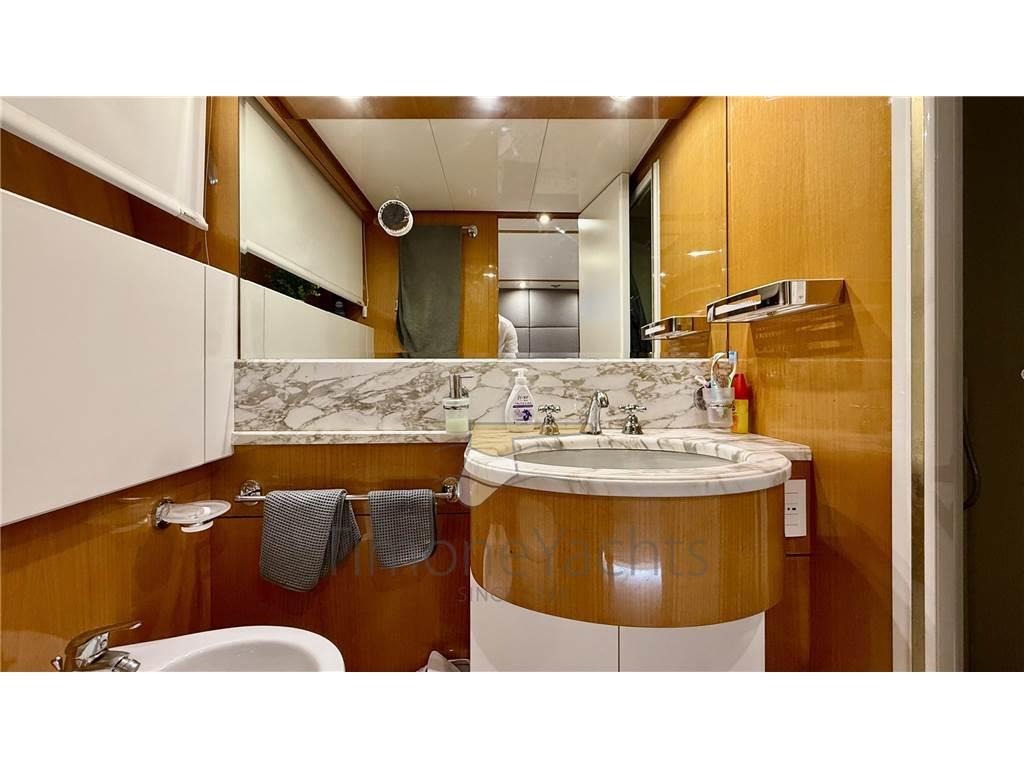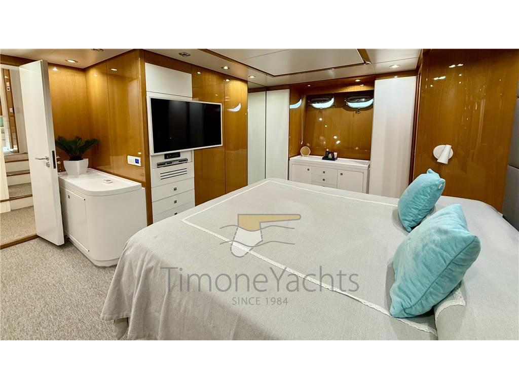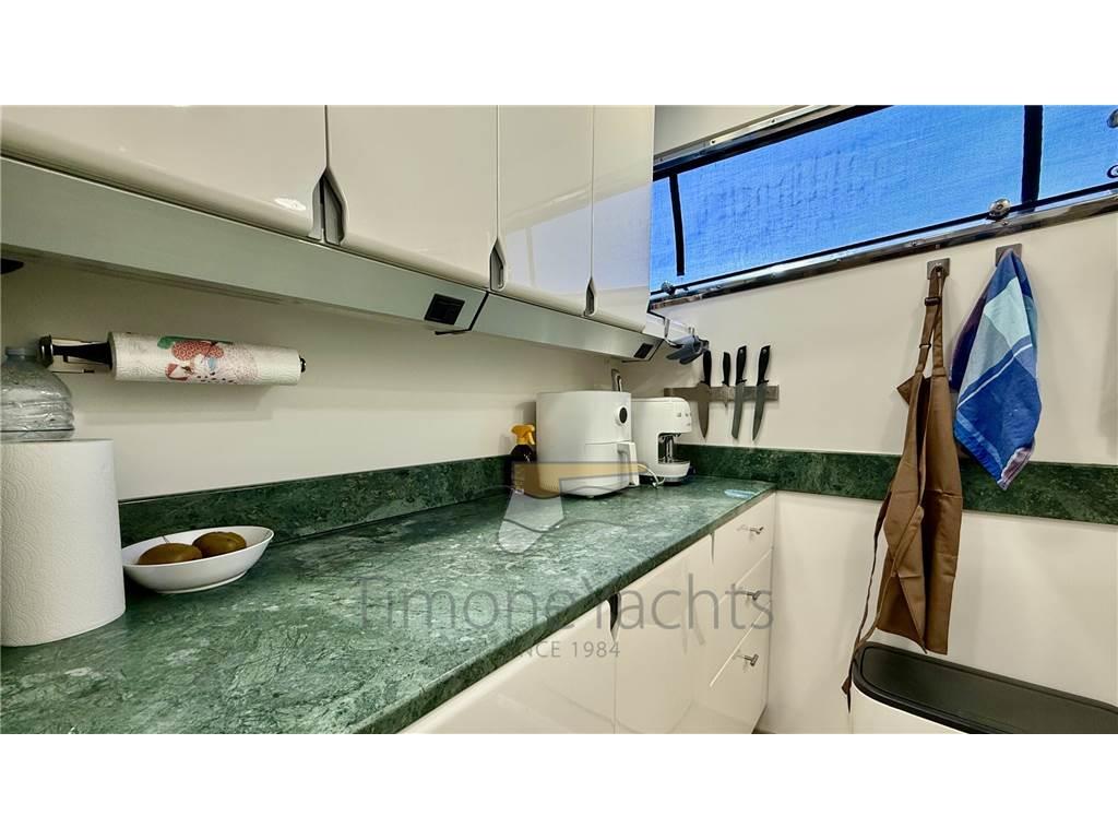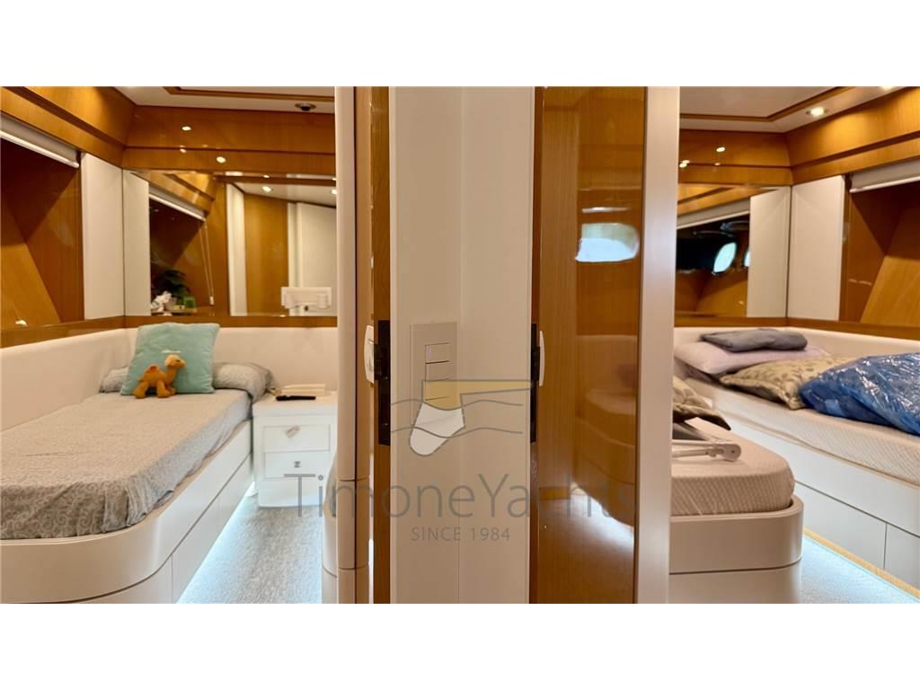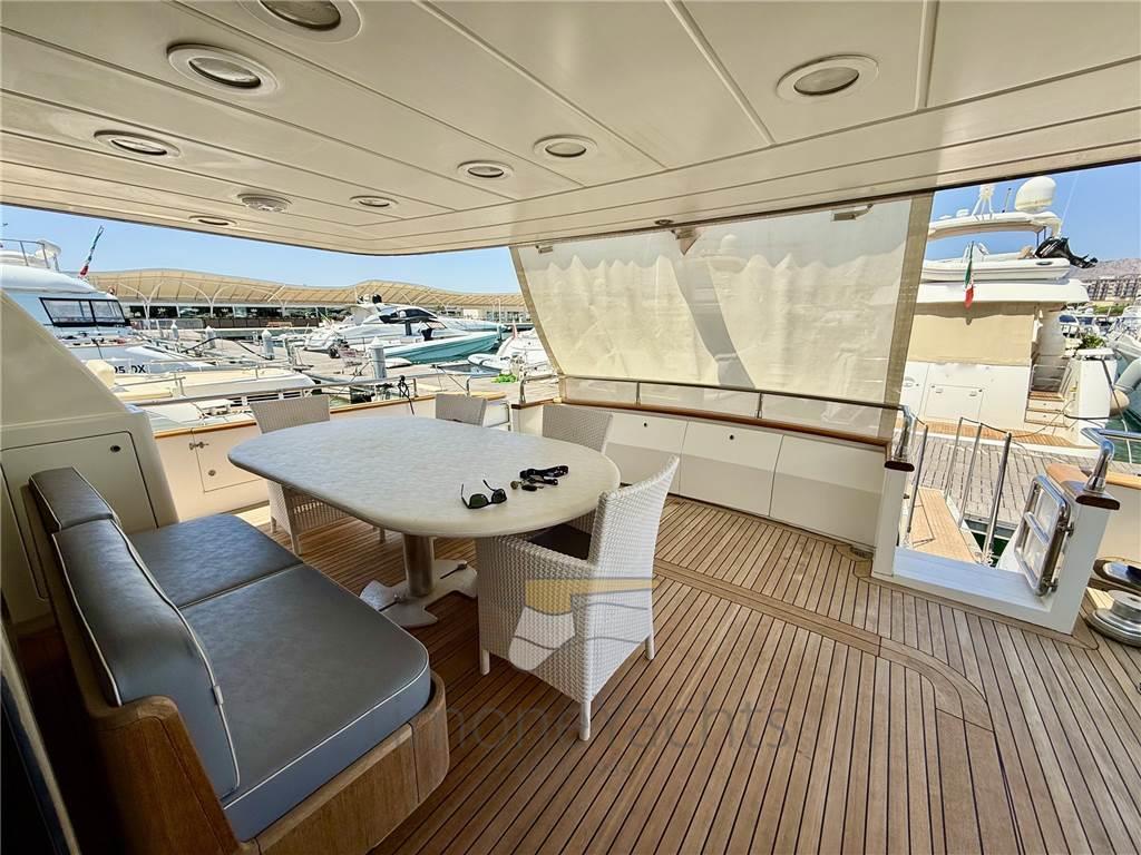 Notas internasOltre bagno giorno al ponte principale. Alloggi equipaggio a prua, con accesso dal ponte. Notas de la instrumentaciónAIS, Angolo barra, Antenna radar, Bussola, Comando motori elettronico, Computer di bordo, Contametri catena, Contamiglia, Ecoscandaglio, Fax, GPS, Interfono, Luci di navigazione, Pilota automatico, Plotter, Radar, Radio VHF, SSB.Notas de armamentoAllestimento tecnico e di coperta:Allarme sentina, Ancora, Apertura Vano Motore Elettrica, Autogonfiabile, Camminamenti laterali in teak, Doccia esterna, Doppia timoneria, Elica di poppa - stern thruster, Elica di prua - bow thruster, Faro orientabile, Flap idraulici (N°2), Gruette per tender su fly, Impianto antincendio, Lavaggio catena, Passerella, Piattaforma, Pompa di sentina automatica, Pompa di sentina manuale, Ponte in teak, Porta ingresso, Porta laterale, Pozzetto Teak, Raddrizzatore, Rollbar, Salpa Ancore Elettrico, Scaletta da bagno, Selle per Tender, Tavolo pozzetto, Tromba, Winch tonneggio di poppa. Dotazioni domestiche di bordo: Aria condizionata, Clima reversibile, Pavimento interno in legno, Prese interne 12v, Prese interne 220v, Riscaldamento, WC marino elettrico. Dotazioni di sicurezza: Giubbetti di salvataggio. Intrattenimento: Stereo, TV. Cucina ed elettrodomestici: Forno, Frigorifero interno (N°2), ICE Maker, Lavastoviglie, Lavatrice, Microonde. Tappezzerie: Bimini, Copripozzetto, Cuscineria completa, Cuscineria di poppa, Cuscineria di prua, Cuscineria fly, Cuscineria Pozzetto, Tendalino. |