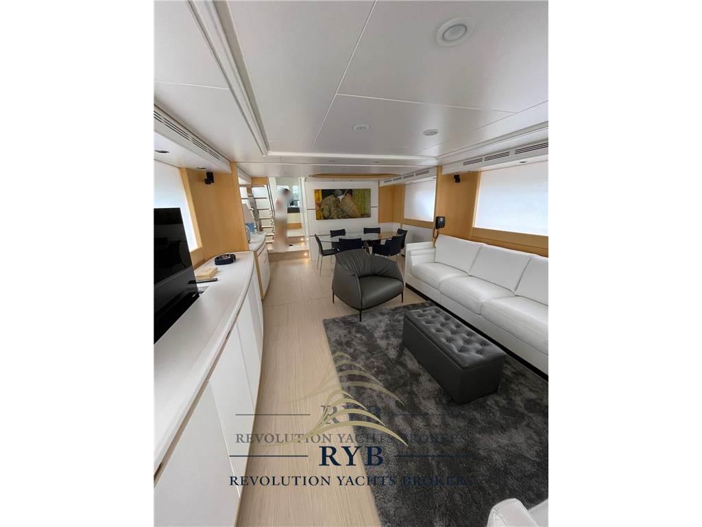 Notas internasNotas de la instrumentaciónAIS, Angolo barra, Antenna radar, Bussola, Computer di bordo, Contamiglia, Ecoscandaglio, GPS, Interfono, Pilota automatico, Plotter, Plotter con antenna GPS, Radar, Radio VHF, Sedile Copilota.Notas de armamentoAllestimento tecnico e di coperta:Allarme motore, Allarme sentina, 2 Ancora, Bocche di Lupa, Camminamenti laterali in teak, Doccia esterna, Doppia timoneria, Elica di poppa - stern thruster, Elica di prua - bow thruster, Faro orientabile, Flap idraulici (N°2), Impianto antincendio, Impianto Aria Compressa, Indicatori Flaps, Lavaggio catena, Luci di cortesia, Luci subacquee, Passerella (IDRAULICA TELESCOPICA), Piattaforma (TENDER LIFT), Pompa di sentina automatica, Pompa di sentina manuale, Porta ingresso, Pozzetto Teak, Presa 220V banchina, Presa acqua banchina, Raddrizzatore, Ripetitore strumentazione, Rollbar, Salpa Ancore Elettrico, Scaletta da bagno, Selle per Tender, Stabilizzatori (ZERO SPEED), Tavolo pozzetto, Tavolo Salone Abbattibile, Tromba, 2 Winch tonneggio di poppa, Winch tonneggio di prua. Dotazioni domestiche di bordo: Aria condizionata, BBQ/ Grill, Cassaforte, Clima reversibile, Controllo Domotica, Impianto acque nere, Pavimento interno in legno, Prese interne 12v, Prese interne 220v, Riscaldamento, Serbatoio Acque Nere, Telecamera, WC marino elettrico. Dotazioni di sicurezza: Giubbetti di salvataggio. Intrattenimento: Altoparlanti, Antenna Satellitare TV, Decoder satellite, Digitale Terrestre, Impianto TV, Meccanismo saliscendi per TV, Radio AM/FM, Ricevitore satellitare, Stereo, TV. Cucina ed elettrodomestici: Cucina, Fornello, Forno, Frigorifero esterno, Frigorifero interno (N°2), ICE Maker, Lavastoviglie, Lavatrice, Microonde, Piastra in vetroceramica. Tappezzerie: Bimini, Copripozzetto, Cuscineria completa, Cuscineria di poppa, Cuscineria di prua, Cuscineria fly, Cuscineria Pozzetto, Teli copri finestra, Telo copriconsolle, Telo coprisedile, Tenda Elettrica, Tendalino. |