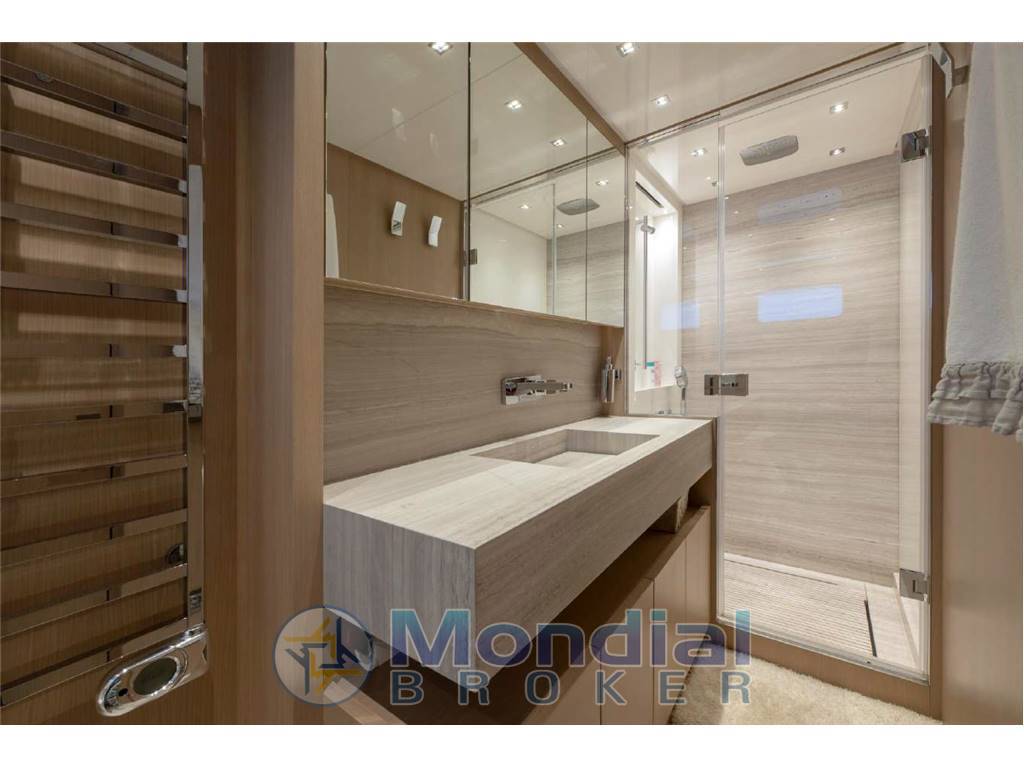 Notas internasamidship , Vip cabin at the bow. Oak floor in the main salon and the galley, carpet floor in guest cabins, marble in the restrooms and vinylic floor in the crew area. Gloss grey oak wood walls and furniture with leather inserts. Lacquered ceilings. Notas de la instrumentaciónDepthsounder - RAYMARINE + flyRadar - RAYMARINE Log-Speedometer - RAYMARINE +fly Repeater(s) TV Set Plotter - RAYMARINE + fly Autopilot - RAYMARINE + fly Radio ? GPS - RAYMARINE + fly VHF - RAYMARINE + fly Notas de armamentoCMC Electric Fin StabilizerHydraulic Swim Platform Flybridge with a Louvered Hardtop Four Cabin Configuration with an on Deck Day Head 800 Gallon Water Maker Electrical System Aft Glendinning Cablemaster 1x CM8 with 100A shore power Engine Room Equipment Hot water circulation pump Watermaker 900 gall/day Maneuvering Controls MTU third fixed control station on aft cockpit Satellite and Communication System Simrad Atmosphere integrated package Second NSO Thrusters and Stabilizers ZERO SPEED fins electric stabilizers (anchor and navigation) Hydraulic stern thruster |