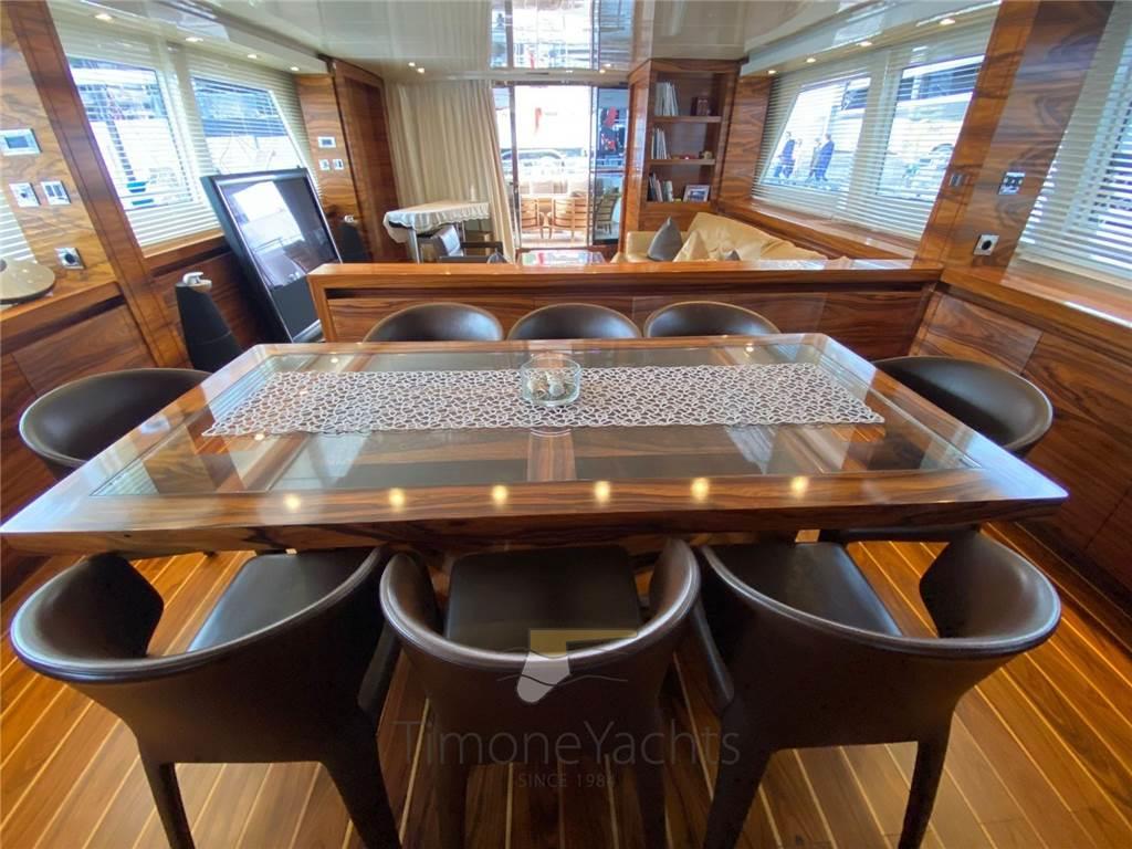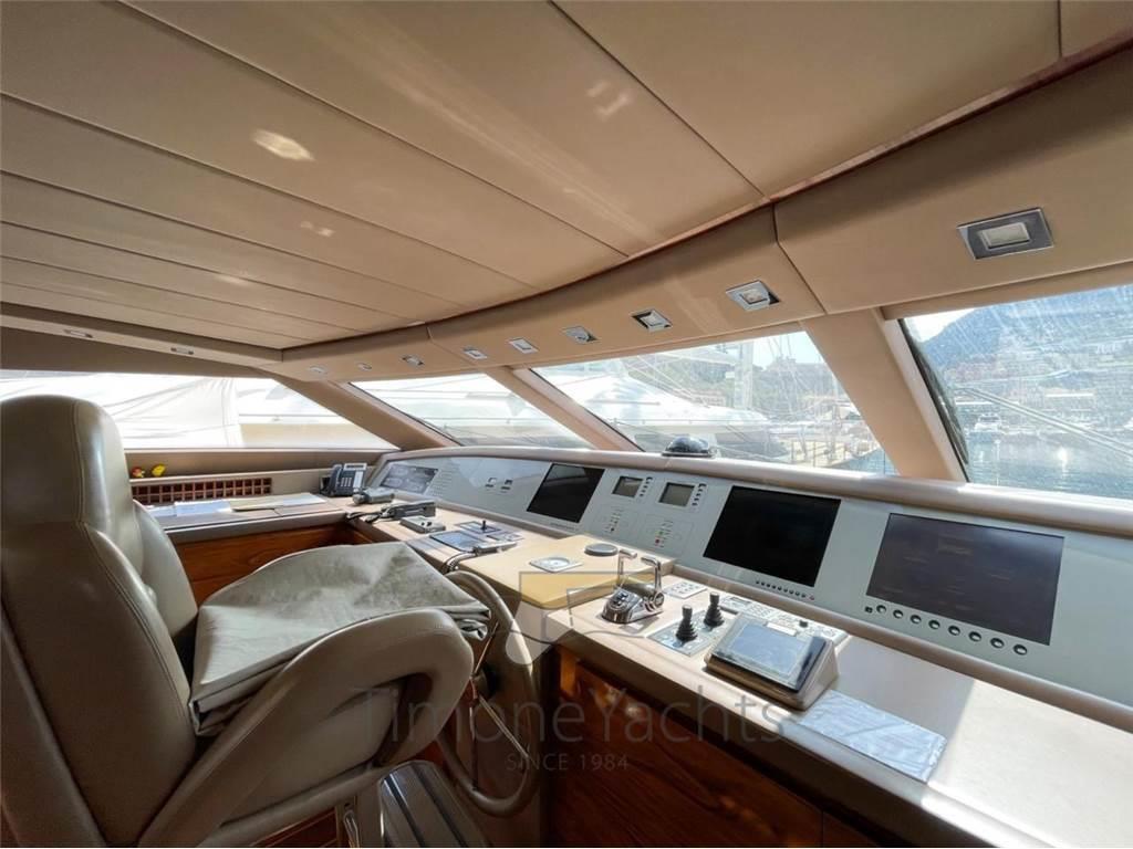 Notas internasNotas de la instrumentaciónAIS, Angolo barra, Bussola, Computer di bordo, Contamiglia, 2 Display (MFD Raymarine G170), Ecoscandaglio, Fax, GPS, Interfono, Pilota automatico, Plotter, Plotter con antenna GPS, Radar, Radio VHF, SSB, Stazione vento, Telefono GSM, Telefono satellitare.Notas de armamentoAllestimento tecnico e di coperta:Allarme sentina, Ancora, Autogonfiabile, Camminamenti laterali in teak, Doccia esterna, Elica di poppa - stern thruster, Faro orientabile, Flap idraulici, Gruette, Hard top, Impianto antincendio, Impianto Aria Compressa, Lavaggio catena, Luci subacquee, Piattaforma, Pozzetto Teak, Raddrizzatore, Salpa Ancore Elettrico, Scaletta da bagno, Sistema Depurazione acque nere, Stabilizzatori (Mitsubishi Zero Speed Stabilizers), Tender (Williams Jet Tender), Winch tonneggio di poppa, Winch tonneggio di prua. Dotazioni domestiche di bordo: Aria condizionata, Dimmer per Luci, Dissalatore (230 l h), Impianto acque nere, Riscaldamento. Intrattenimento: Antenna Satellitare TV, Stereo, TV. Cucina ed elettrodomestici: Congelatore, Cucina, Forno, Frigorifero esterno, Frigorifero interno, ICE Maker, Lavasciuga, Lavastoviglie, Lavatrice, Macchina caffè, Microonde, Winecooler. Tappezzerie: Cuscineria fly. |