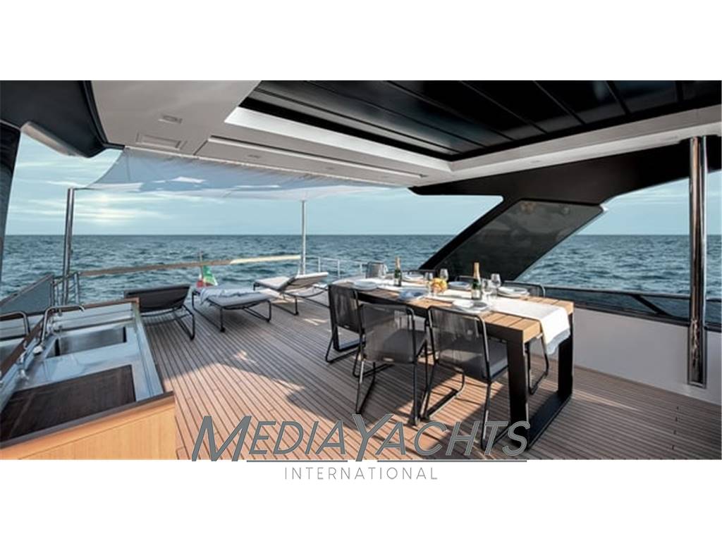 Notas de armamentobow thruster, stern thruster, engine alarm, bilge alarm, teak side decks and cockpit, hydraulic flaps and indicators, tender + tender garage, hard top, courtesy lights and underwater lights, gangway, bathing platform, stabilizers, air conditioning, watermaker, black water system, main deck parquet