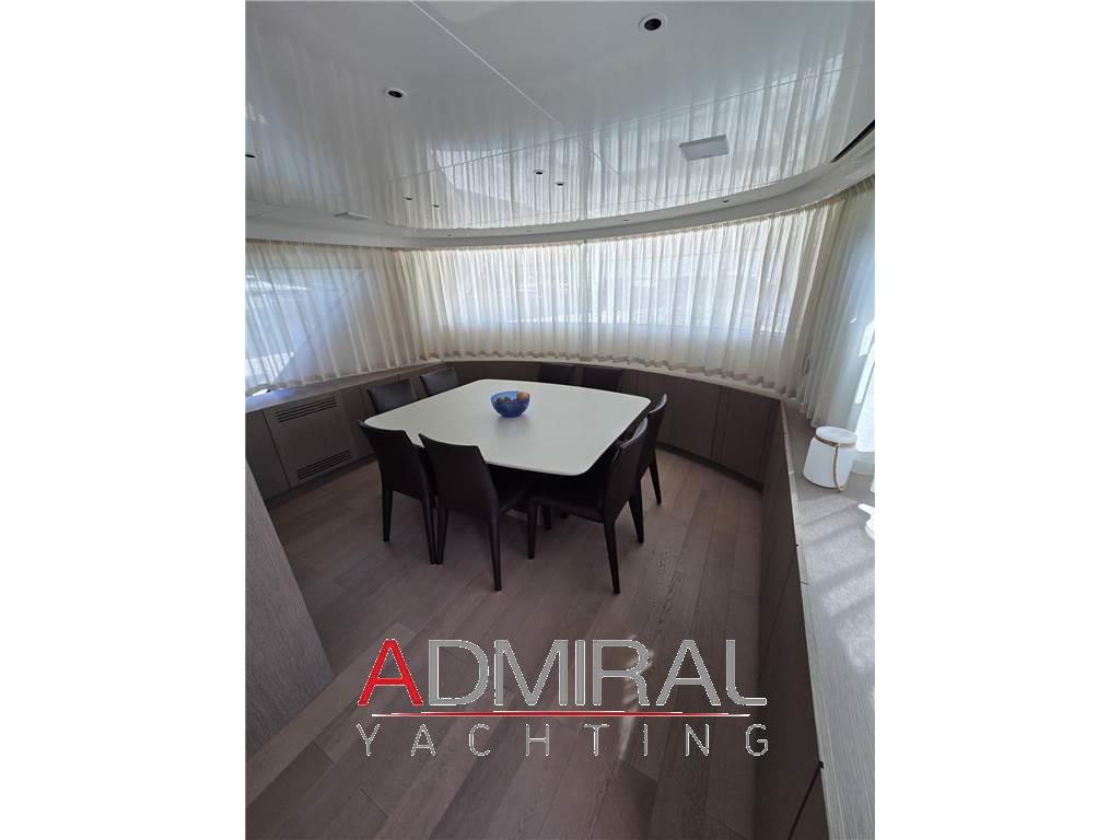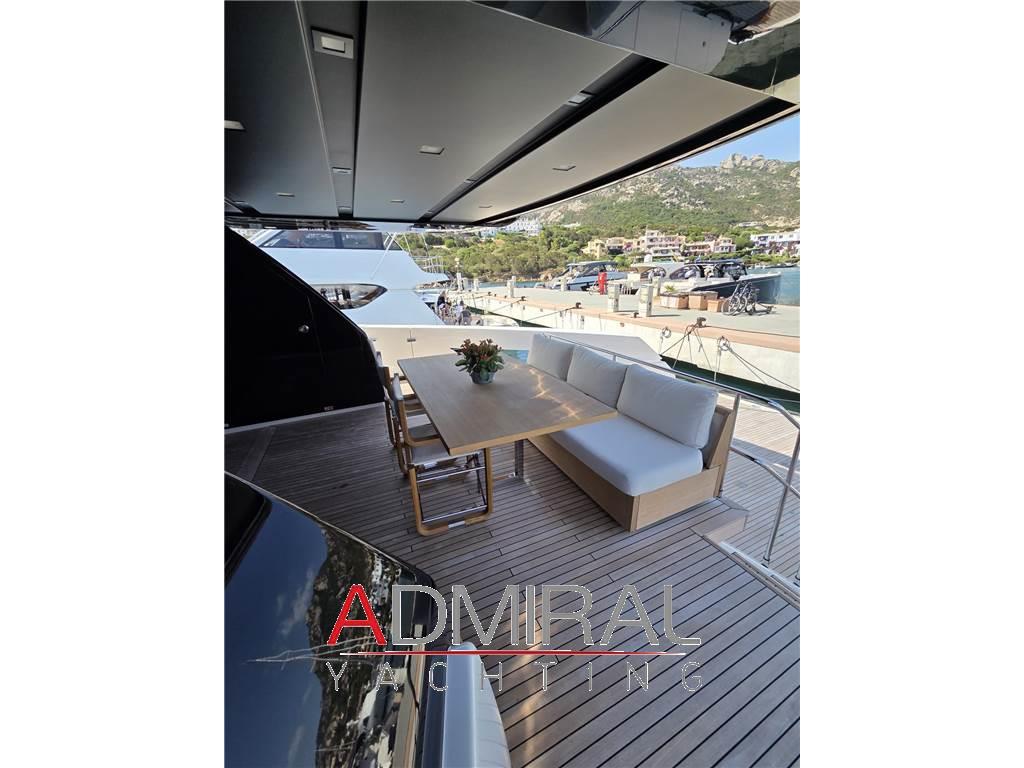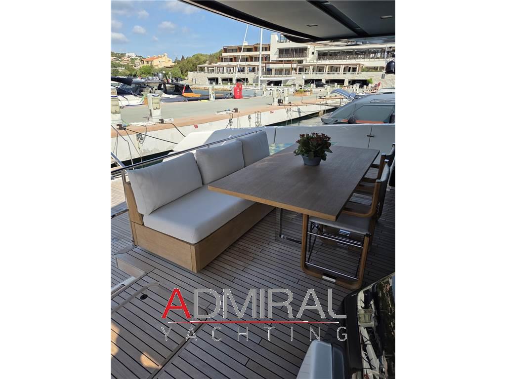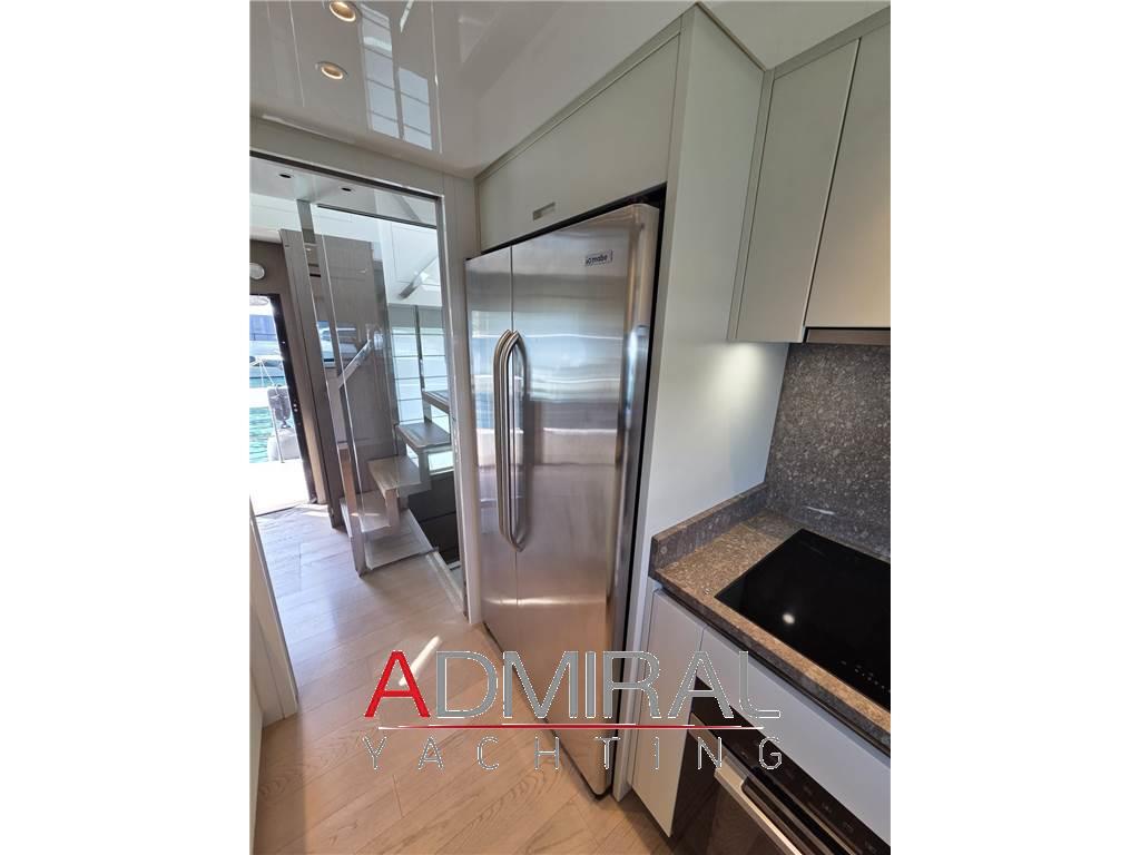 Notas de armamentoAllarme fumo/gas, Allarme motore, Allarme sentina, Ancora, Autoclave, Batterie, Bocche di Lupa, Camminamenti laterali in teak, Caricabatterie, Colorazione speciale, Doccia esterna, Elica di prua - bow thruster, Faro orientabile, Flap idraulici, Gruette per moto d'acqua, Gruette per tender, Hard top, Impianto antincendio, Lavaggio catena, Luci di cortesia, Luci subacquee, Passerella (IDRAULICA MULTIFUNZIONE), Piattaforma (ELETTROIDRAULICA), Pompa di sentina automatica, Pompa di sentina elettrica, Pompa di sentina manuale, Porta ingresso, Porta laterale, Pozzetto Teak, Presa 220V banchina, Presa acqua banchina, Raddrizzatore, Salpa Ancore Idraulico, Scaletta da bagno, Stabilizzatori (PINNE STABILIZZATRICI "ZERO" SPEED), Tavolo pozzetto, Tender (WILLIAMS 345 SPORTJET), Tientibene con cancelletti, Tromba, Winch, Winch Idraulico, Altoparlanti, Antenna Satellitare TV, Aria condizionata, Boiler, Cassaforte, Clima reversibile, Congelatore, Controllo Domotica, Cucina, Cuscineria completa, Cuscineria di poppa, Cuscineria di prua, Cuscineria fly, Cuscineria Pozzetto, Decoder satellite, Digitale Terrestre, Dissalatore (IDROMAR ), DVD, Fornello, Forno, Frigorifero esterno, Frigorifero interno, Ghiacciaia, Home Theater, ICE Maker, Impianto acque nere, Impianto TV, Inverter, Lavasciuga, Lavastoviglie, Microonde, Pavimento interno in legno, Piastra in vetroceramica, Prese interne 12v, Prese interne 220v, Radio AM/FM, Ricevitore satellitare, Riscaldamento, Serbatoio Acque Nere, Stereo, Telecamera, Tendalino, TV, WC marino elettrico.