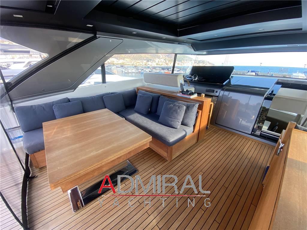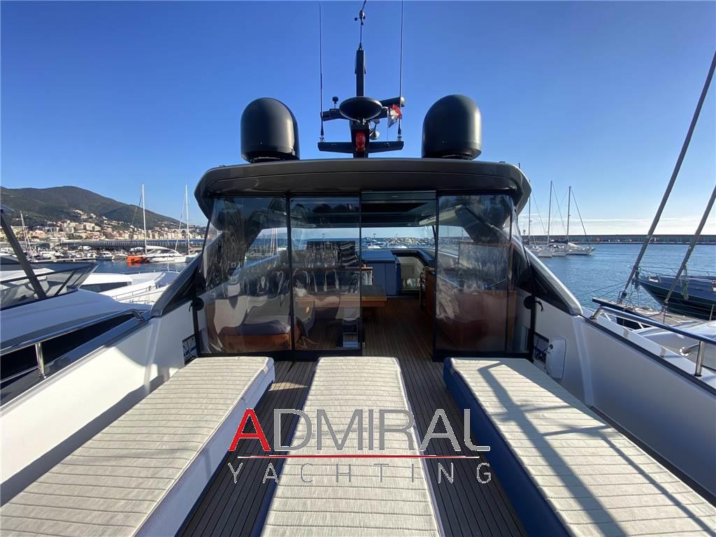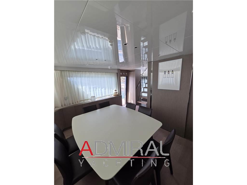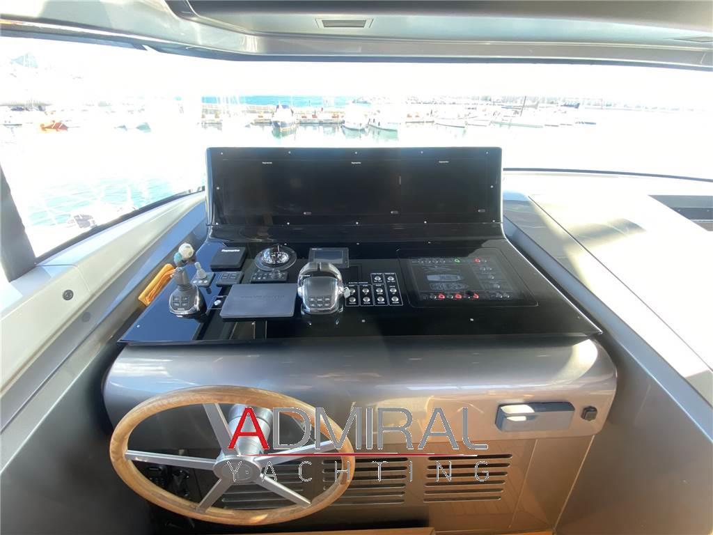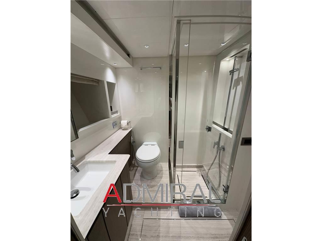 Notas de armamentoAllarme fumo/gas, Allarme motore, Allarme sentina, Ancora, Autoclave, Batterie, Bocche di Lupa, Camminamenti laterali in teak, Caricabatterie, Colorazione speciale, Doccia esterna, Elica di prua - bow thruster, Faro orientabile, Flap idraulici, Gruette per moto d'acqua, Gruette per tender, Hard top, Impianto antincendio, Lavaggio catena, Luci di cortesia, Luci subacquee, Passerella (IDRAULICA MULTIFUNZIONE), Piattaforma (ELETTROIDRAULICA), Pompa di sentina automatica, Pompa di sentina elettrica, Pompa di sentina manuale, Porta ingresso, Porta laterale, Pozzetto Teak, Presa 220V banchina, Presa acqua banchina, Raddrizzatore, Salpa Ancore Idraulico, Scaletta da bagno, Stabilizzatori (PINNE STABILIZZATRICI "ZERO" SPEED), Tavolo pozzetto, Tender (WILLIAMS 345 SPORTJET), Tientibene con cancelletti, Tromba, Winch, Winch Idraulico, Altoparlanti, Antenna Satellitare TV, Aria condizionata, Boiler, Cassaforte, Clima reversibile, Congelatore, Controllo Domotica, Cucina, Cuscineria completa, Cuscineria di poppa, Cuscineria di prua, Cuscineria fly, Cuscineria Pozzetto, Decoder satellite, Digitale Terrestre, Dissalatore (IDROMAR ), DVD, Fornello, Forno, Frigorifero esterno, Frigorifero interno, Ghiacciaia, Home Theater, ICE Maker, Impianto acque nere, Impianto TV, Inverter, Lavasciuga, Lavastoviglie, Microonde, Pavimento interno in legno, Piastra in vetroceramica, Prese interne 12v, Prese interne 220v, Radio AM/FM, Ricevitore satellitare, Riscaldamento, Serbatoio Acque Nere, Stereo, Telecamera, Tendalino, TV, WC marino elettrico.
