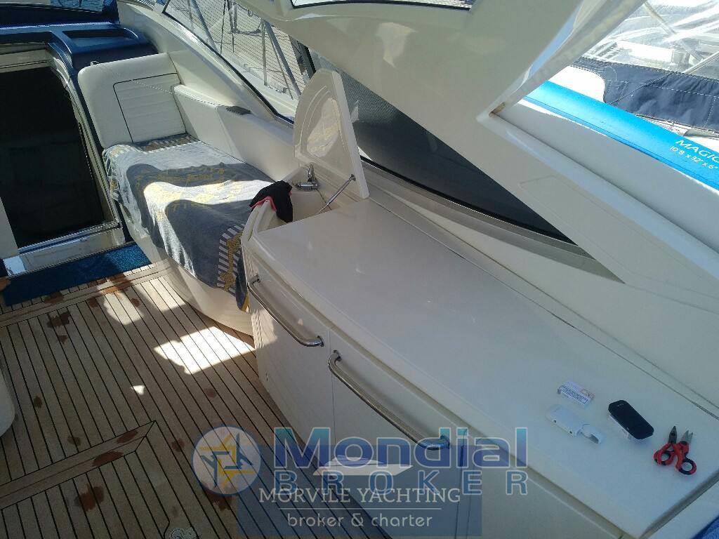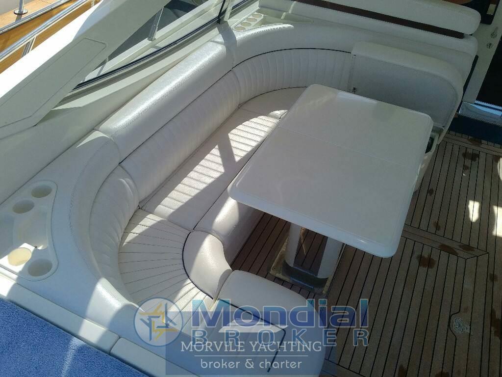 Notas internasCabine: 3 Toilette: 3 Impianto stereo Impianto TV Tv Bagni: 3 Cabine: 3 Cucina Forno a microonde Forno Notas de la instrumentaciónImpianto elettronico- Ecoscandaglio - Log-contamiglia - Computer di bordo - Impianto TV: DIGITALE TERRESTRE + ANTENNA SAT - Centrale di navigazione - Plotter - Lettore DVD - Pilota automatico - Radio - Bussola - Lettore CD - GPS - Altoparlanti di pozzetto - VHF Pilota automatico Baromentro Bussola Comandi flaps Contamiglia Ecoscandaglio GPS GPS-Plotter Log Vhf Notas de armamentoSerbatoio acquenere: 1 x 350 l Plastica Coperture/Tendalini - Tendalino pozzetto Equipaggiamenti Elettrici - Presa corrente a terra - Generatore: MASE 9 KW Equipaggiamenti interni - Elica di prua - Pompa di sentina elettrica - Forno - Pompa di sentina manuale - Microonde - WC marino - Aria condizionata - WC elettrico - Riscaldamento - Acqua calda - Frigorifero - Congelatore - Caricabatterie Dotazioni Esterne - Pozzetto in teak - Doccia pozzetto - Passerella idraulica - Autogonfiabile - Cuscineria pozzetto - Tavolo pozzetto - Scaletta bagno Cuscineria Frigorifero esterno Scaletta: 1 Tavolo nel pozzetto |