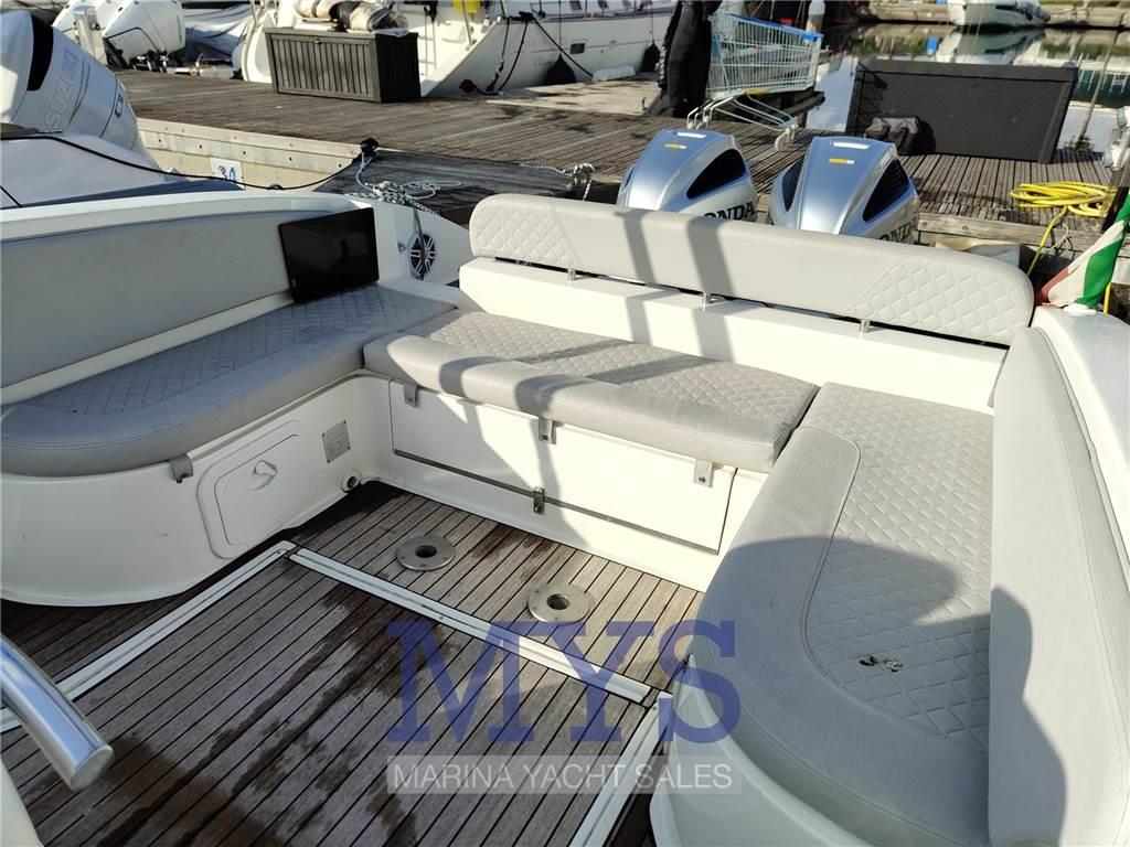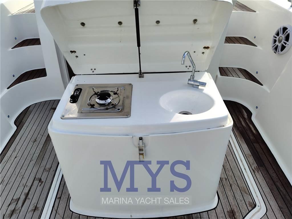 Notas internas- Matrimoniale francese sotto le scale - Dinette - Toilette senza bidet - Matrimoniale a V di prua Notas de la instrumentaciónSTRUMENTAZIONE:- Allarme motore - Bussola - Caricabatterie - GPS - Pompa di sentina automatica - Presa 220V banchina - Salpa Ancore Elettrico - Tromba - Manette elettroniche Notas de armamentoDotazioni di bordo:- Autoclave, - Batterie - N.6 Altoparlanti - Doccia esterna - Cuscineria completa - Cuscineria di poppa - Cuscineria di prua - Cuscineria Pozzetto - Fornello - Lavandino nel Pozzetto - Luci di cortesia - Luci subacquee - Porta ingresso - Pozzetto Teak - Prese interne 12v - Prese interne 220v - Rollbar - Stereo ( Fusion) - Tendalino - WC marino elettrico |