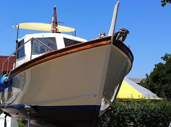 El astillero Sciallino tiene una larga experiencia en la construcción de barcos de pesca y embarcaciones de recreo. Bocio Sciallino es por más de treinta años sinónimo de calidad y seguridad. El 25 de Sciallino es un barco de desplazamiento de casco redondo, un barco del mar formado, para gente que busque todo el año, gente que sabe que pueden contar con una forma segura y confiable. Pintura rehecha en 2011. |