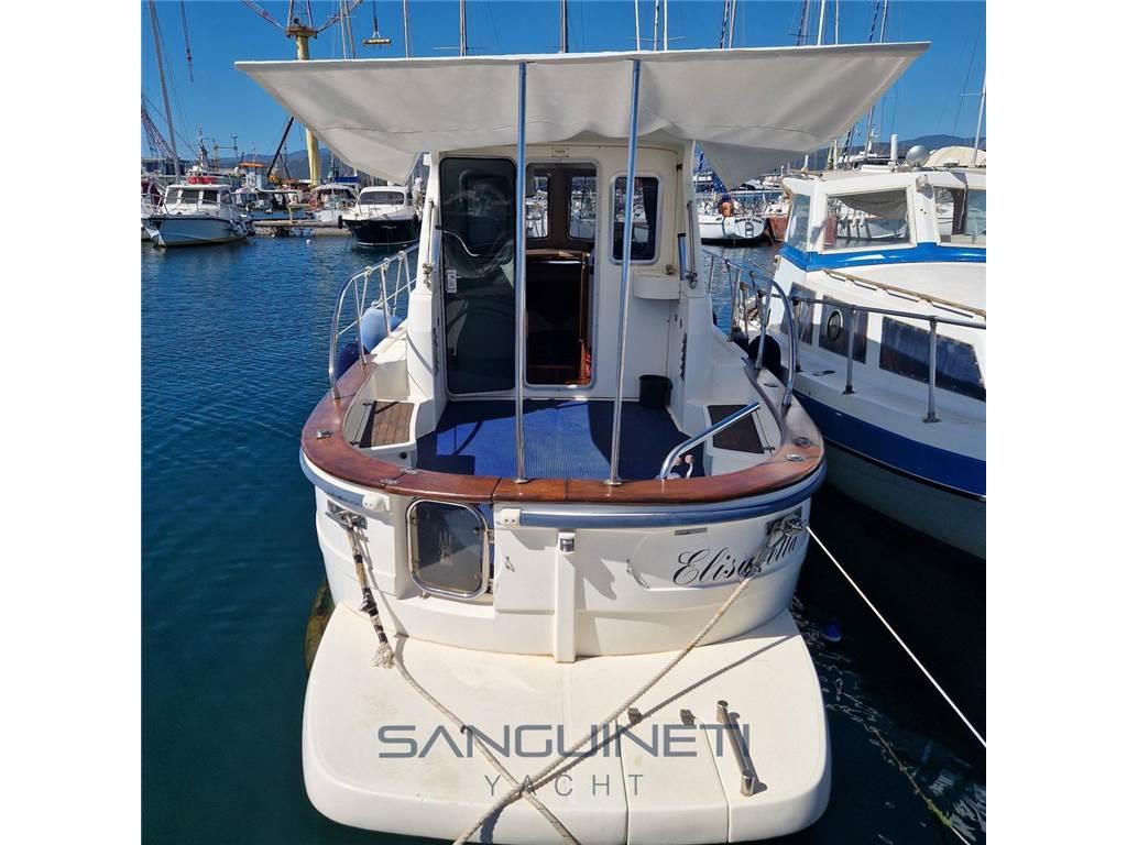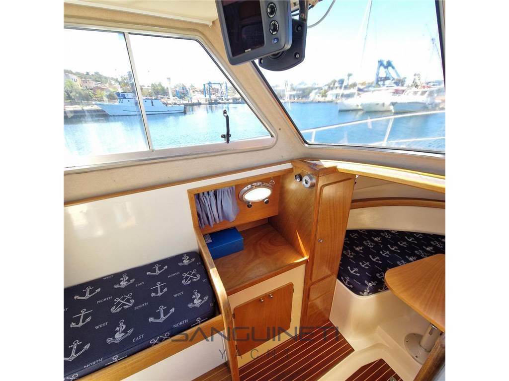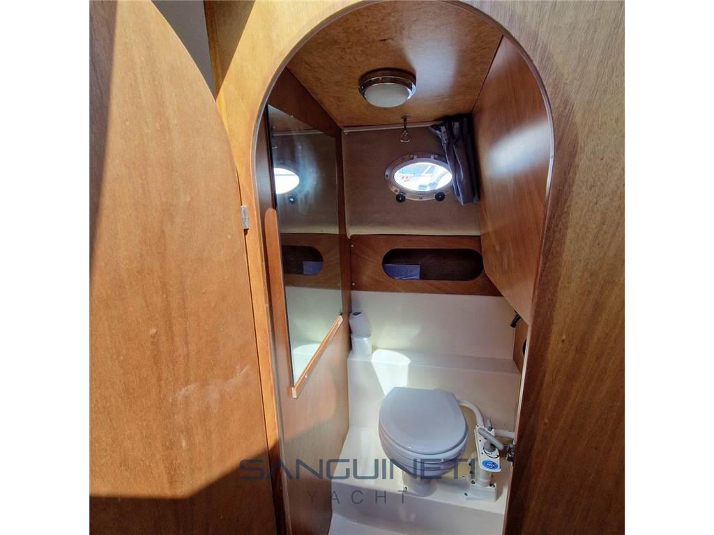 Notas internasNotas de la instrumentaciónLa barca è equipaggiata con una serie di strumenti di navigazione di alta qualità:Pilota automatico Raymarine. Ecoscandaglio Furuno mod FCV 620/585 con trasduttore passante 1 kW. Radio VHF Raymarine mod. Ray 49E. Strumentazione cartografica/GPS multifunzione mod. Interphase C map. Bussola a bagno d'olio. Contamiglia, log e display per un monitoraggio preciso della navigazione. Plotter con antenna GPS. Faro notturno orientabile per ricerca persone a mare. Computer di bordo. Notas de armamentoL'armamento della Sciallino 25 include:Ancora principale da 14 kg con 50 m di catena inox diam 8 mm e salpa-ancora elettrico. Ancora supplementare a marre pieghevoli per la pesca a bolentino in bassi fondali. 2 serbatoi carburante da 250l cadauno, gestibili singolarmente, con rifornimento sia a destra che a sinistra. Serbatoio di acqua dolce da 120l con autoclave. Doccia esterna estensibile nuova. Lavabo esterno in pozzetto. 2 panchine, di cui una adattata a vasca per il vivo con ricircolo acqua di mare. Pompa di sentina automatica e manuale. Staccabatterie per 2 batterie da 140 Ampere ciascuna. Impianto antincendio automatico nel vano motori con comando di emergenza in plancia. Zattera autogonfiabile per 4 persone per navigazione oltre 6 miglia (scadenza revisione 19/6/2025). Kit di sicurezza per navigazione entro 6/12 miglia, con segnali luminosi (scadenza 03/2025). |