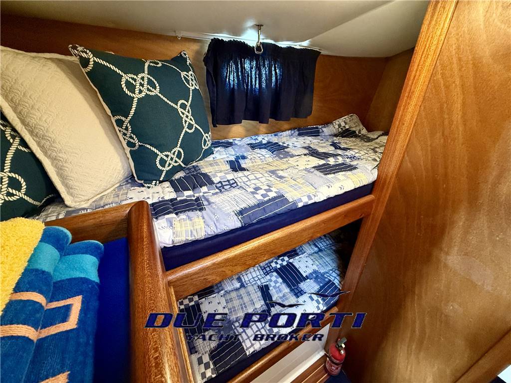Notas internasCabina ospiti a centro barca lato sx con letti a castello. Bagno con doccia. Cucina in piano attrezzata con frigo, lavello e fuochi a gas. Dinette fronte cucina con tavolo per 4 persone e divano a "C". Interni in mogano, parquet su tutto il pagliolato. Notas de la instrumentaciónGeonav 7"gps plotterPilota automatico Autohelm tridata Elica di prua Max power Salpa ancora elettrico Shipmate VHF Notas de armamentoPozzetto e plancetta in teak in ottimo statoPasserella idraulica Elica di prua Tendalino parasole pozzetto Cuscinerie complete in perfetto stato. |