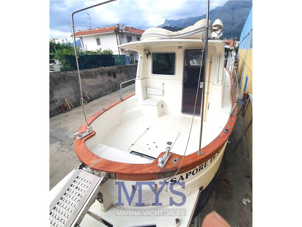 CLASSICA PILOTINA DEL CANTIERE SCIALLINO IN VERSIONE FISCHERMAN DOTATO DI DELFINIERA E VARI PORTACANNE. ADATTA ANCHE A RILASSANTI CROCIERE IN FAMIGLIA |