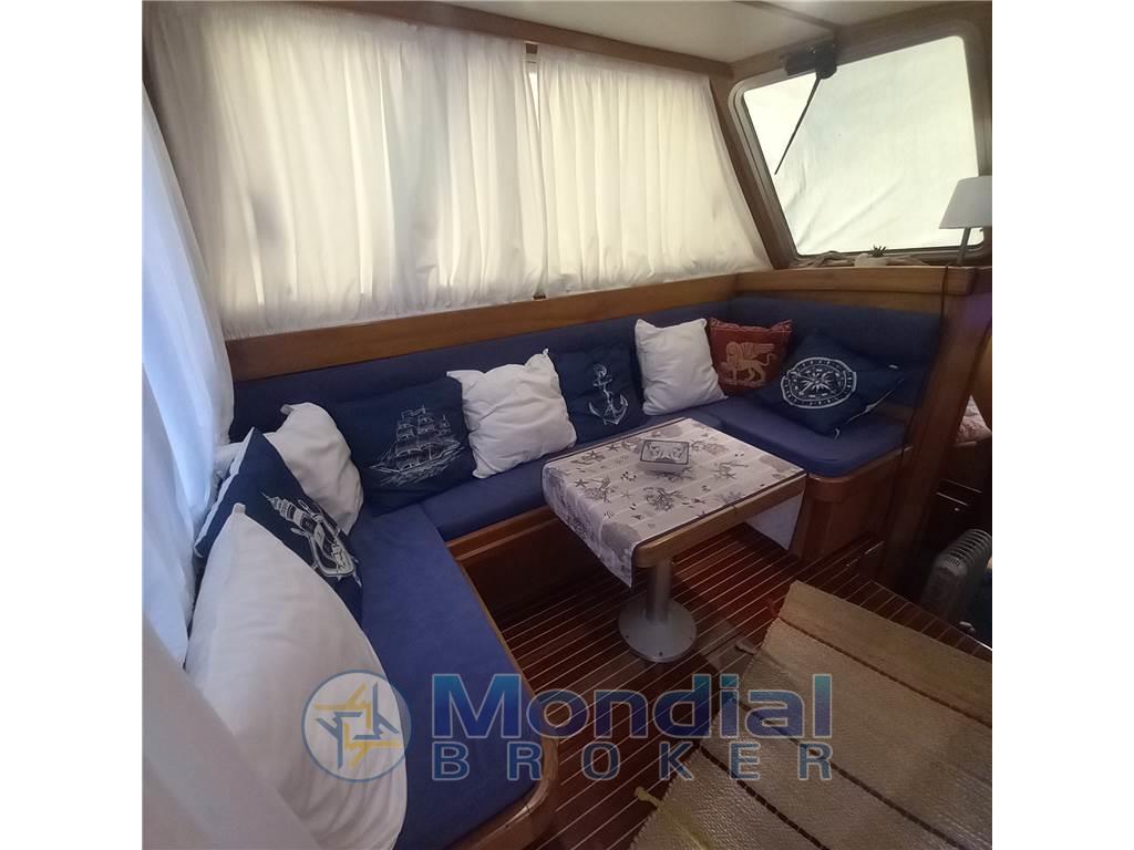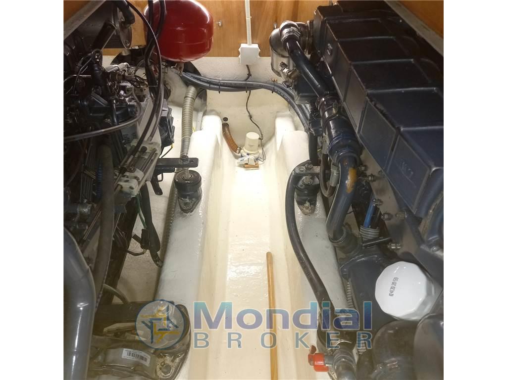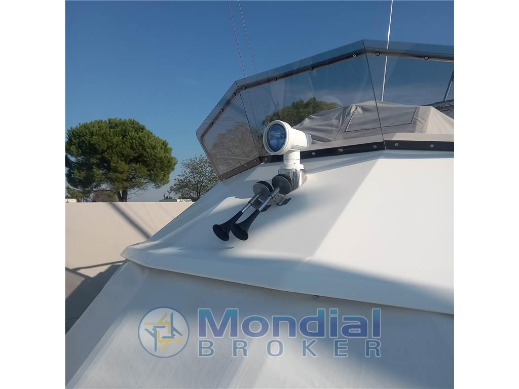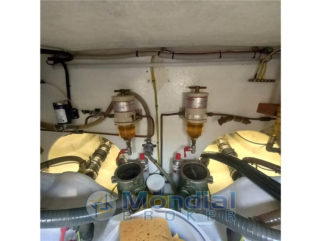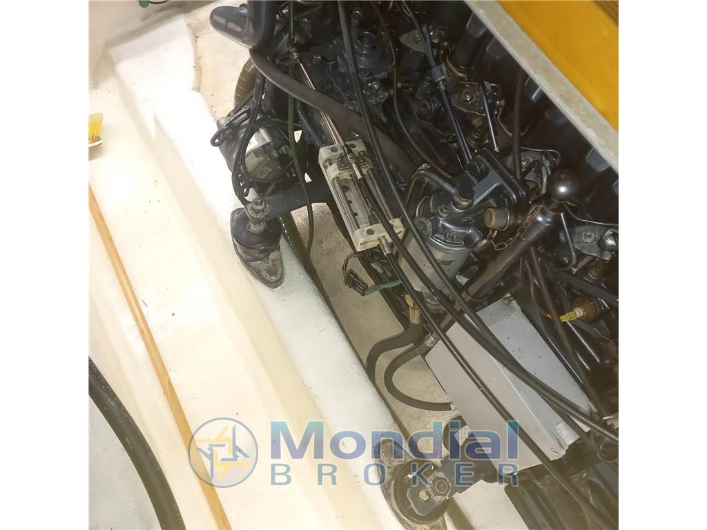Notas internasNotas de la instrumentaciónAngolo barra, Antenna radar, Bussola, Contametri catena, Display, Ecoscandaglio, 2 GPS (Raymarine (2022)), 2 Pilota automatico (Raymarine (2022)), Radio VHF (2019).Notas de armamentoAllestimento tecnico e di coperta:Allarme motore, Ancora, Autogonfiabile, Doccia esterna, Doppia timoneria, Faro orientabile (2022), Flap idraulici (N°2), Gruette per tender, Impianto antincendio, Luci di cortesia, Passerella, Piattaforma (allungata 2017), Pompa di sentina automatica, Pompa di sentina manuale, Pozzetto Teak (Rifatto 2018), Presa 220V banchina, Presa acqua banchina, Raddrizzatore, Ripetitore strumentazione, Rollbar, Salpa Ancore Elettrico, Scaletta da bagno, Sistema Depurazione acque nere, Tavolo Salone Abbattibile, Tender, Tromba. Dotazioni domestiche di bordo: Impianto acque nere, Inverter (2 KW), Pavimento interno in legno (rifatto 2018), Prese interne 12v, Prese interne 220v, Riscaldamento (Webasto Nuovo 2021), Serbatoio Acque Nere, WC marino elettrico (2021). Dotazioni di sicurezza: Riflettore Radar. Intrattenimento: Altoparlanti, Radio AM/FM, Stereo. Cucina ed elettrodomestici: Cucina, Fornello, Frigorifero interno (2019). Tappezzerie: Copripozzetto, Cuscineria completa, Cuscineria di poppa, Cuscineria di prua, Cuscineria fly, Cuscineria Pozzetto, Oscuranti, Teli copri finestra, Telo Copertura Fly, Telo copriconsolle, Telo coprisedile, Tendalino, Zanzariere. |