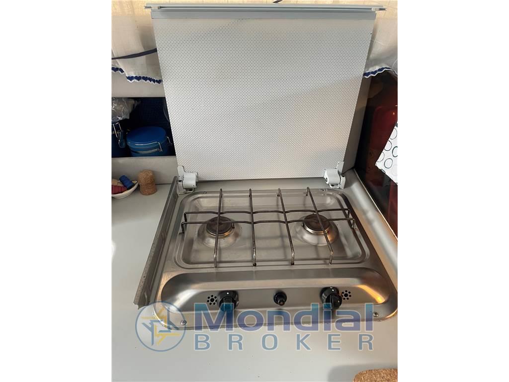 Notas internasNotas de la instrumentaciónBussola, Contamiglia, Ecoscandaglio, Radio VHF.Notas de armamentoAllestimento tecnico e di coperta:Allarme motore, Autogonfiabile, Doccia esterna, Flap idraulici (N°2), Passerella, Piattaforma (teak), Pompa di sentina automatica, Pompa di sentina manuale, Salpa Ancore Elettrico, Scaletta da bagno. Dotazioni di sicurezza: Dotazioni di sicurezza entro 12 miglia, Zattera di salvataggio (persone). Intrattenimento: Stereo (Hi-Fi). Cucina ed elettrodomestici: Frigorifero interno. Tappezzerie: Cappottina, Tendalino. |