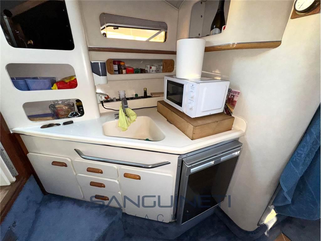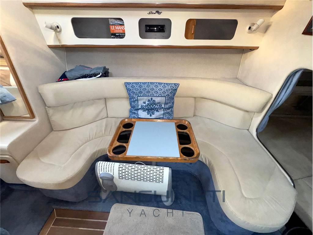 Notas internasGli interni della Sea Ray 300 sono stati curati nei dettagli e si presentano in ottime condizioni. La barca offre un letto matrimoniale a prua, una dinette trasformabile in zona giorno, e una cuccetta doppia a poppa, garantendo comfort per tutta la famiglia o gli ospiti. La cucina è completa con fornello a gas 2 piastre, microonde e frigo. Il bagno separato è dotato di doccia e servizi. TV a schermo piatto con impianto antenna. Le cuscinerie sono complete e ben mantenute, aggiungendo un tocco di eleganza e comfort agli spazi interni.