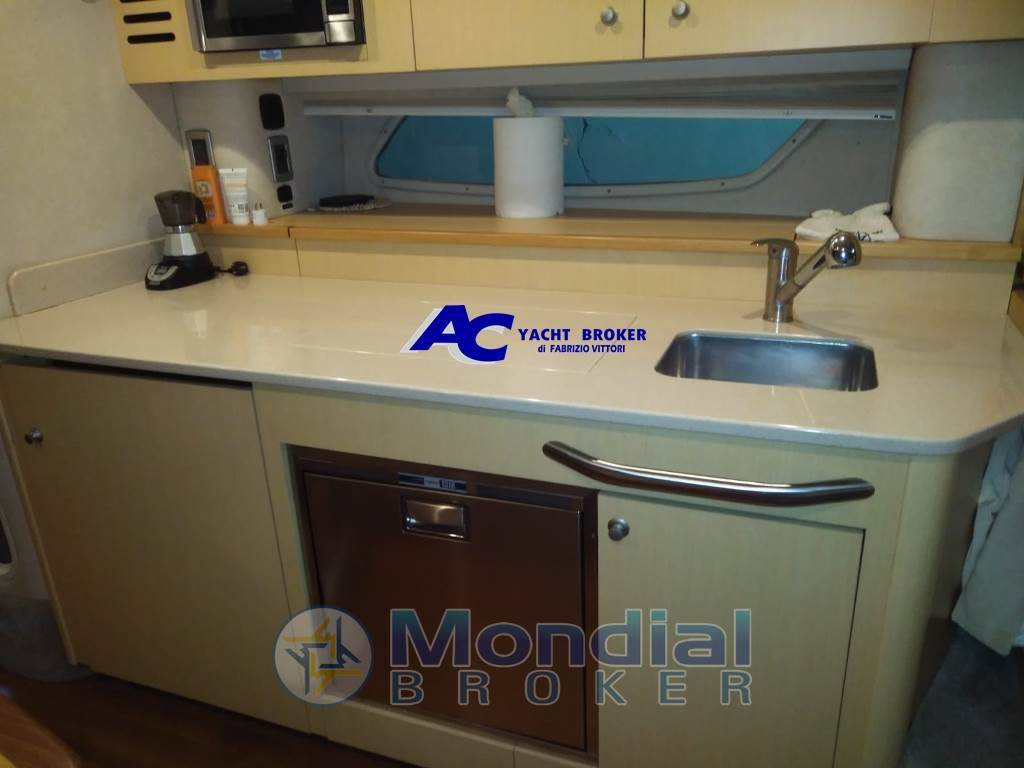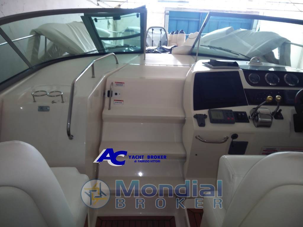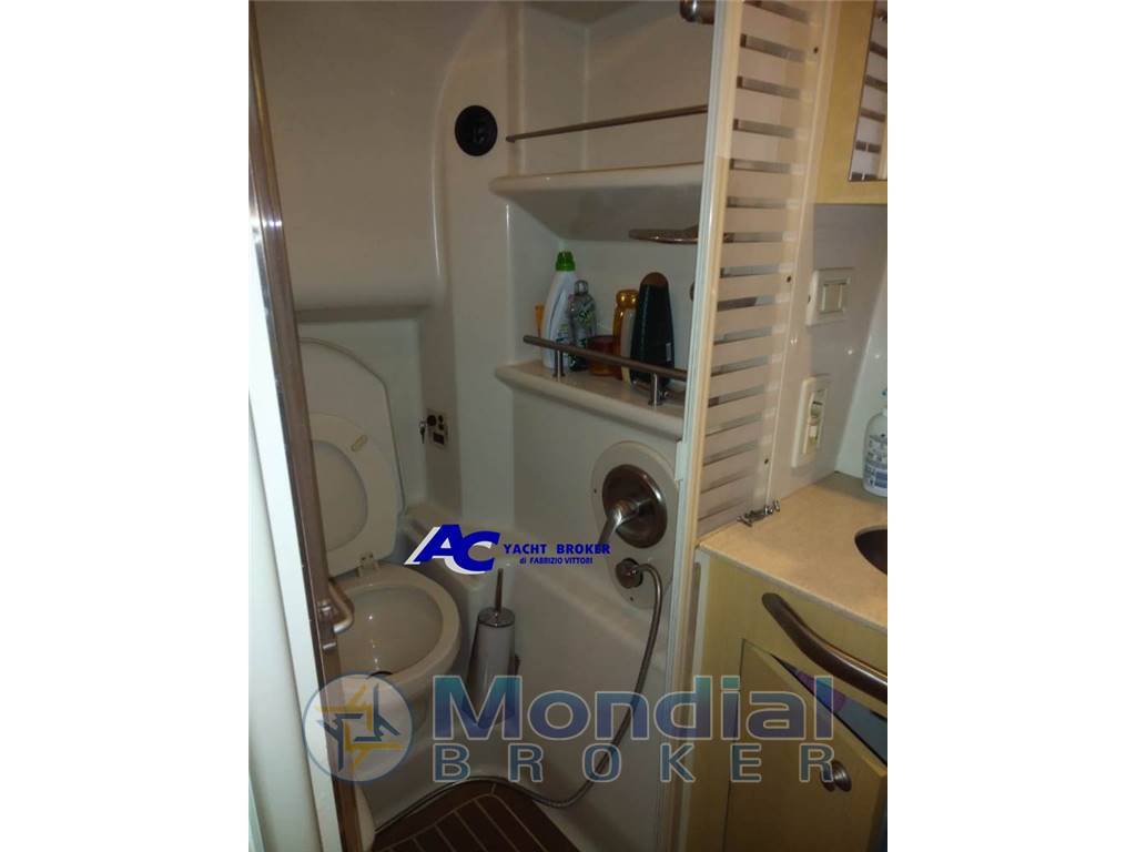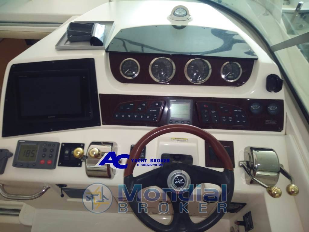Notas internasNotas de la instrumentaciónGps, vhf, ecoscandaglio, pilota automatico, impianto stereo professionaleNotas de armamentoGeneratore da 5 Kw. Kohler, aria condizionata, boiler, autoclave, verricello elettrico + ancora, elica di prua, impianto 220V, caricabatterie, passerella idraulica, t-top maggiorato, pozzetto e pedana di poppa in teak, , cuscineria prendisole di prua, chiusura anteriore in crystal e chiusura totale poppa con telo privacy, passaggio a prua dal pozzetto, divano a scomparsa sulla pedana di poppa, movimentazione sedile guida e sdoppiamento, mobile esterno con frigo-lavello-piastra, cassa acque nere, fari led subacquei, aspirapolvere centralizzato, frigo e congelatore interno, forno |