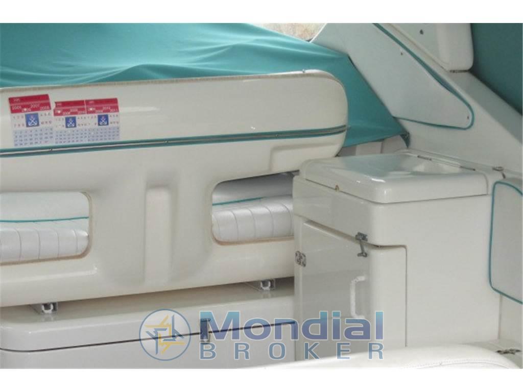 Notas internasNotas de la instrumentaciónBussola, Contamiglia, Ecoscandaglio, GPS, Pilota automatico, Radar, Radio VHF.Notas de armamentoAllestimento tecnico e di coperta:Allarme motore, Autogonfiabile, Doccia esterna, Faro orientabile, Flap idraulici, Impianto antincendio, Indicatori Flaps, Luci di cortesia, Passerella, Piattaforma, Pompa di sentina automatica, Pompa di sentina manuale, Pozzetto Teak, Presa 220V banchina, Raddrizzatore, Rollbar, Salpa Ancore Elettrico, Scaletta da bagno, Tavolo pozzetto, Tromba. Dotazioni domestiche di bordo: Impianto acque nere, Prese interne 12v, Prese interne 220v, WC marino elettrico. Intrattenimento: Altoparlanti, Impianto TV, Radio AM/FM, Stereo, TV. Cucina ed elettrodomestici: Cucina, Fornello, Frigorifero esterno, Frigorifero interno, Microonde, Piastra in vetroceramica. Tappezzerie: Cappottina, Copripozzetto, Copriscafo, Cuscineria completa, Cuscineria di poppa, Cuscineria di prua, Cuscineria Pozzetto, Teli copri finestra, Telo copriconsolle, Tendalino. |