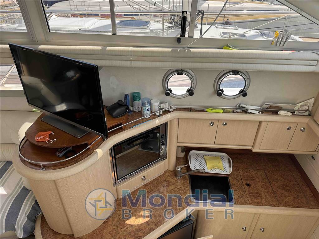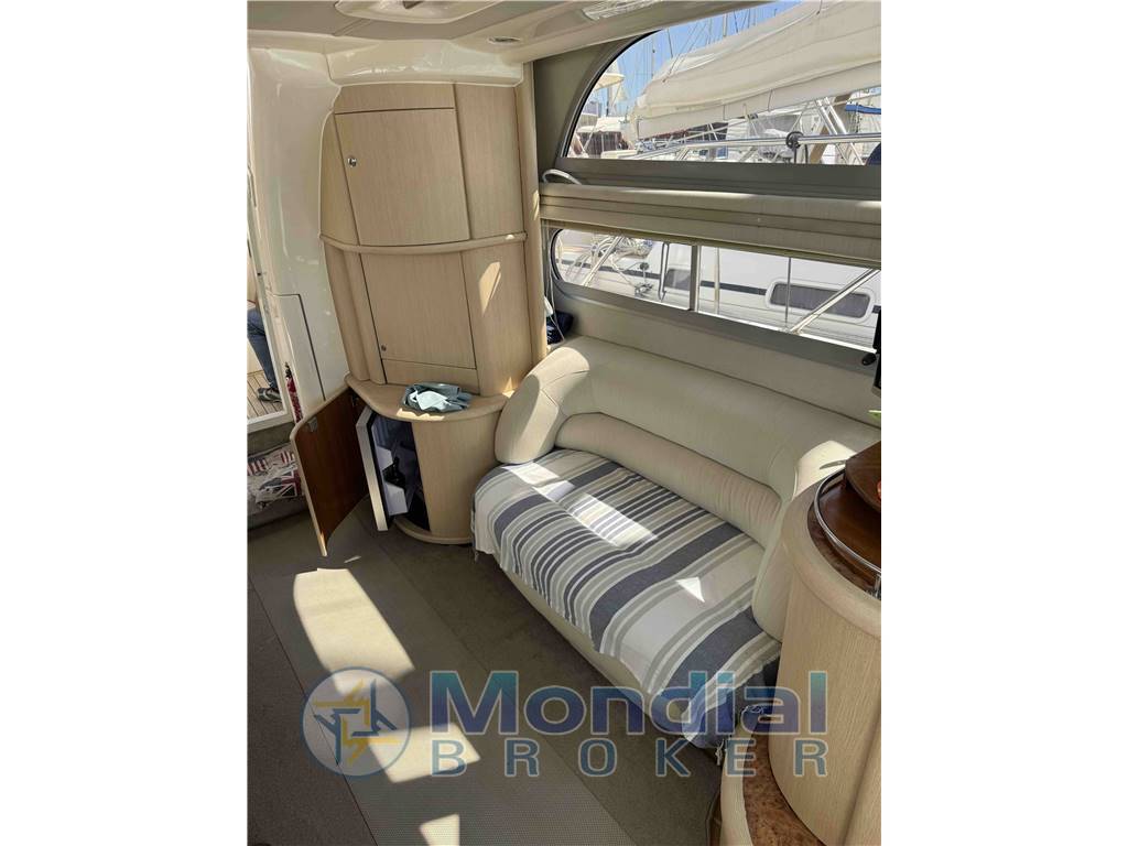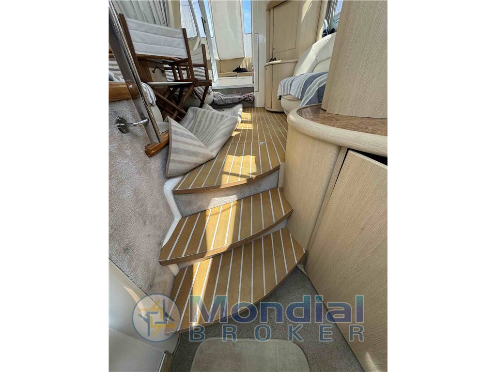 Notas internasAmpia dinette a forma circolare, a sinistra divano e mobiletto con frigo a dritta divano a "C" con tavolino Pavimento in teak sintetico a dritta stazione di pilotaggio scendendo alcuni gradini a sinistra ampia cucina completa a dritta cabina con due letti in piano e locaòe bagnp in prua ampia cabina dell'armatore con bagno con cabina doccia. Notas de la instrumentaciónPilota AutomaticoEco Log Elica di prua Comandi motori Strumentazioni motori VHF GPS/Plotter Radio FM/AM Strumenti su Fly: Pilota Automatico Eco Log Elica di prua Comandi motori Strumentazioni motori VHF GPS/Plotter Radio FM/AM Notas de armamentoPasserella idraulica con doppio comandoDoccia esterna Prendisole a prua Bimini timoneria Seduta in pozzetto Cuscinerie prensisole su fly Verricello elettrico salpancora con catena Passerella idraulica |