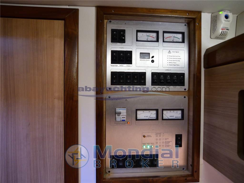Notas internasNotas de la instrumentaciónBussola, Computer di bordo, Contamiglia (Raymarine ST60+), Ecoscandaglio (Raymarine ST60+), Log (Raymarine ST60+), Pilota automatico (Raymarine EV200), Plotter con antenna GPS (Raymarine E80), Radio VHF (Raymarine 54E).Notas de armamentoAllestimento tecnico e di coperta:Ancora, Doccia esterna, Elica di prua - bow thruster, Lavandino nel Pozzetto, Luci di cortesia, Passerella, Piattaforma (Teak), Pompa di sentina elettrica, Pompa di sentina manuale, Porta ingresso, Pozzetto Teak, Presa 220V banchina, Salpa Ancore Elettrico, Scaletta da bagno, Tavolo pozzetto (Abbattibile). Dotazioni domestiche di bordo: Prese interne 12v, Prese interne 220v, WC marino elettrico. Intrattenimento: Altoparlanti. Cucina ed elettrodomestici: Cucina, Fornello, Forno, Frigorifero interno. Tappezzerie: Cuscineria completa, Cuscineria Pozzetto. |