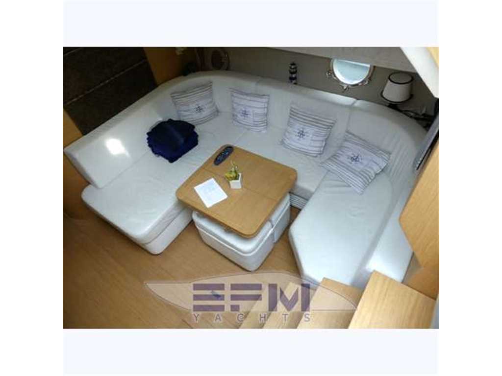 Notas internasTeak cockpit with wet bar complete with sink, fridge, cooker hob, large teak table with a U-shaped sofa, sleeps 8, TV LCD 32 'device with retractable mototizzato, large sundeck. Interior modern light oak floors and clear. VIP cabin forward with island double bed separable into 2 singles and bathroom with access also shower with elegant exterior and lined with Bisazza mosaic - The large dinette and 'consists of a large C-shaped sofa upholstered in fabric puff clear + 2 equal and separable with table cloth and folding convertible in double bed, and contrasted with a full kitchen with wall units, larder unit double sink, refrigerator, stove with 3 burner stove, oven and Microwave wall a LCD TV 26 '- the large and spacious aft cabin with island bed and private bathroom with shower - Notas de la instrumentaciónStrumentazione elettronica Raymarine completa - Ecoscandaglio - GPS Plotter cartografico Raymarine a colori C 80 - Radar Raymarine - VHF Raymarine con Dsc - Pilota automatico Raymarine St 600 - Computer Volvo per gestione Motori - Joistick per manovra IPS - Impianto stereo con cd e dvd - 3 TCV LCD - DVD Caricatore CD in dinette - altoparlanti esterni interni - Radar random 2 kw - Decoder ski -Strumentazione e dotazioni tecniche: VHF, GPS, ecoscandaglio, chart plotter, pilota automatico, salpa ancore elettrico, 1 batteria, caricabatterie Ancora (Ancora elettronica), Angolo barra, Autogonfiabile, Barometro, Bussola, Colorazione speciale, Contamiglia, Ecoscandaglio (Digitale - RAYMARINE DSM 300 -), Elica di prua - bowtruster, Flap idraulici, Garage per tender (Rulli alaggio e winch - tender -), Giubbetti di salvataggio, Hard top, Indicatori Flaps, Interfaccia (GPS ), Joystick, Luci di cortesia, Luci subacquee, Passerella (Idraulica - Besenzoni -), Piattaforma (Rivestita in teak), Plotter con antenna GPS (RAYMARINE C 80), Pompa di sentina automatica, Pompa di sentina elettrica, Pompa di sentina manuale, Pozzetto Teak, Raddrizzatore, Radio VHF (RAYMARINE 240 E - 2 antenne -), Scaletta bagno, Sistema depurazione acque nere, Winch tonneggio di poppa, Zattera di salvataggio Full instrumentation Raymarine electronics - Fishfinder - GPS Chartplotter Raymarine color C 80 - Radar Raymarine - Raymarine VHF with DSC - Raymarine Autopilot St 600 - Computer Management for Volvo Engines - IPS joystick to maneuver - stereo with CD and DVD - 3 TCV LCD - DVD in saloon CD changer - external speakers inside - random 2 kw Radar - Decoder ski - Instrumentation and technical equipment: VHF, GPS, depth sounder, chart plotter, autopilot, electric windlass, 1 battery, charger Still (again electronically), Angle bar, Liferaft, Barometer, Compass, Special coloring, speedometer, depth sounder (Digital - RAYMARINE DSM 300 -), Bow - bowtruster, hydraulic trim tabs, Garage for tender (drum towing and winch - tender - ), life jackets, hard top, trim tabs Indicators, Interface (GPS), Joystick, courtesy lights, underwater lights, gangway (Hydraulic - Besenzoni -), platform (teak), plotter with GPS (Raymarine C 80) , automatic bilge pump, bilge pump, bilge pump, cockpit Teak, rectifier, VHF Radio (Raymarine 240 E - 2 antennas -), swim ladder, sewage treatment system, aft mooring winch, life raft Notas de armamentoGeneratore Onan 5 kw. - Doccia esterna miscelata - Elica di prua - Faro elettrico orientabile - Frigorifero nel pozzetto - Passerella idraulica a scomparsa - Tavolo nel pozzetto e plancetta in teak -Salpancora elettrico con ancora Bruce e 50 mt catena - winches a poppa - WC elettrico con impianto acque nere- Lavello esterno - Luci subacque - Hangar ad apertura elettroidraulica con rulli alaggio tender con winch e scaletta idraulica - kit telecamere sala motore e a poppa - Cuscineria prendisole di poppa e prua come nuove - Chiusura Camper posteriore Beige - cucina, frigo, autoclave, boiler, doccia interna, doccia esterna- Antenna Satellitare TV - Aria condizionata (Riscaldamento) - grill (piano vetroceramica esterno) - Copripozzetto - 2 Cucina (interna ed esterna), Cuscineria completa, Cuscineria Pozzetto, DVD (Dinette e pozzetto), Ice Maker (Esterna), Impianto acque nere, Impianto TV, Microonde, Prese interne 12v, Prese interne 220v, Ricevitore satellitare, Riscaldamento, Stereo (CD e DVD, diffusori cabine - IPOD -), Telecamera (Sala macchine), Tendalino, TV (20'' a scomparsa in pozzetto), 2 WC marino elettrico. Ancora Bruce inox, Angolo barra, Autogonfiabile, Barometro, Bussola, Colorazione speciale, Contamiglia, Ecoscandaglio (Digitale - RAYMARINE DSM 300 -), Elica di prua - bowtruster, Flap intruders Volvo, Garage per tender (Rulli alaggio e winch - tender -), Giubbetti di salvataggio, Hard top, Indicatori Flaps, Interfaccia (GPS ), Joystick, Luci di cortesia, Luci subacquee, Passerella (Idraulica - Besenzoni -), Piattaforma (Rivestita in teak), Plotter con antenna GPS (RAYMARINE C 80), Pompa di sentina automatica, Pompa di sentina elettrica, Pompa di sentina manuale, Pozzetto Teak, Raddrizzatore, Radio VHF (RAYMARINE 240 E - 2 antenne -), Scaletta bagno, Sistema depurazione acque nere, Winch tonneggio di poppa, Zattera di salvataggio. Generator Onan 5 kw - Outdoor Shower mixed - Bow thruster - Lighthouse Electric Adjustable - Refrigerator in the cockpit - hydraulic gangway - Table in the cockpit and teak swim platform Electric windlass with Bruce anchor and 50 m chain - winches at the stern - electric toilet with sewage system-sink outside - Scuba lights - Hangar opening pedal with roller hauling tender with hydraulic winch and ladder - camera kit engine room and aft - aft sunbathing and bow as new - Closing Camper Rear Beige - kitchen, refrigerator, water pump, water heater, indoor shower, outdoor shower-Antenna Satellite TV - Air conditioning (heating) - grill (hob external) - cockpit cover - 2 kitchen (indoor and outdoor) , cushions, cockpit cushions, DVD (saloon and cockpit), Ice Maker (External), black water system, Cable TV, Microwave, interior sockets 12v, 220v interior sockets, satellite 