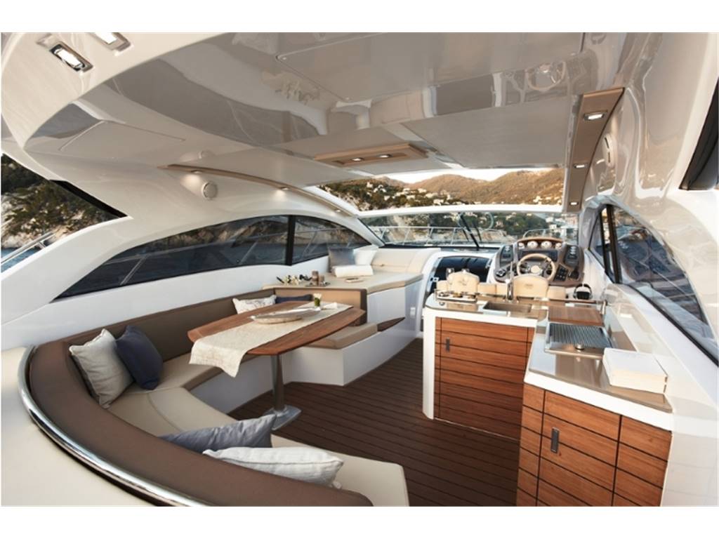 Teak cockpit with wet bar complete with sink, fridge, icemaker, cooker hob, large teak table with a U-shaped sofa, sleeps 8, TV LCD 20 'device with retractable mototizzato, large sundeck. Interior modern light oak floors and clear. VIP cabin forward with island double bed separable into 2 singles and bathroom with access also shower with elegant exterior and lined with Bisazza mosaic - The large dinette and 'consists of a large C-shaped sofa upholstered in fabric puff clear + 2 equal and separable with table cloth and folding convertible in double bed, and contrasted with a full kitchen with wall units, larder unit double sink, refrigerator, stove with 3 burner stove, oven and Microwave wall a LCD TV - the large and spacious aft cabin with island bed and private bathroom with shower -