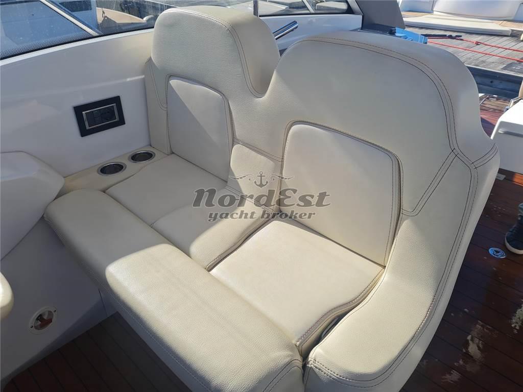 Notas internasAria condizionata: Presente Interni: DESCRIZIONE INTERNI N.2 cabine e dinette trasformabile. Servizio con box doccia separato. ----- Mobile bar Impianto stereo Impianto TV Tv Bagni: 1 Cabine: 2 Posti letto: 4+2 Cucina Forno: Presente Frigorifero Ice maker Piano Cottura: 1 Notas de la instrumentaciónControl Flaps Bennet, luci RGB sotto plancettaPilota automatico: Raymarine Ecoscandaglio: Raymarine C120 GPS: Raymarine C120 Plancetta: in teak Vhf: Presente Notas de armamentoDESCRIZIONE IMPIANTISTICA Impianto stereo professionale con 12 casse. Casse audio water proof anche a prua incorporate nel prendisole. Doccia a prua calda e fredda, cuscineria esterna rifanna nuova 2021 colori ultimo modello, tendalino di poppa nuovo 2022, luci led RGB in tutto il pozzetto e sotto top cucina esterna. Grill elettrico esterno. Placche luci Bticino Axolute, ice-maker esterno. Predisposizione attacco BBQ su passerella. ----- Impianto antincendio Contacatena Copertura pozzetto Cuscineria prendisole Doccia esterna Elica di manovra a prua: Presente Flaps Frigorifero esterno Luci di cortesia Luci subacquee |