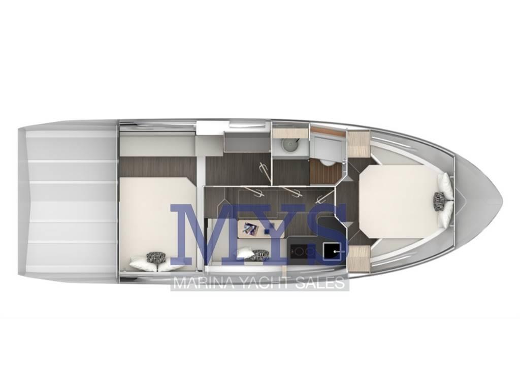 Notas internasCABINA POPPA: Letto matrimoniale con materasso e gavoni sottostanti per stivaggio bagagli - testata letto tappezzata con portaoggetti - cassapanca in noce - ampio armadio guardaroba in noce - pavimento in moquette - oblò in acciaio inox - tende in tessuto - luci di lettura - faretti alogeni - presa corrente. BAGNO: WC marino - doccia con carabottino in teak, saliscendi, miscelatore e diffusore - porta doccia in plexiglass trasparente - mobile lavello in noce con top laccato - lavello in ceramica con miscelatore - pensile con ante a specchio - tenda veneziana in legno - oblò in acciaio inox - doppio ingresso da cabina poppa e da dinette - presa corrente - faretti alogeni stagni - accessori bagno. Notas de la instrumentaciónVANO MOTORI: nr.2 Serbatoi carburante da 230 l cad. - sonda carburante dialogante con sistema EVC Volvo - valvole intercettazione carburante - filtri con separatore acqua/carburante - flaps idraulici - impianto antincendio: estintore ad attivazione manuale/automaticaIMPIANTO IDRAULICO: Serbatoio acqua da 286 l - autoclave con filtro - boiler da 20 l motori/elettrico 230 V - pompe di sentina elettrica ad azionamento manuale/ automatico in dinette e vano motori. IMPIANTO ACQUE NERE: Serbatoio da 110 l - pompa di scarico - possibilità di svuotamento del serbatoio tramite suzione da banchina - carico dei WC con acqua dolce . IMPIANTO ELETTRICO: Gruppo 3 batterie 100 Ah/12V (motori e servizi) - carica batterie automatico - presa banchina 230V - staccabatterie elettronici e manuali di emergenza - impianto di bordo 12 V. Notas de armamentoCOPERTA: Musone di prua - verricello salpancora elettrico - ancora 15 Kg e catena acciaio zincato calibro 8mm 50m - cavetto di sicurezza ancora - pulpito in acciaio inox con gradino in teak massello - presa per svuotamento serbatoio acque nere da banchina - bitte a prua, centro barca e poppa in acciaio inox - prendisole di prua con tientibene in acciaio inox - doppio tergicristallo elettrico con lavavetri.POZZETTO: Parabrezza frontale e laterale in cristallo - hard top con parte mobile in vetroresina e movimentazione elettrica - luci di via e di fonda - mobile pozzetto completo di top in cristallo, lavello in acciaio inox con miscelatore e ante in teak - luci di cortesia - vano stivaggio con chiusura a compressione e ispezione sala macchine - zona centrale con ampio divano - chaise longue - cuscineria completa, anti UV e resistente all’acqua - tavolo asportabile con top in teak - luci sala macchine - faretti alogeni stagni hard top - porta scorrevole ingresso dinette - casse stereo. PLANCETTA: rivestimento in teak - scaletta bagno in acciaio inox a scomparsa - luci di cortesia - doccia caldo/ freddo. CONSOLLE: Pannello cruscotto tridimensionale verniciato champagne - bussola - strumentazione motori completa di: contagiri analogico con display digitale, pressione olio, indicatori temperatura acqua, voltmetri, allarme acustico avaria per motori, indicatore livello carburante, indicatori trim piedi motori , pulsanti utenze elettriche di coperta con simbolo retroilluminato - comando motori elettronici Volvo Penta - volante coordinato con la cuscineria e regolabile in altezza - sedile guida avvolgente con ribaltina- comando flaps elettroidraulici - comando regolazione trim piede motore - comando manuale impianto antincendio con tirettti intercettazione carburante- presa 12 V. |