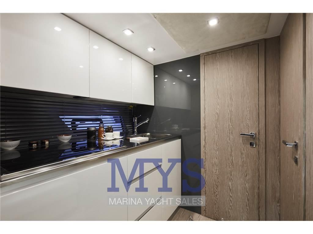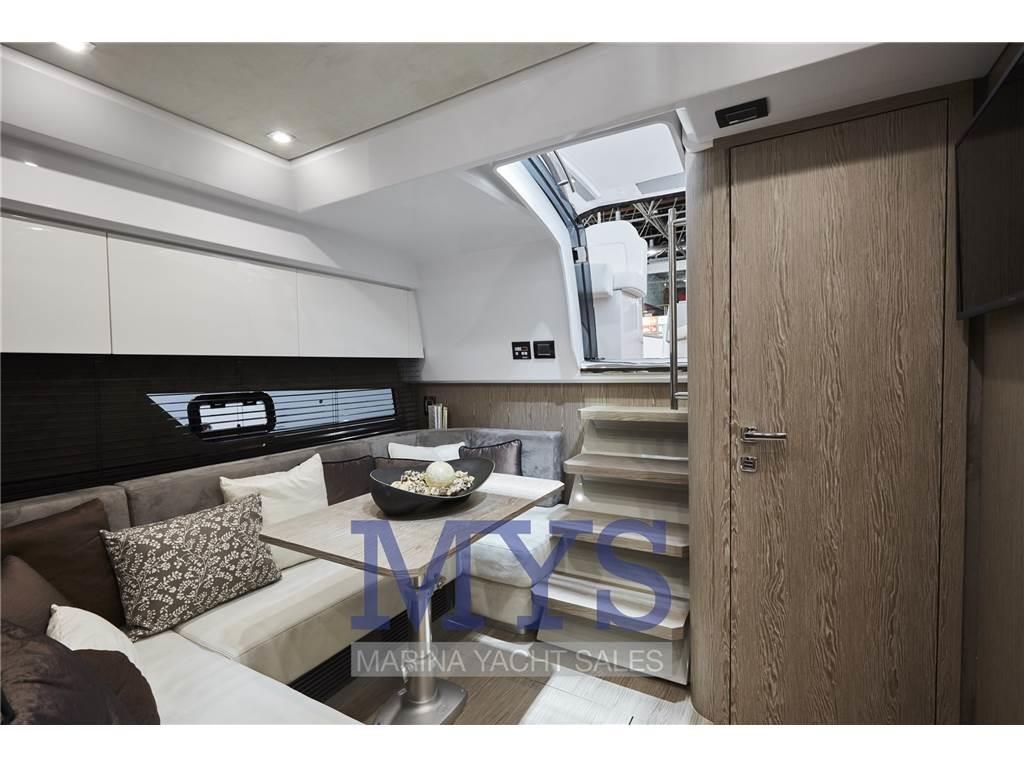 Notas internasBAGNO PRUA: WC elettrico - doccetta bidet - doccia con carabottino in teak, saliscendi, diffusore e miscelatore - tenda paraspruzzi a scomparsa - mobile lavello in noce con top laccato - lavello in ceramica con miscelatore - pensili con ante a specchio - pavimento in rovere - tende veneziane in legno - oblò in acciaio inox - doppio ingresso da cabina prua e da dinette - presa corrente - faretti alogeni stagni - accessori bagno. CABINA POPPA: Letto matrimoniale con gavone sottostante, materasso, guanciali, copriletto - giroletto e testata tappezzati - armadi guardaroba in noce - mobile laterale in noce con top tappezzato - pavimento in moquette - finestre panoramiche con oblò in acciaio inox - luci di lettura - faretti alogeni - prese corrente - tende veneziane in legno - accesso esclusivo al bagno di poppa. BAGNO POPPA: WC elettrico - doccetta bidet - doccia con carabottino in teak, saliscendi, diffusore e miscelatore - porta doccia in plexiglass - mobile lavello in noce con top laccato, lavello in ceramica con miscelatore - pensili con ante a specchio - pavimento in rovere - tende veneziane in legno - oblò in acciaio inox - presa corrente - faretti alogeni stagni - accessori bagno . Notas de la instrumentaciónVANO MOTORI: Due serbatoi per carburante da 445 l cad. - doppia sonda carburante dialogante con sistema EVC - impianto di compenso - valvole di intercettazione carburante - filtri con separatore acqua/carburante - flaps idraulici - estintore ad attivazione manuale e automatica.IMPIANTO IDRAULICO: Serbatoio acqua da 277 l - autoclave con filtro - boiler da 20 l elettrico 230V - impianto per distribuzione acqua direttamente dalla banchina - pompe di sentina elettriche ad azionamento manuale/automatico in dinette e vano motori. IMPIANTO ACQUE NERE: Serbatoio da 110 l - pompa di scarico - possibilità di svuotamento del serbatoio tramite suzione da banchina - carico WC con acqua dolce. IMPIANTO ELETTRICO: Gruppo 4 batterie per motori 100 Ah / 12 V - Gruppo 4 batterie per servizi 100 Ah/12 V - Nr 01 batteria 100 Ah/ 12 V per generatore - caricabatterie automatico - presa banchina 230 V- staccabatterie elettronici con azionamento manuale in caso d’emergenza - converter - generatore 6,1 Kw - impianto di bordo a 24V. Notas de armamentoHANGAR: Portellone con apertura elettrica - alloggiamento per passerella oleodinamica - zona tecnica stivaggio dotazioni - pavimento sollevabile manualmente.COPERTA: Musone di prua - verricello salpancora elettrico - ancora 15 Kg e catena acciaio zincato calibro 8mm 50m - cavetto di sicurezza ancora - pulpito in acciaio inox con gradino in teak massello e anelli porta parabordi - attacco acqua alta pressione - presa per svuotamento serbatoio acque nere da banchina - bitte e passacime in acciaio inox a prua, centro barca e poppa - prendisole di prua con tientibene in acciaio inox e porta bicchieri - doppio tergicristallo elettrico con lavavetri - passavanti laterali con tientibene e gradini teak lato destro. POZZETTO: Rivestimento in teak - parabrezza frontale e laterali in cristallo con finestra scorrevole lato pilota - hard top con parte mobile in vetroresina e movimentazione elettrica - albero segnali con: tromba, luci di via, luce di fonda e portabandiera - mobile pozzetto completo di top in cristallo, lavello in acciaio inox con miscelatore, tagliere e ante in teak, frigorifero a cassetto 65 l - zona centrale con ampio divano - cuscineria completa, anti UV e resistente all’acqua - tavolo telescopico con top raddoppiabile in teak con porta bicchieri e tientibenehangar con apertura elettrica, alloggiamento zattera, tientibene in acciaio inox e cuscino prendisole poppa - accesso laterale sala macchine - luci di cortesia - faretti alogeni stagni hard top - porta scorrevole ingresso dinette - casse stereo. PLANCETTA: Rivestimento in teak - scaletta bagno in acciaio inox a scomparsa - luci di cortesia - bitte a scomparsa ormeggio tender - doccetta caldo/freddo. CONSOLLE: Pannello cruscotto tridimensionale verniciato champagne con palpebra parasole tappezzata- bussola - strumentazione motori completa di: contagiri analogico con display digitale, pressione olio, indicatori temperatura acqua, voltmetri, allarme acustico avaria motori, indicatore livelli carburante |
