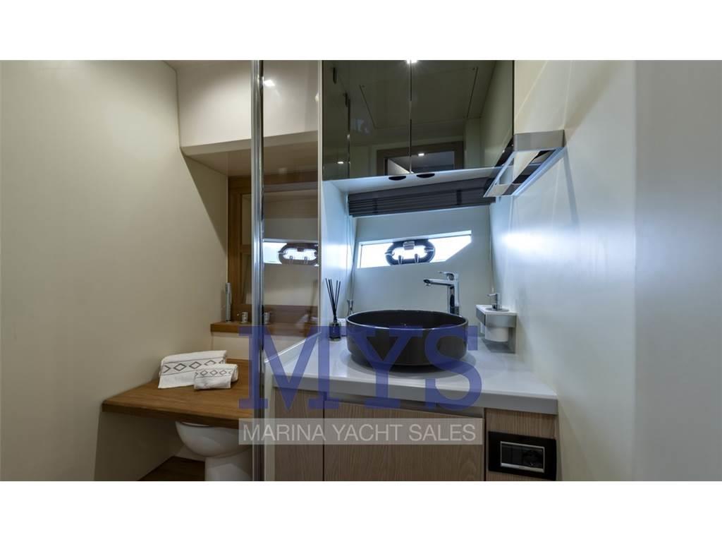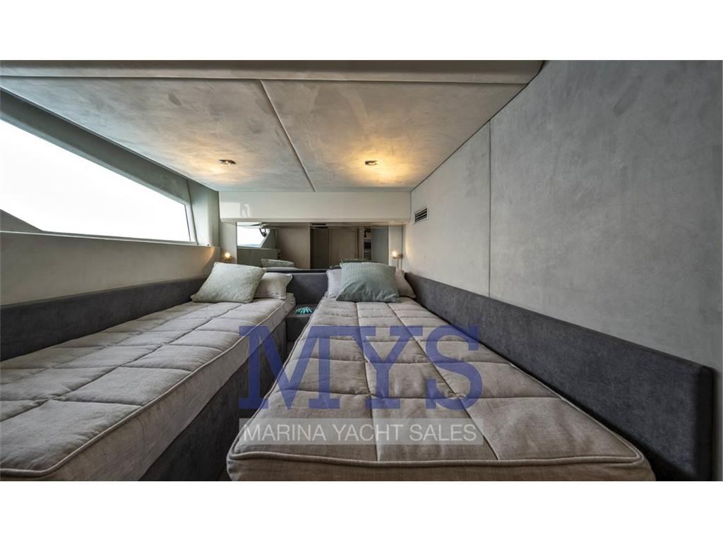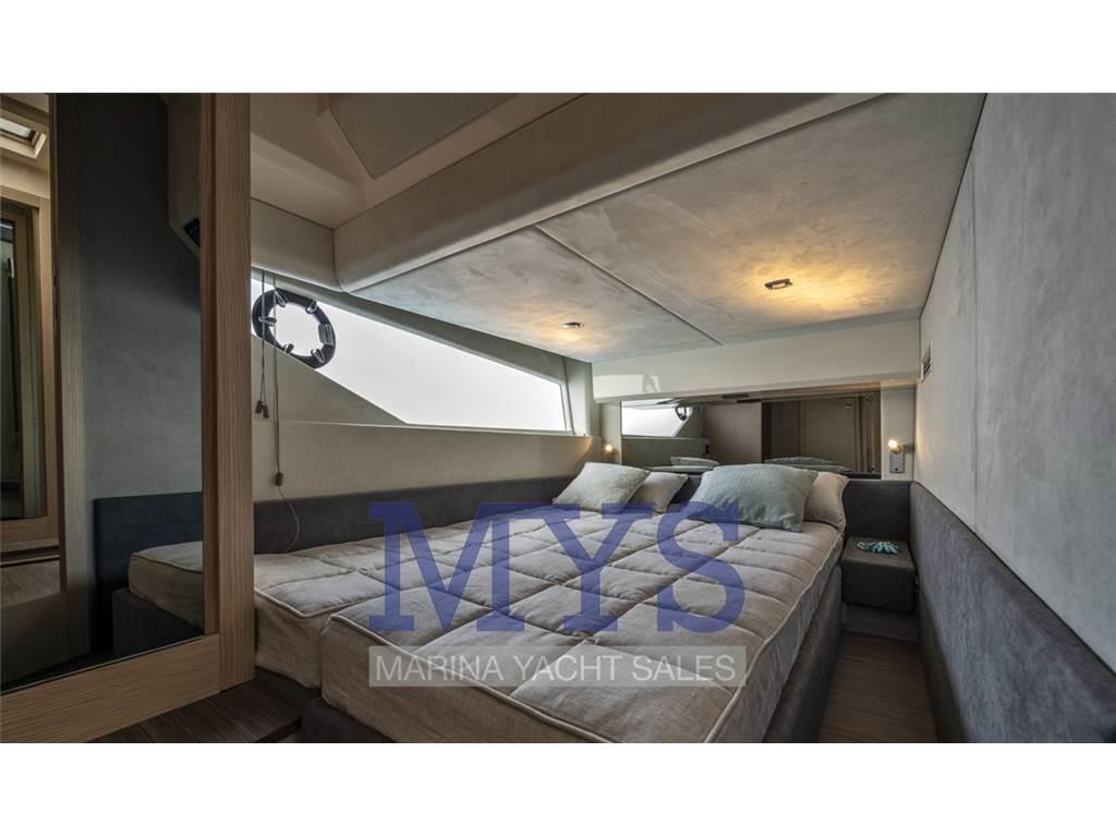 Notas internasParabrezza frontale e laterali in cristallo con finestrature laterali con movimentazione elettrica - mobile in legno con vani per predisposizione tv a scomparsa e lavastoviglie -divano salone a L in similpelle con gavoni sottostanti - tavolo telescopico con top radoppiabile in legno e pannelli tappezzati -audio Fusion -pavimento in moquette - cornici tappezzate per contenimento tende -tende veneziane in legno - faretti Led -tenda in tessuto porta ingresso salone - scala di accesso sottocoperta con gradini in moquette -corrimano in acciaio inox CONSOLLE SALONE Pannello cruscotto tridimensionale con palpebra tappezzata in pelle -bussola - strumentazione motori completa di: indicatori digitali per la visualizzazione dei parametri motori (contagiri, pressione olio, temperatura acqua, allarmi acustici avaria motori, livello carburante) - comandi retroilluminati apparecchiature di bordo -comando bileva motori elettronici Volvo Penta -sistema di comando joystick - comando flaps elettroidraulici -comando salpancora -comando faretto rosso di cortesia navigazione notturna -comando manuale impianto antincendio - presa USB -GPS Garmin GPSMAP 8412 12" - volante in pelle - panca guida con seduta regolabile in lunghezza -tientibene in acciaio inox -pavimento in moquette -poggiapiedi in legno CUCINA Mobile cucina in legno e piano in acciaio inox con lavello integrato e miscelatore, piastra 3 fuochi induzione -forno combinato con funzione microonde -frigorifero -pensile in legno, cappa aspirazione -finestra scorrevole con movimentazione elettrica -tenda veneziana in legno -faretti Led -presa di corrente -pavimento in legno CABINA ARMATORE (PRUA) Letto matrimoniale con piano a ribalta e gavone sottostante, materasso, guanciali, copriletto -cassettiera sottoletto in legno -giroletto e fasce laterali tappezzate -testata con cornice e pannelli tappezzati -armadi guardaroba in legno con ante a specchio -pavimento in moquette -luci lettura -faretti Led -presa corrente -oblò Notas de la instrumentaciónVANO MOTORI2 Serbatoi carburante da 636 l cad. - doppia sonda carburante dialogante con sistema EVC Volvo Impianto di compenso -tiretti manuali intercettazione carburante -filtri VOLVO con separatore acqua/carburante -flaps idraulici Impianto antincendio con attivazione automatica e manuale da console. IMPIANTO IDRAULICO Serbatoio acqua in polietilene capacità totale 560 l - autoclave con filtro -boiler da 60 l elettrico 230 V - pompe di sentina elettriche ad azionamento manuale/automatico. IMPIANTO ACQUE GRIGIE Serbatoio in polietilene 160 l -svuotamento del serbatoio tramite pompa di scarico con modalità manuale IMPIANTO ELETTRICO Gruppo 4 batterie per motori 100 Ah / 12 V -gruppo 4 batterie per servizi 100 Ah / 12 V - Batteria per generatore 100 Ah / 12 V -caricabatterie automatico - presa corrente banchina 230 V -staccabatterie elettronici con azionamento manuale in caso d’emergenza -converter - generatore 6,1 Kw -impianto di bordo a 24 V Notas de armamentoCOPERTAMusone di prua -verricello salpancora elettrico - ancora 20 Kg e catena acciaio zincato calibro 10 mm 50 m - cavetto di sicurezza ancora -passacime in acciaio inox - pulpito in acciaio inox -imbarco serbatoio carburante a dritta e lato sinistro -imbarco serbatoio acqua dolce -presa per svuotamento serbatoio acque nere da banchina -bitte a prua, centro barca e poppa in acciaio inox -passacime di poppa in acciaio inox - ampio prendisole di prua -vano contenitore a prua con portello in vetroresina -doccetta caldo/freddo -doppio tergicristallo elettrico con lavavetri PLANCETTA Rivestimento plancetta in teak -scaletta bagno in acciaio inox a scomparsa - bitte a scomparsa ormeggio tender POZZETTO Rivestimento in teak -divano con deposito per zattera sotto il sedile -tavolo con top raddoppiabile in teak - comandi per luci di cortesia pozzetto - porta scorrevole in vetro con accesso dinette e finestra elettrica - casse stereo - faretti Led -presa banchina 230 V - attacco alta pressione -doccetta caldo/freddo -accesso sala motore - cancelletti di poppa in acciaio inox |