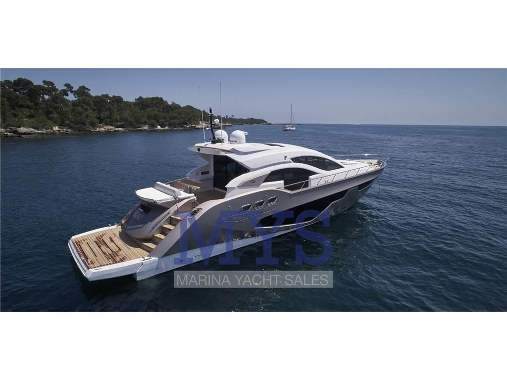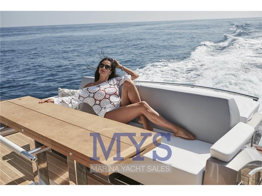 Notas de armamentoCOPERTA: Musone in acciaio inox - verricello salpancora elettrico con barbotin e ferma catena - ancora 50 kg e catena acciaio zincato calibro 12 mm 70m - Pulpito e bottaccio in acciaio inox - bitte a prua, centralli e poppa in acciaio inox - tergicristalli elettrici con lavavetri - doccetta caldo/freddo a scomparsa - attacco acqua alta pressione - presa per svuotamento serbatoio acque nere da banchina - trincarini di prua in teak - prendisole di prua con gavone sottostante e tientibene in acciaio inox - doppia chaise longue e poggiatesta a scomparsa - passo uomo - gradini in teak. POZZETTO: Rivestimento in teak - albero segnali completo di: luci navigazione, tromba, faro orientabile - porta scorrevole ingresso al salone in cristallo temperato a tre ante apribile a destra e sinistra - garage per alloggiamento tender con rulli alaggio e verricello elettrico - portellone garage ad apertura elettroidraulica - divano pozzetto trasformabile in prendisole - tavolo con top in teak - nr. 02 alloggiamenti zattera di salvataggio - portello accesso cabina marinaio - portello accesso sala macchine - mobili in teak con ante laccate e vani portaoggetti - pannello di comando sistemi idraulici ed elettrici - verricelli di tonneggio - faretti e luci di cortesia a led - altoparlanti - doppia presa banchina ed imbarco acqua alta pressione - doccetta bagno caldo/freddo. PLANCETTA: Rivestimento in teak - movimentazione idraulica - scaletta bagno in acciaio inox a scomparsa - bitte a scomparsa ormeggio tender.