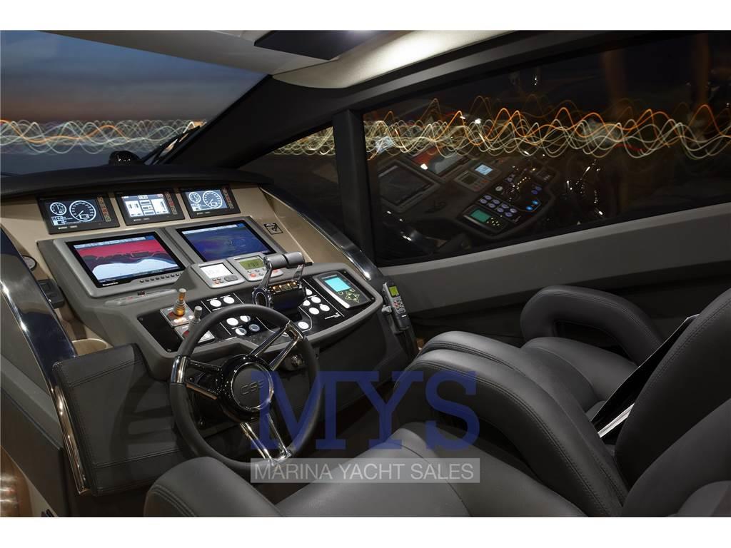 Notas de la instrumentaciónIMPIANTO ELETTRICO: Gruppo 4 batterie per motori 220 Ah / 12 V - gruppo 8 batterie per servizi 210 Ah / 12 V - batteria per generatore 140 Ah /12 V - gruppo 2 batterie elica di prua e verricello 220 Ah / 12 V - caricabatterie motori, elica e verricello - caricabatterie servizi - caricabatterie generatore - inverter - converter - generatore 16 Kw - staccabatterie elettronici con azionamento manuale in caso d’emergenza - doppia presa corrente banchina 230 V IMPIANTO POMPE DI SENTINA: N.2 pompe di sentina elettriche (primaria e secondaria) 24V per locale sala macchine con azionamento automatico e manuale dalla consolle + N.1 pompa di sentina di emergenza attivabile dal quadro di sala macchine - N.2 pompa di sentina elettrica 24V per zona dinette e alloggi con azionamento automatico e manuale dalla consolle. IMPIANTO ANTINCENDIO: Sistema automatico/manuale con estintore ad agente estinguente antiasfissiante FM200 in sala macchine - pannello di controllo in consolle con sistema elettronico che in caso di azionamento dell’estintore arresta immediatamente i motori, il generatore ed i ventilatori sala macchine - tiretto in consolle per azionamento manuale dell’impianto in caso di emergenza. IMPIANTO ALIMENTAZIONE COMBUSTIBILE: N.1 serbatoio strutturale in VTR integrato nelle strutture scafo con capacità 3200l - elettrovalvole di intercettazione sulle mandate carburante - indicatore di livello in consolle - doppio imbarco carburante DX e SX dai camminamenti laterali in coperta. SALA MACCHINE: Accesso da portello centrale in pozzetto con scala inox removibile o da portello/scala risalita plancetta di poppa - pagliolato centrale in alluminio con ispezioni per le sentine - generatore Kw 19 - kit batterie servizi e motore - estintore antincendio - gruppo centrale aria condizionata da 72.000 BTU - pompa sistemi oleodinamici di bordo - motori correttori d’assetto - pompa autoclave - filtri antisalsedine - prese aria motori - ventilatori/estrattori aria - insonorizzazione