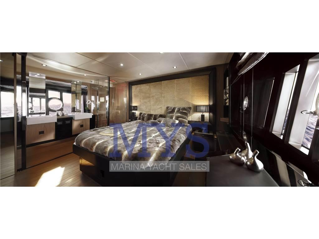 Notas internasCABINA ARMATORE: Letto matrimoniale con vano sottostante, materasso, guanciali e copriletto - cassettiera sottoletto con frontale in pelle - armadi guardaroba in noce con - comodini con portagioie - testata letto in pelle e pannelli centrali in tessuto - luci lettura - faretti a led - luci ambience sotto finestrature - tende veneziane in legno - finestratura panoramica laterale con oblò in acciaio inox - mobiletto vanity con pouff - pavimento in moquette - accesso diretto al bagno riservato - aria condizionata.CABINA VIP: Letto matrimoniale con vano sottostante, materasso, guanciali e copriletti - cassettiera sottoletto con frontale in pelle - armadi guardaroba in noce - comodini con portagioie - luci di lettura - specchio - oblò in acciaio inox - faretti a led - luci ambience sotto finestrature - tende veneziane in legno - pavimento in moquette - accesso diretto al bagno riservato - aria condizionata - passouomo apribile. CABINA VIP: Letto matrimoniale con vano sottostante, materasso, guanciali e copriletti - cassettiera sottoletto con frontale in pelle - armadi guardaroba in noce - comodini con portagioie - luci di lettura - specchio - oblò in acciaio inox - faretti a led - luci ambience sotto finestrature - tende veneziane in legno CABINA OSPITI: 2 letti singoli trasformabili in letto matrimoniale, con gavoni sottostanti, materassi, guanciali e copriletti - comodino con portagioie - armadio in noce - mobiletto in noce con vano a giorno - oblò in acciaio inox - tende veneziane in legno - accesso a bagno - luci lettura - faretti a led - luci ambience sotto finestrature - aria condizionata - pavimento in moquette.CABINA MARINAIO: Doppio accesso indipendente - scala di discesa in acciaio inox - divano trasformabile in due letti singoli, materassi, guanciali e copriletti - armadio guardaroba in noce - vano portaoggetti - pavimento in moquette - Accesso e ispezione impianto alimentazione carburante - luce lettura - bagno separato con mobile in noce