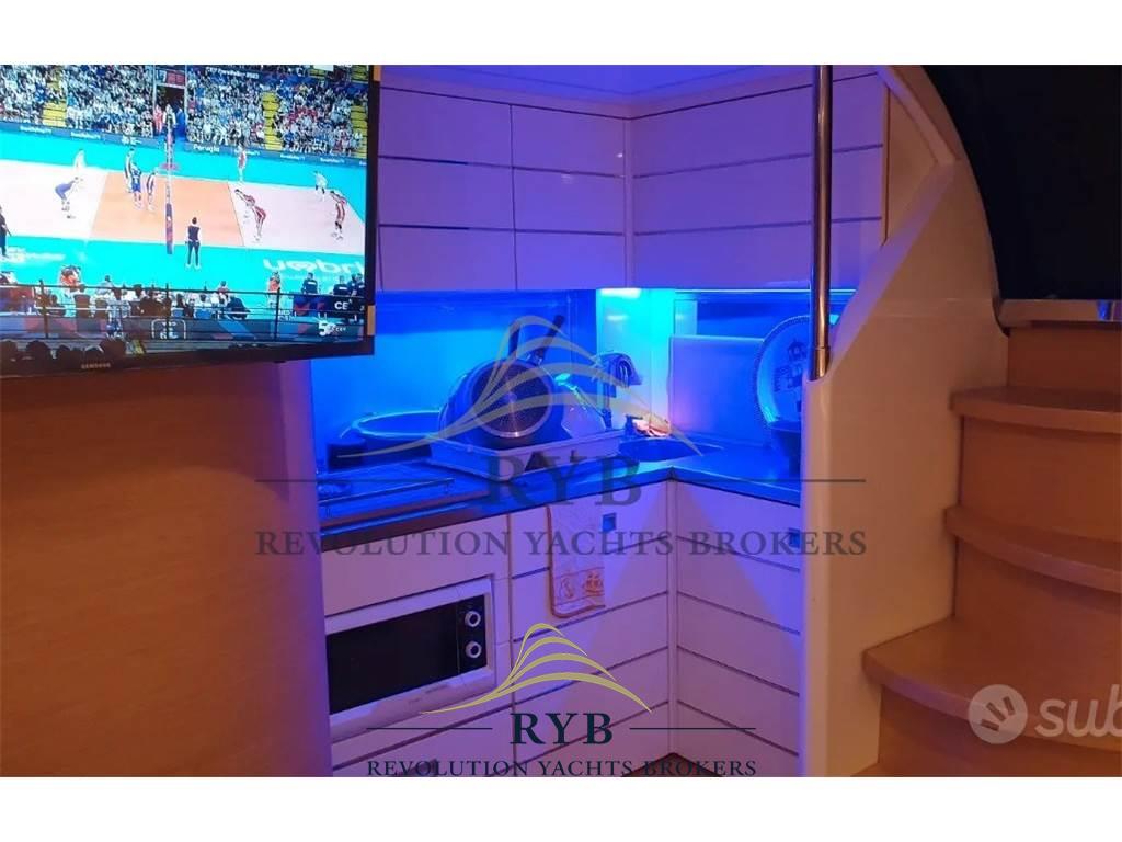 Notas internasNotas de la instrumentaciónBussola, Comando motori elettronico, Contametri catena, Ecoscandaglio (RAYMARINE), GPS, Plotter (RAYMARINE), Radio VHF (CON SISTEMA GPS).Notas de armamentoAllestimento tecnico e di coperta:Ancora, Elica di prua - bow thruster, Flap elettrici, Garage per tender, Luci di cortesia (LED), Luci subacquee (POPPA E LATERALI), Passerella (TEAK BESENZONI A SCOMPARSA), Pozzetto Teak, Presa 220V banchina, Salpa Ancore Elettrico, Scaletta da bagno, Tavolo pozzetto, Tavolo Salone Abbattibile. Dotazioni domestiche di bordo: Aria condizionata, Clima reversibile (IN TUTTI I LOCALI), Pavimento interno in legno, Prese interne 12v, Prese interne 220v. Intrattenimento: Altoparlanti (INTERNI/ESTERNI), Antenna Satellitare TV, Impianto TV, Stereo, TV (IN TUTTI GLI AMBIENTI). Cucina ed elettrodomestici: Cucina, Forno, Frigorifero esterno, Frigorifero interno (35 LT). Tappezzerie: Tendalino. |