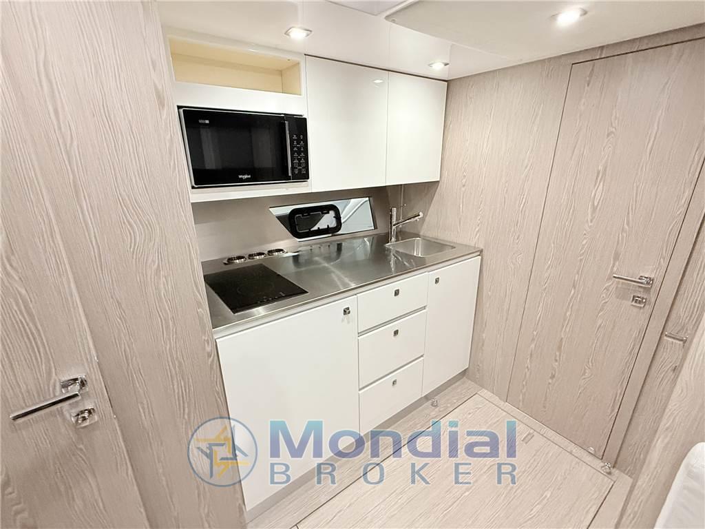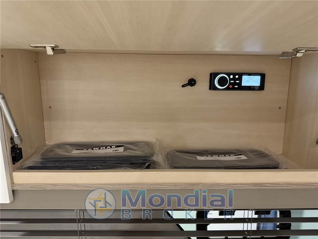 Notas de armamentoAltoparlanti, Aria condizionata, Boiler, Clima reversibile (cabina e pozzetto), Cucina, Cuscineria di poppa, Cuscineria di prua, Cuscineria Pozzetto, Frigorifero esterno, Frigorifero interno, Impianto acque nere, Impianto TV, Microonde, Pavimento interno in legno, Piastra in vetroceramica, Prese interne 12v, Prese interne 220v, Radio AM/FM, Serbatoio Acque Nere, Stereo, Teli copri finestra, TV, 2 WC marino elettrico