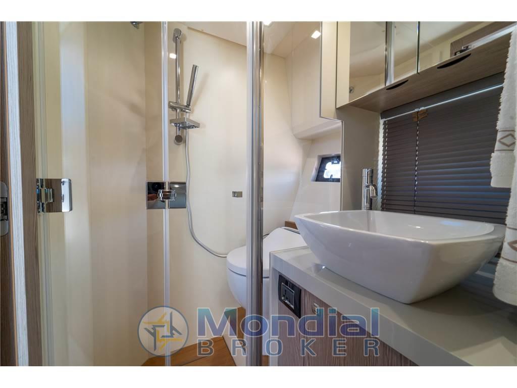 Dotazioni domestiche di bordo: Aria condizionata, BBQ/ Grill, Impianto acque nere, Pavimento interno in legno, Prese interne 12v, Prese interne 220v, WC marino elettrico.