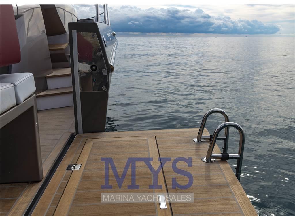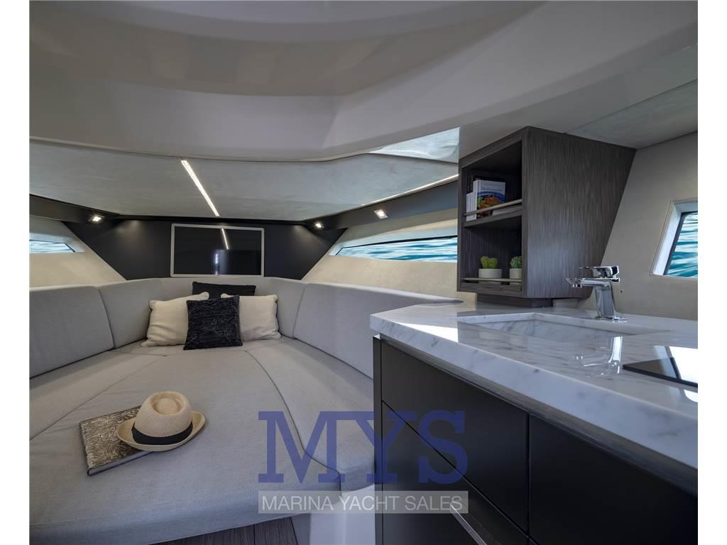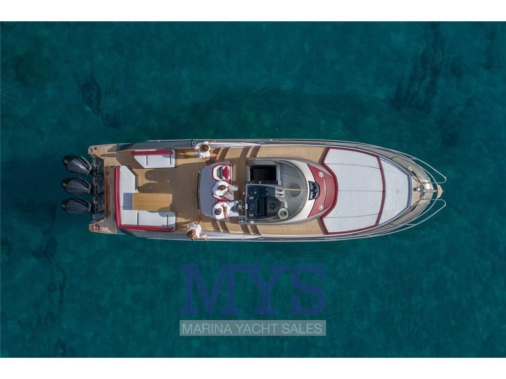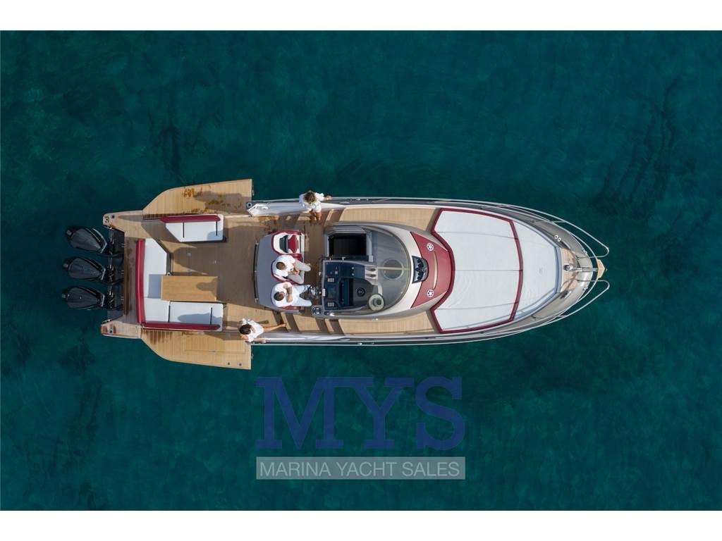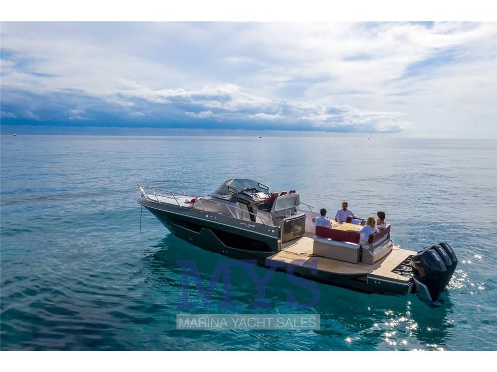 Notas internasDivano dinette trasformabile in letto matrimoniale con schienali in tessuto e sedute in similpelle - tavolo telescopico con top tappezzato e bordo laccato - mobile in rovere con top tappezzato e bordo laccato - armadio in rovere - casse stereo - ampi gavoni di dinette - pavimento in rovere - oblò in acciaio inox - faretti alogeni. ZONA INGRESSO: Mobile in rovere con top tappezzato - pensile in rovere con quadro elettrico e radio CD con ingresso aux frontale con casse stereo - tientibene in acciaio inox tappezzato - scala ingresso cabina in acciaio inox laccata con gradini in rovere e luci led di cortesia. CABINA POPPA: Doppio letto trasformabile in matrimoniale - finestre laterali panoramiche con oblò in acciaio inox - armadio in rovere - testata e fasce laterali tappezzate - luci di lettura - faretti alogeni - presa di corrente - pavimento in rovere. BAGNO: Mobile in rovere con top laccato - lavello in ceramica con miscelatore - Wc marino elettrico con risciacquo acqua dolce - oblò in acciaio inox - doccia con carabottino in teak, saliscendi, miscelatore e diffussore - pensili laccati - specchiera - faretti alogeni stagni - tenda veneziana in legno - accessori bagno. Notas de la instrumentaciónIMPIANTISTICA:nr. 2 batteria servizi 100 Ah/12 V - impianto antincendio - staccabatterie elettrici con comando manuale d’emergenza - caricabatterie automatico - impianto alimentazione carburante con serbatoio 1096 l - pompe di sentina elettriche ad azionamento manuale/automatico - radio CD con 4 altoparlanti esterni e 2 interni - impianto acqua dolce con serbatoio 230 l - pompa autoclave - boiler acqua calda 20 l - pompa doccia con vaschetta di raccolta acque grigie - impianto acque nere con serbatoio 95 l - pompa di scarico - flaps elettrici. Notas de armamentoPOZZETTO:Rivestimento in teak - cuscineria esterna completa, anti UV e resistente all’acqua - divano pozzetto a L con ampi gavoni sottostanti, panca laterale e tavolo telescopico con top raddoppiabile in teak, porta bicchieri e tientibene - portello accesso vani impianti di poppa - gavone laterale con scaletta bagno a scomparsa - trincarini in teak - tasca porta oggetti in teak - mobile stand up in teak con tientibene in acciaio inox e coperchio in vetroresina, top in acciaio inox, lavello con miscelatore caldo/freddo, tagliere in teak, frigorifero a cassetto 105 l - 3 sedili guida/passeggeri tappezzati bicolore - luci led di cortesia - casse stereo - albero segnali in acciaio inox con tromba e luci di navigazione - parabrezza con profilo acciaio inox - prendisole di prua con altoparlanti e porta bicchieri - gavone di prua porta parabordi - musone di prua - verricello salpancora elettrico - ancora e catena - cavetto di sicurezza catena - gavone raccolta catena - pulpito in acciaio inox con gradino in teak - bitte a prua, centro barca e poppa in acciaio inox - cancelletto di poppa in acciaio inox. PLANCETTA: Vasca per alloggiamento tubi motori fuoribordo - scaletta bagno a scomparsa - doccetta a scomparsa acqua calda/fredda. CONSOLLE: Pannello cruscotto tridimensionale verniciato champagne con palpebra tappezzata - vano porta oggetti con coperchio in plexiglass - comandi flaps elettrici con display a led - presa 12 V - bussola - timoneria idraulica servoassistita - volante coordinato con la cuscineria - poggiapiedi in teak per pilota e passeggero centrale e in acciaio inox a scomparsa per terzo passeggero - tientibene in acciaio inox tappezzato. NEW MODEL 2020, NUOVO FATTURABILE + IVA, CONSEGNA 2020, MOTORI ESCLUSI, SI VALUTANO PERMUTE |
